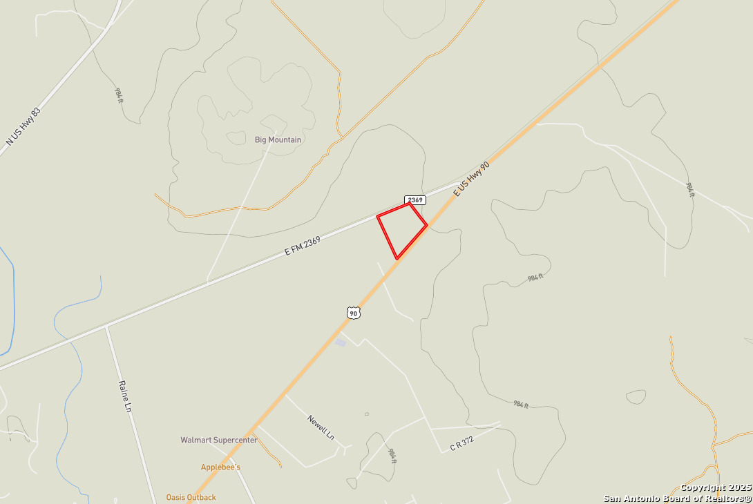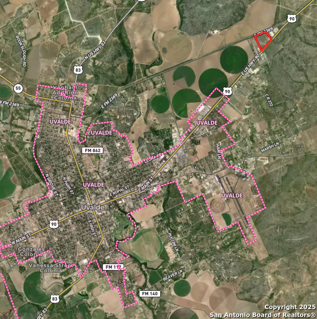 This 32.89 acre tract on the east side of Uvalde presents a rare opportunity for investors, developers, and end-users looking for high-visibility commercial land in a rapidly growing market. Positioned with dual frontage on US Hwy 90 and E FM 2369, this property offers exceptional access and exposure along one of the region's most heavily traveled corridors! Seller Financing available!!