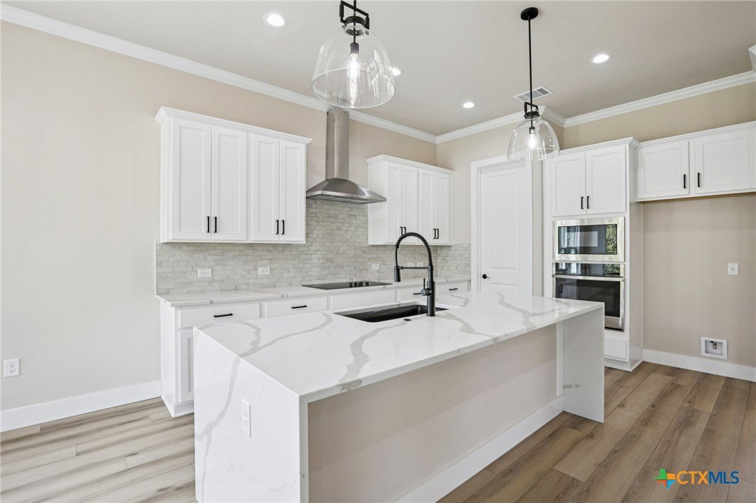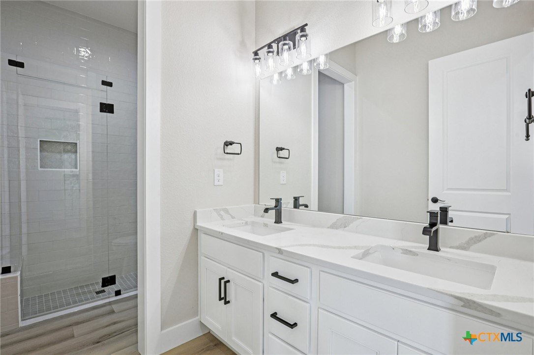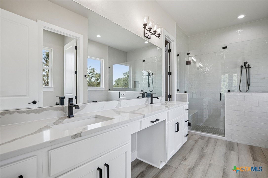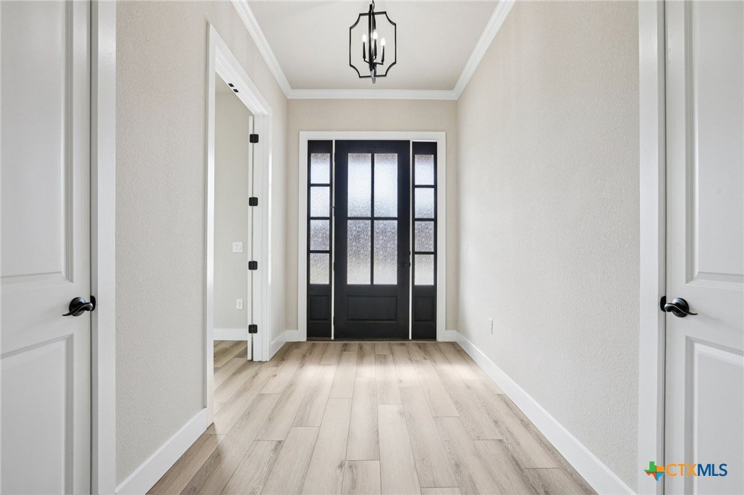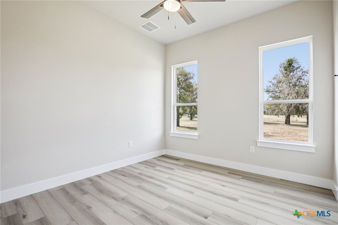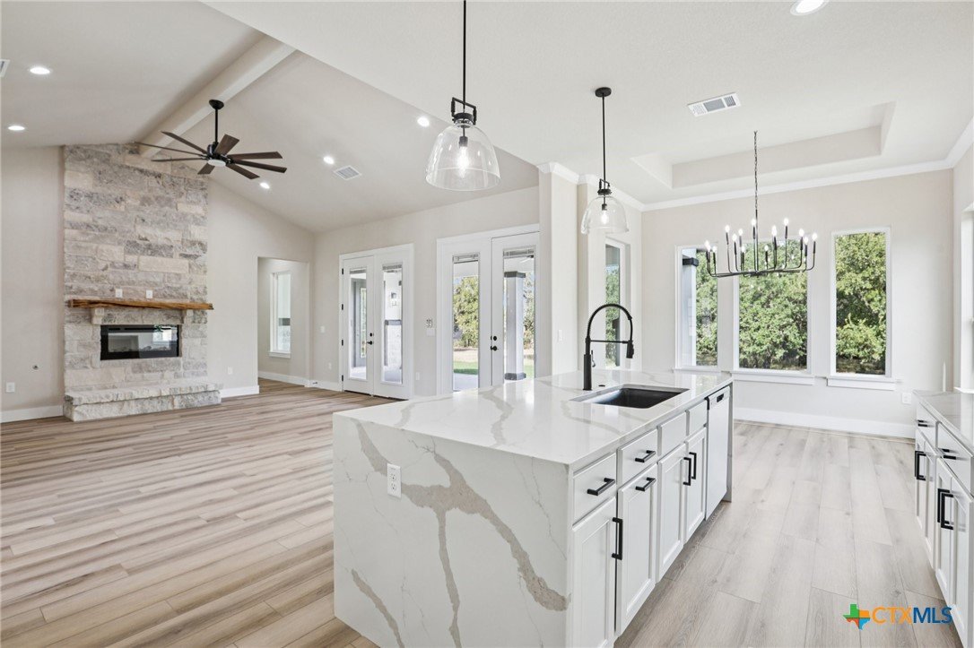 Experience refined Hill Country living with The Blue Lacy, a spacious 2,215 sq ft home thoughtfully crafted for comfort and elegance. This 4-bedroom, 2.5-bathroom residence seamlessly blends modern design with timeless charm, nestled within the serene landscapes of The Ranches. Step into an inviting open-concept layout where the living, dining, and kitchen areas flow effortlessly, creating an ideal space for both daily living and entertaining. The kitchen is a culinary masterpiece, featuring waterfall quartz counter tops, a central island, and ample cabinetry, all designed to inspire your inner chef. The private owner’s suite offers a tranquil retreat, complete with a luxurious en-suite bathroom, dual vanities, a walk-in shower, and a spacious walk-in closet. Three additional bedrooms provide versatility for family,guests, or a home office. Outdoor living is enhanced by a covered patio, perfect for enjoying the peaceful surroundings of your charming Burnet home. The 2-car garage offers ample space for vehicles and storage needs.