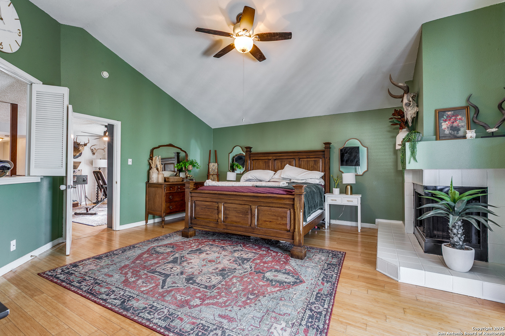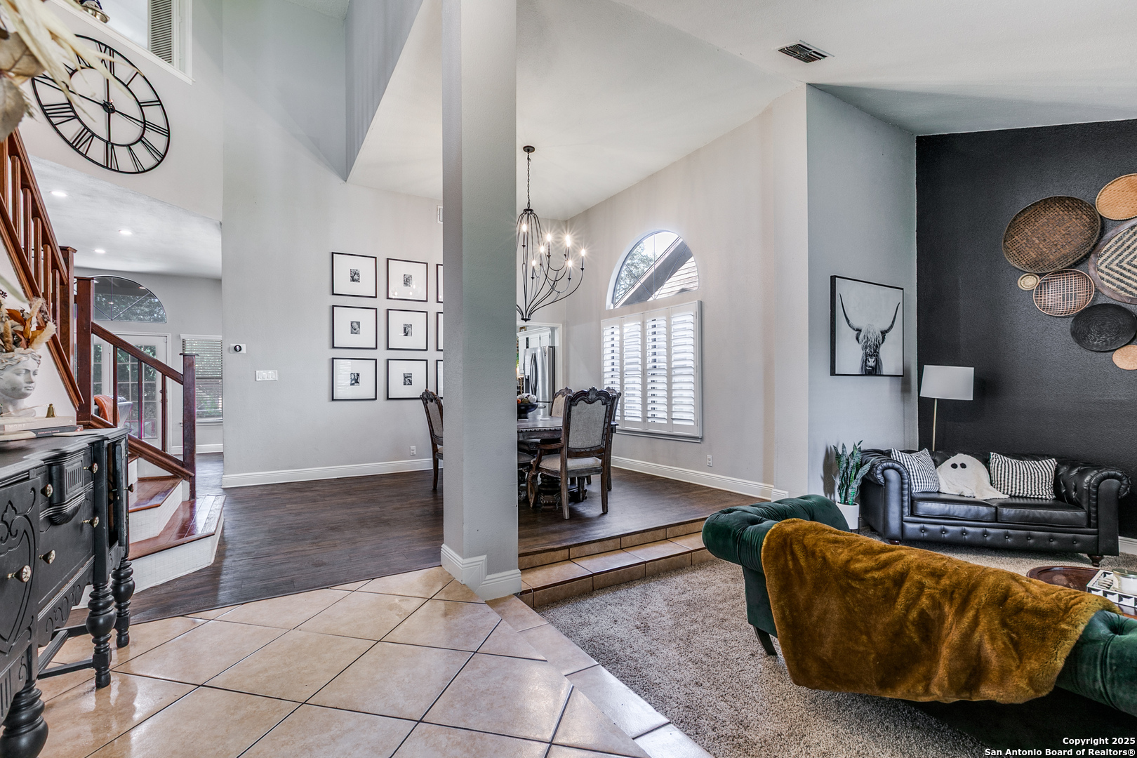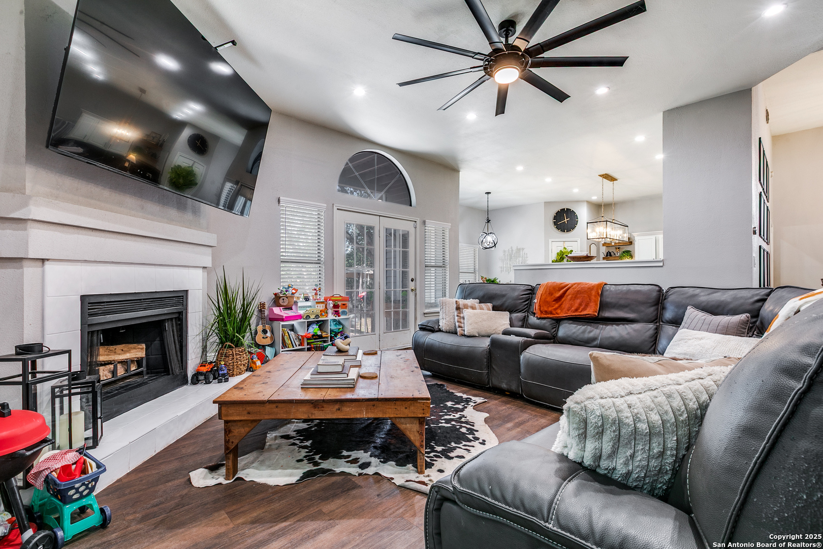Check out this STUNNIG, two story home in the desirable Seven Oaks neighborhood!!! Beautiful high ceilings, staircase, and open floor plan. Three fireplaces!! In Living room, Family and Primary bedroom. This home will WOW you. Offering 3 spacious bedrooms with 2 1/2 baths and game room or office space. Large living room and family room with a cozy fireplace. Large kitchen with cooktop island, beautiful cabinets, granite counter tops, back splash, and tile floors. Large laundry room with a tile shower. House has laminate wood floors and tile throughout. Some shutters, blinds and ceiling fans. Plenty of natural light. Large primary bedroom with sliding doors to a balcony. Large backyard for your entertaining. Yard has chicken coop and NO HOA. Ideally located just minutes from the International Airport, McAllister Park, and key routes like Bulverde Rd, Wurzbach Pkwy, I-35, Loop 1604, and 281. You'll be close to shopping, dining, and popular spots like the Forum at Olympia Parkway Mall, Rolling Oaks Mall, and IKEA. You don't want to wait! This home will not last!