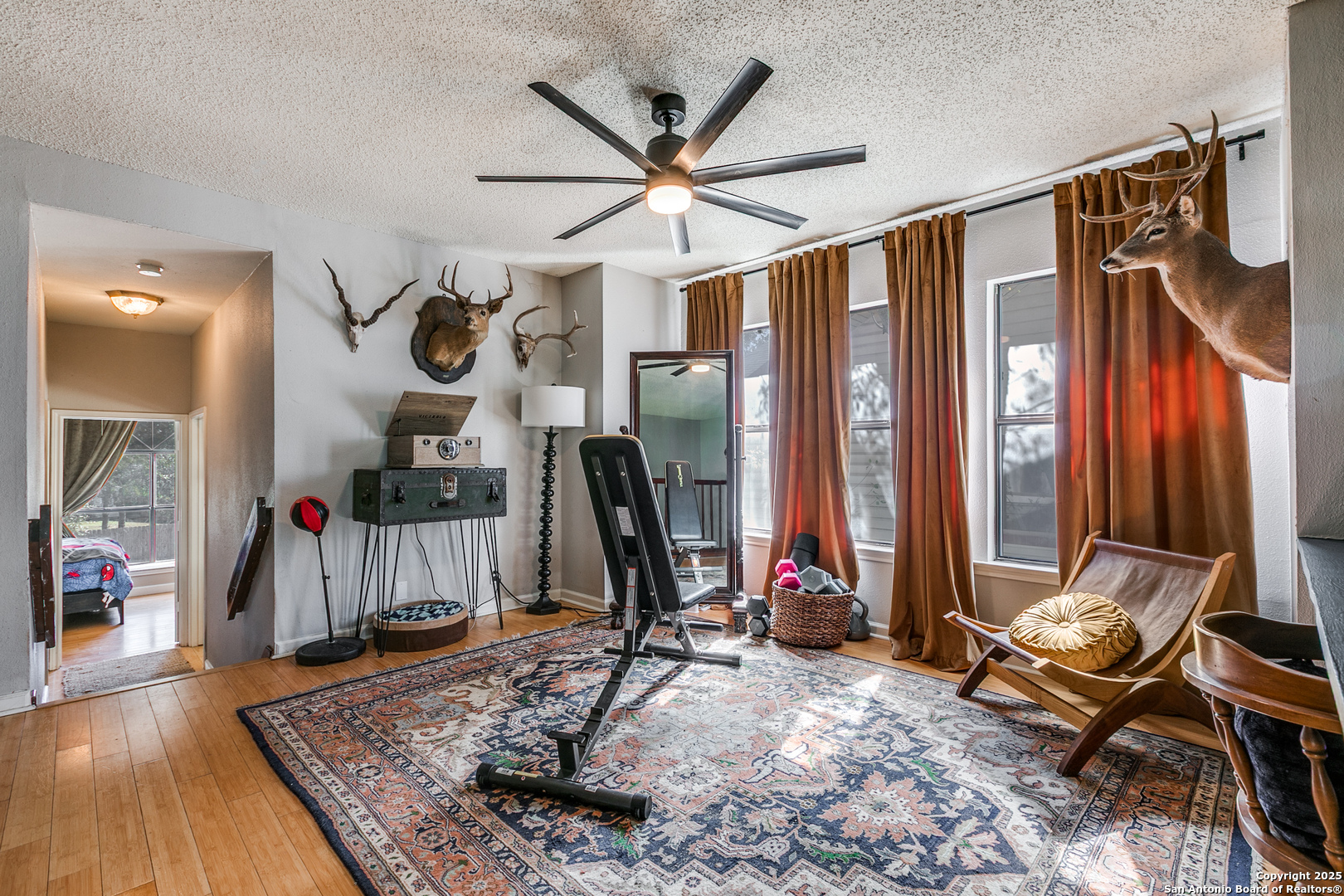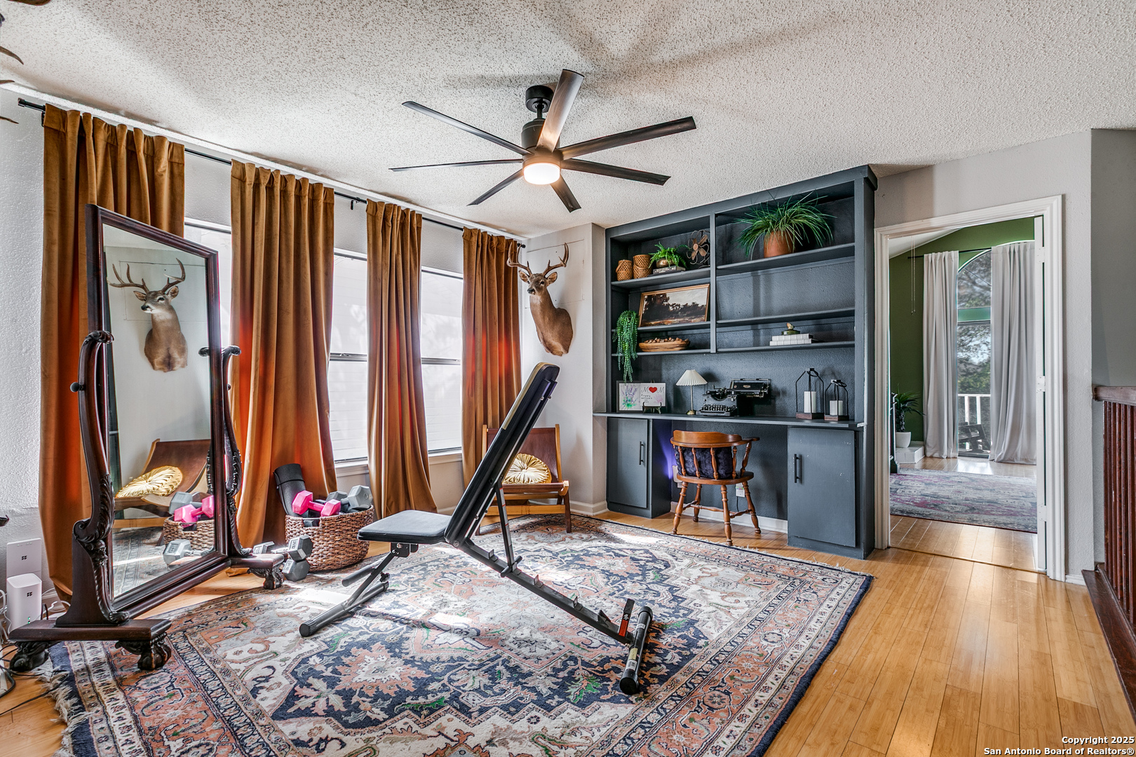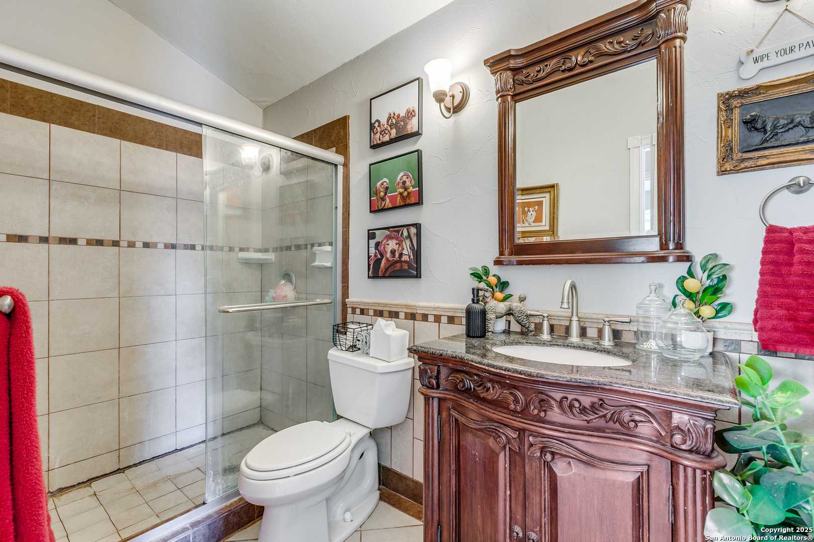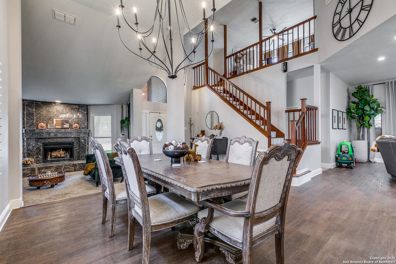Check out this STUNNIG, two story home in the desirable Seven Oaks neighborhood!!! Beautiful high ceilings, staircase, and open floor plan. Three fireplaces!! In Living room, Family and Primary bedroom. This home will WOW you. Offering 3 spacious bedrooms with 2 1/2 baths and game room or office space. Large living room and family room with a cozy fireplace. Large kitchen with cooktop island, beautiful cabinets, granite counter tops, back splash, and tile floors. Large laundry room with a tile shower. House has laminate wood floors and tile throughout. Some shutters, blinds and ceiling fans. Plenty of natural light. Large primary bedroom with sliding doors to a balcony. Large backyard for your entertaining. Yard has chicken coop and NO HOA. Ideally located just minutes from the International Airport, McAllister Park, and key routes like Bulverde Rd, Wurzbach Pkwy, I-35, Loop 1604, and 281. You'll be close to shopping, dining, and popular spots like the Forum at Olympia Parkway Mall, Rolling Oaks Mall, and IKEA. You don't want to wait! This home will not last!