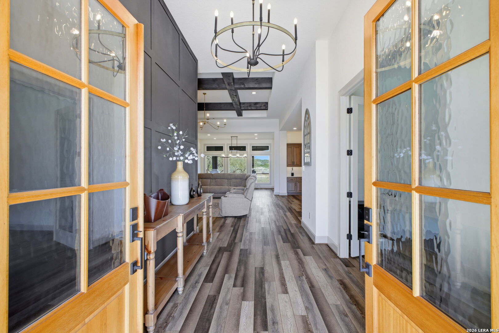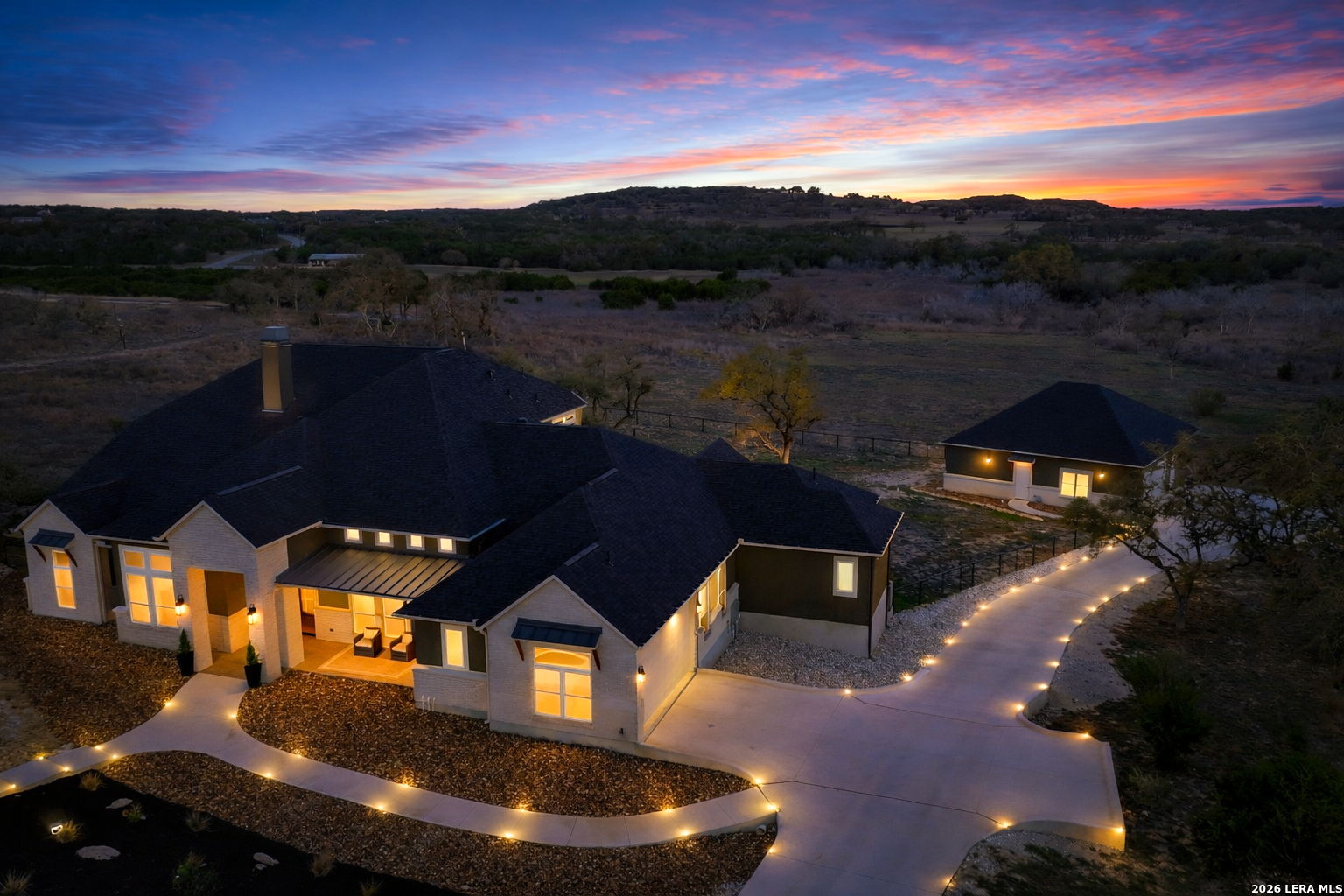 Luxury Hill Country home on 5 acres in Spring Branch, TX with privacy and no rear neighbors. This 5 bedroom, 5.5 bathroom home offers 5,173 sq ft and includes two primary suites, one downstairs and one upstairs with a private balcony overlooking the backyard. The open-concept layout features high ceilings, spacious living areas, a dedicated office, and a large kitchen that flows into the main living space, making it ideal for everyday living and entertaining. Additional features include a detached garage with space for luxury or collector vehicles, complete with a gym and half bath, perfect for a fitness area, workshop, or flex space. Situated on 5 usable acres, the property offers room for a pool, guest house, or additional outdoor living. Conveniently located near Canyon Lake, New Braunfels, San Antonio and Austin, this home combines space, functionality, and Hill Country living.