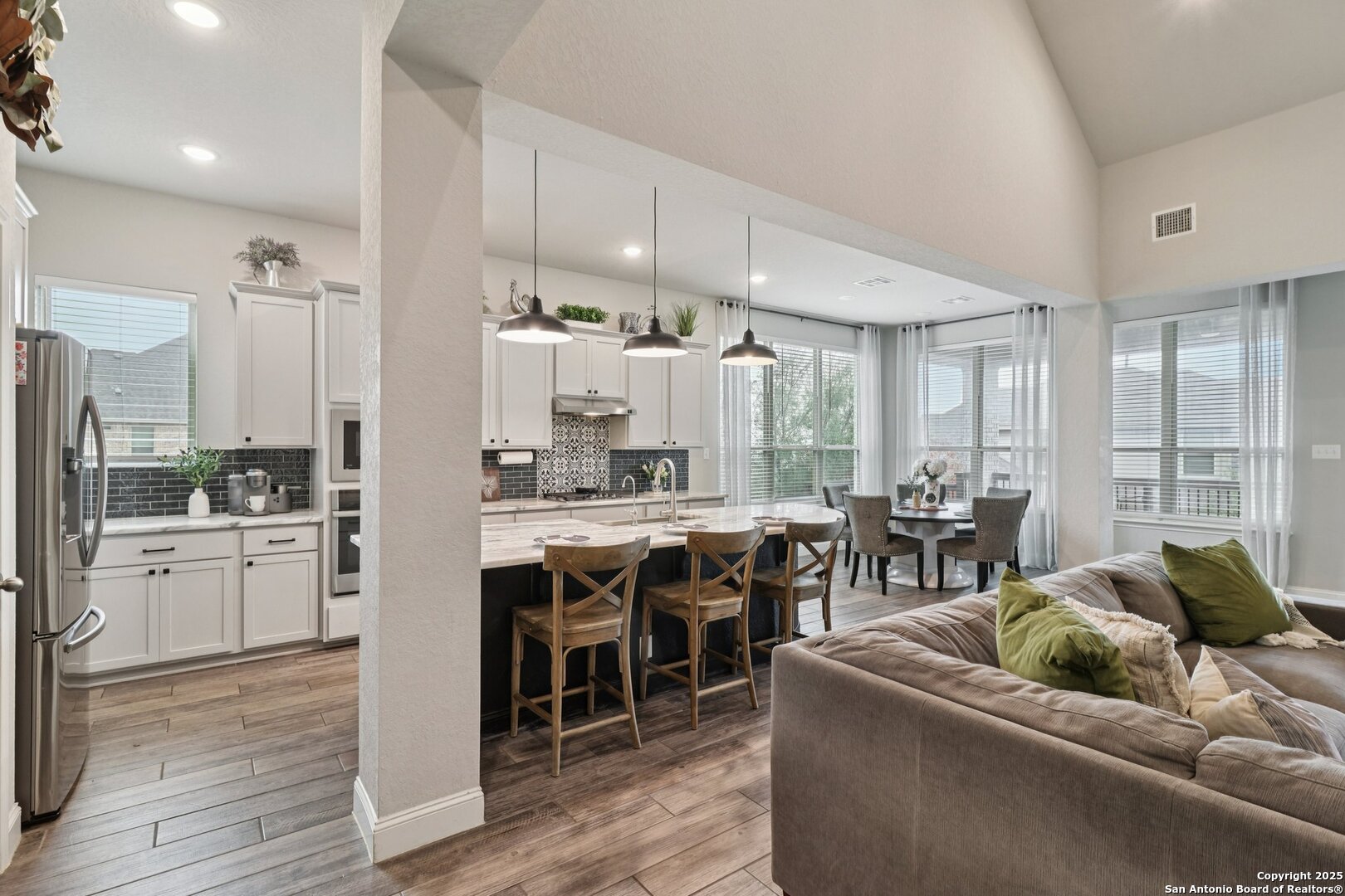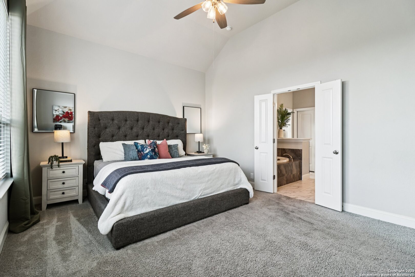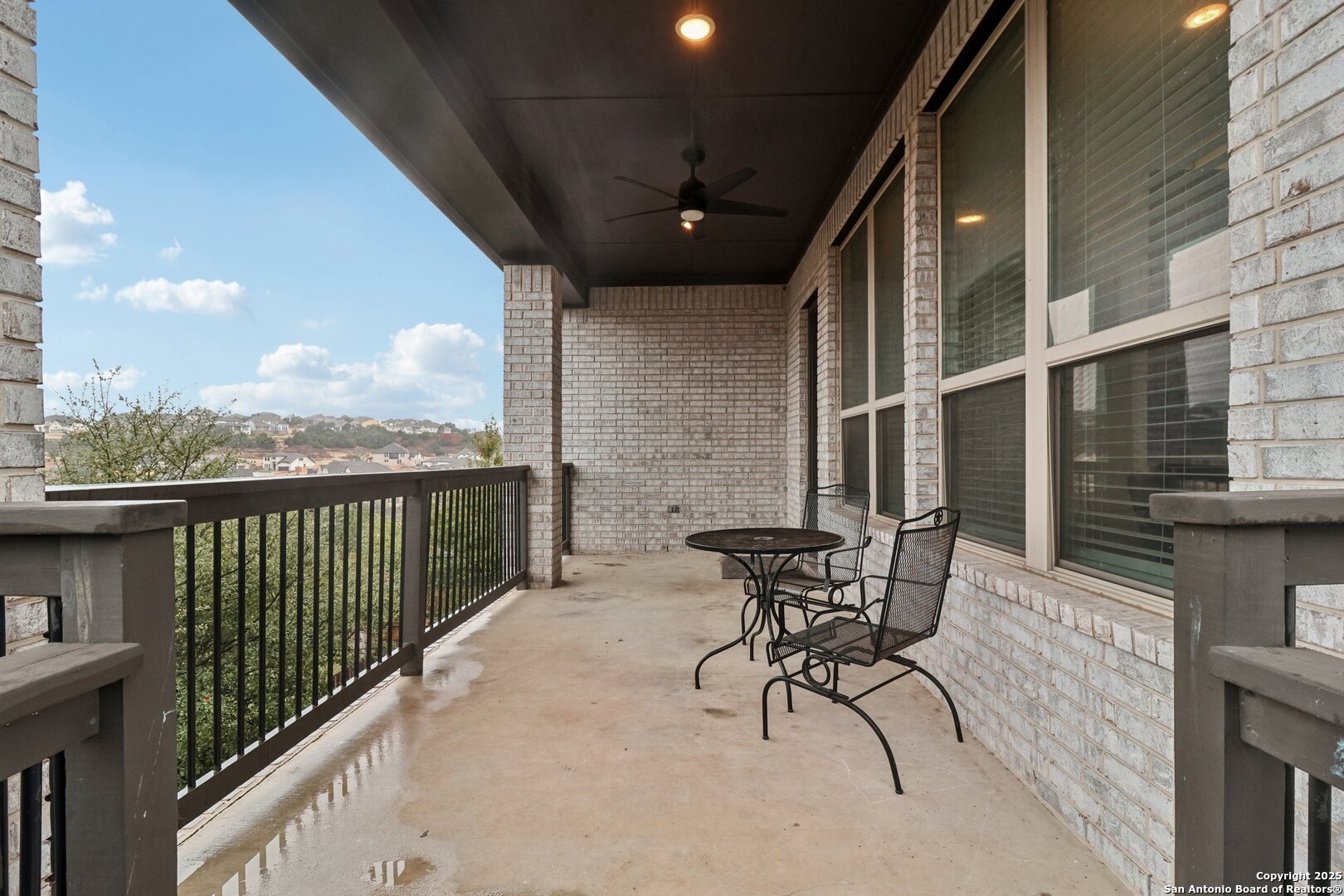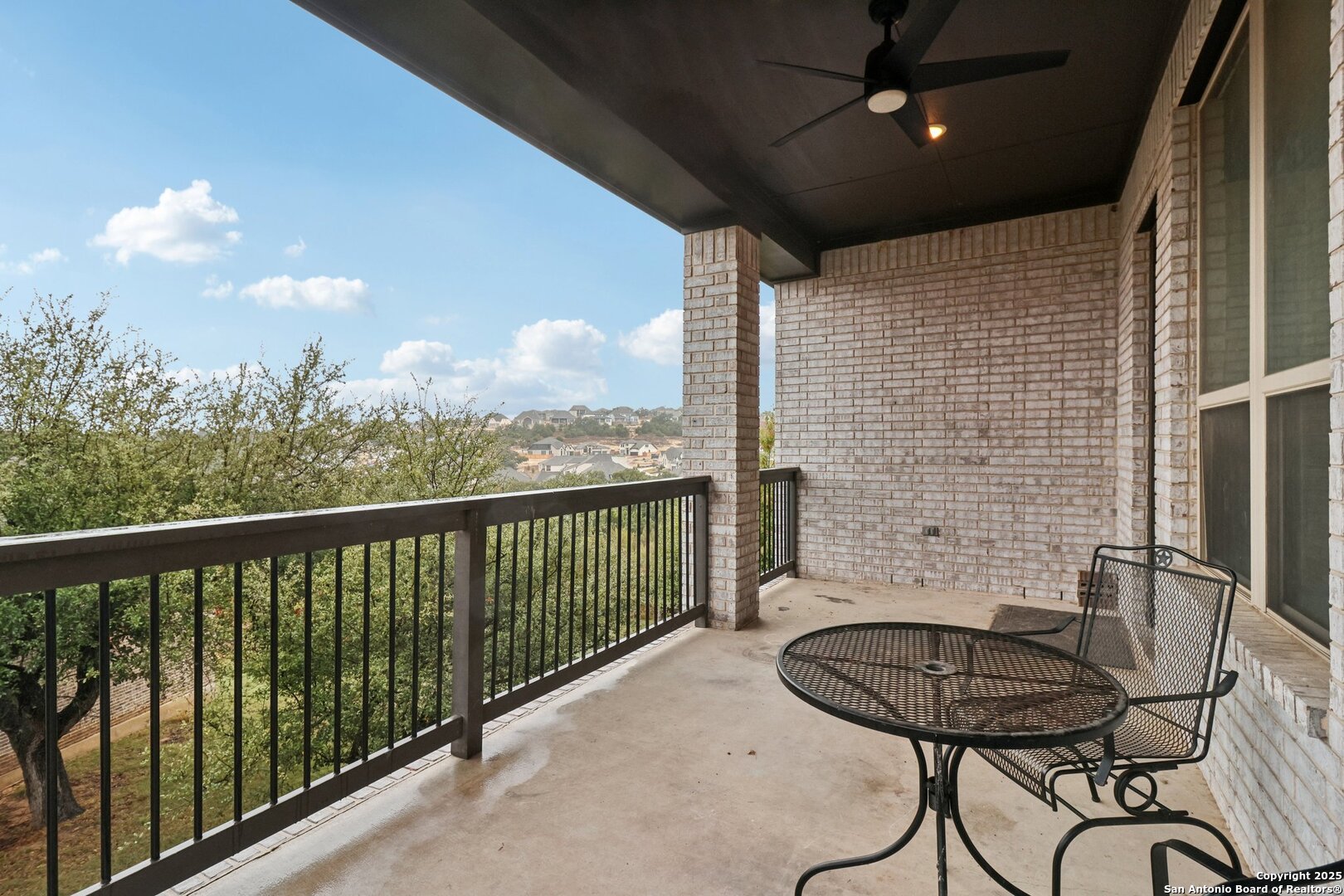 Welcome to this beautifully maintained home in the highly sought-after, gated Johnson Ranch community in Bulverde. Sitting on a spacious lot, this home perfectly blends Hill Country charm with modern comfort and functionality. From the moment you step inside, you'll love the open, light-filled floor plan designed for both everyday living and effortless entertaining. The kitchen truly shines as the heart of the home, offering generous counter space, abundant cabinetry, and seamless flow into the dining and living areas. The privately tucked-away primary suite on the main level provides a relaxing retreat, complete with a well-appointed bath and a spacious walk-in closet. The main floor also includes a secondary bedroom with a nearby full bath, a dedicated office, and a formal dining room, perfect for hosting gatherings or flexible everyday use. Upstairs, the fun continues with an impressive game room, extra loft area, and dedicated media room, plus two generously sized secondary bedrooms served by a full bath and an additional half bath. Step outside to enjoy a covered patio and balcony overlooking an expansive backyard on nearly a quarter-acre lot, ideal for outdoor entertaining, future additions, or creating your own backyard oasis. Johnson Ranch offers fantastic amenities including a community pool and park, with convenient access to shopping, dining, Hwy 281, and top-rated Comal ISD schools. This home checks all the boxes! Schedule your showing today and come see why it's your home. **VA Assumable at 2.75 interest rate!!** Ask for details!