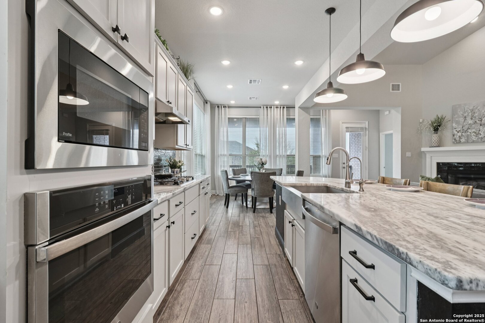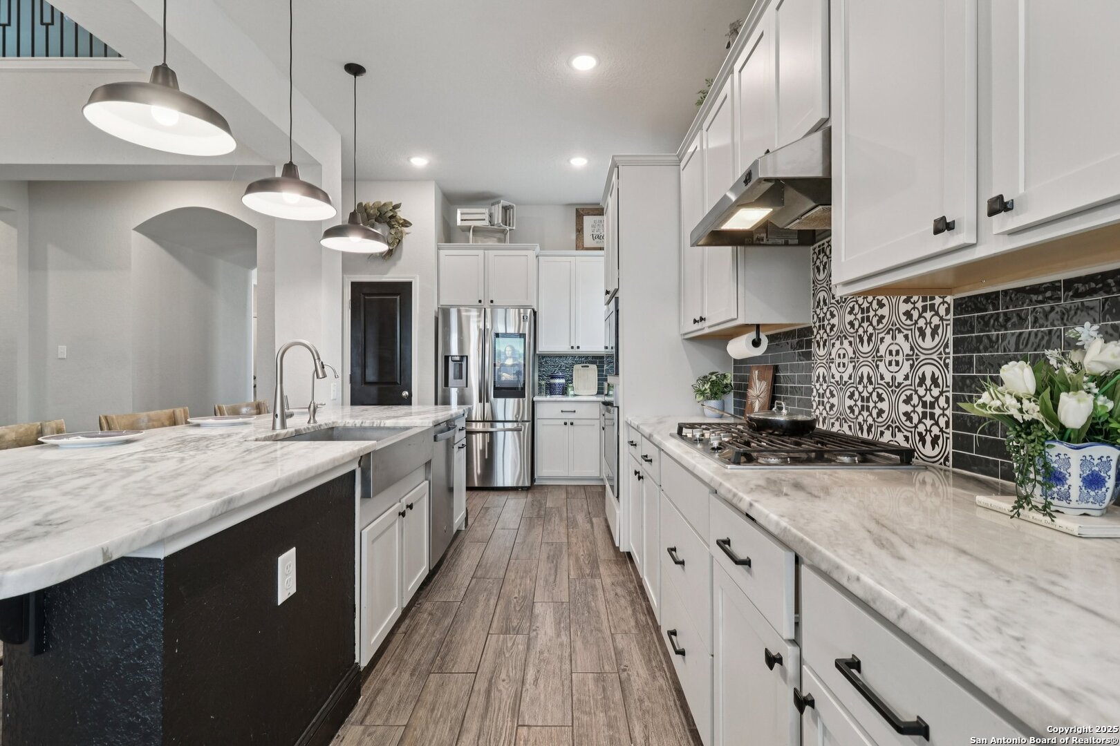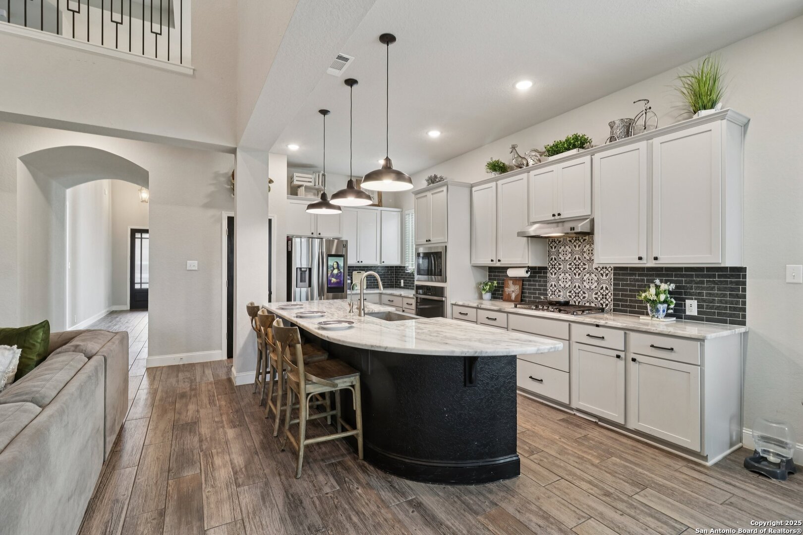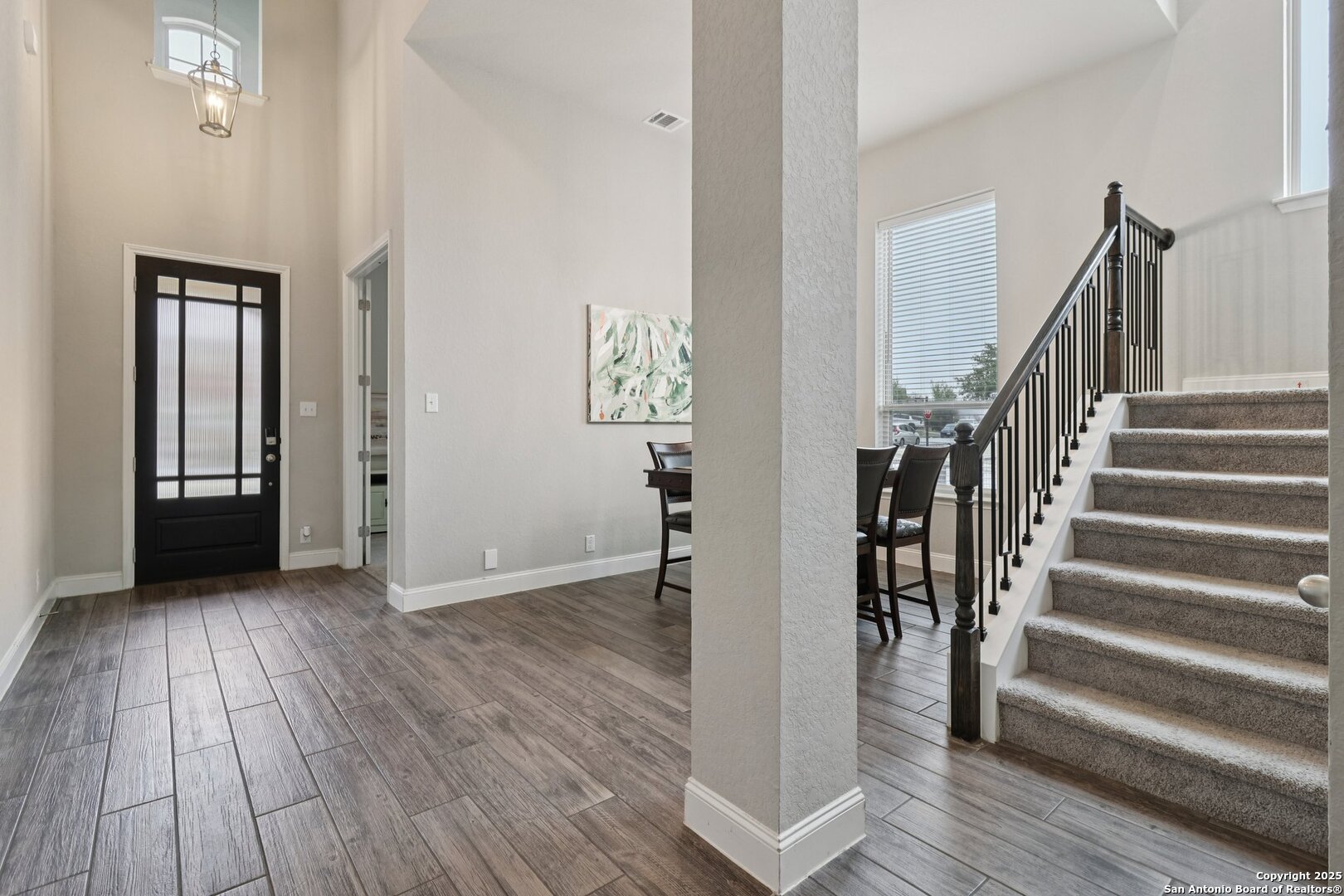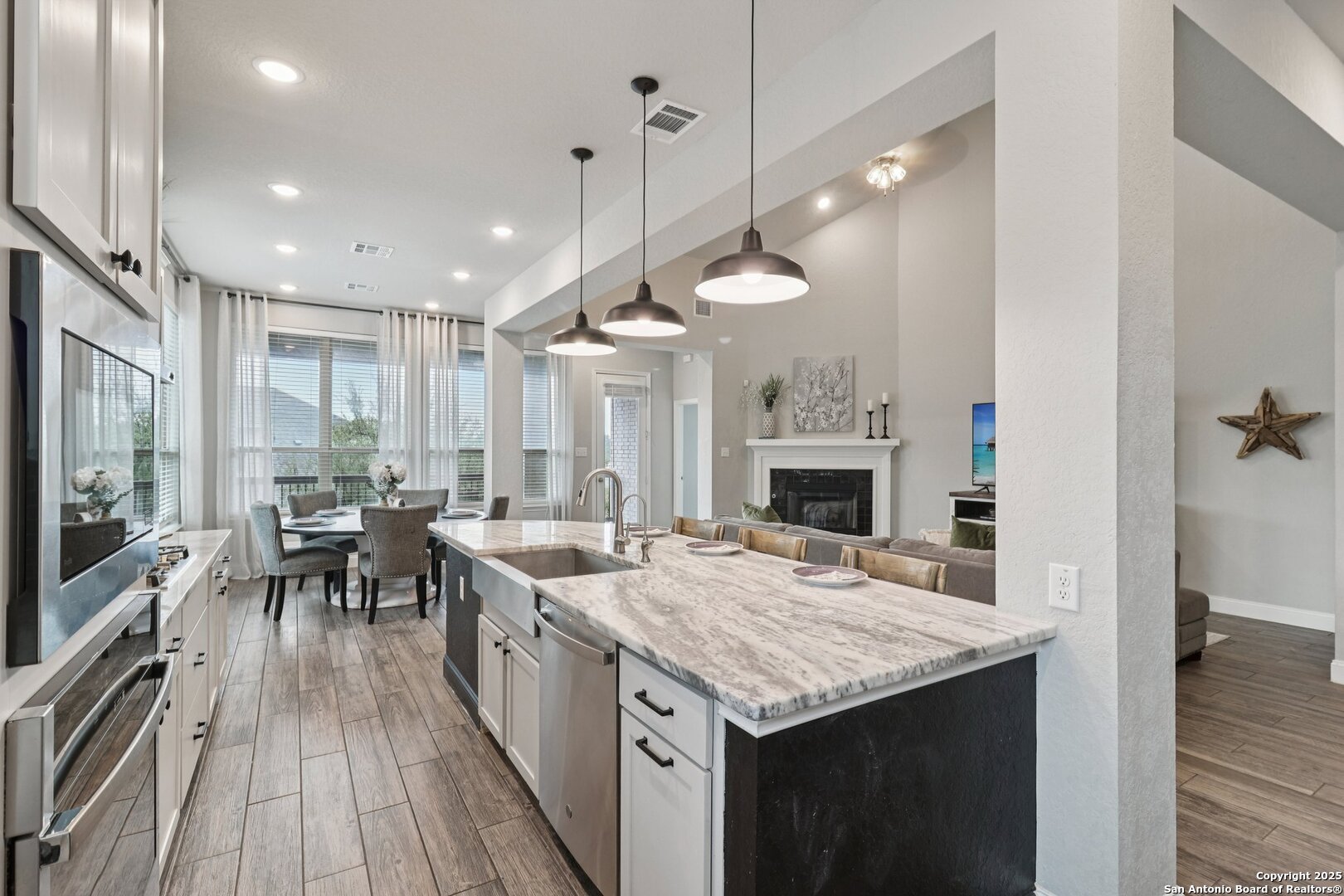 Welcome to this beautifully maintained home in the highly sought-after, gated Johnson Ranch community in Bulverde. Sitting on a spacious lot, this home perfectly blends Hill Country charm with modern comfort and functionality. From the moment you step inside, you'll love the open, light-filled floor plan designed for both everyday living and effortless entertaining. The kitchen truly shines as the heart of the home, offering generous counter space, abundant cabinetry, and seamless flow into the dining and living areas. The privately tucked-away primary suite on the main level provides a relaxing retreat, complete with a well-appointed bath and a spacious walk-in closet. The main floor also includes a secondary bedroom with a nearby full bath, a dedicated office, and a formal dining room, perfect for hosting gatherings or flexible everyday use. Upstairs, the fun continues with an impressive game room, extra loft area, and dedicated media room, plus two generously sized secondary bedrooms served by a full bath and an additional half bath. Step outside to enjoy a covered patio and balcony overlooking an expansive backyard on nearly a quarter-acre lot, ideal for outdoor entertaining, future additions, or creating your own backyard oasis. Johnson Ranch offers fantastic amenities including a community pool and park, with convenient access to shopping, dining, Hwy 281, and top-rated Comal ISD schools. This home checks all the boxes! Schedule your showing today and come see why it's your home. **VA Assumable at 2.75 interest rate!!** Ask for details!