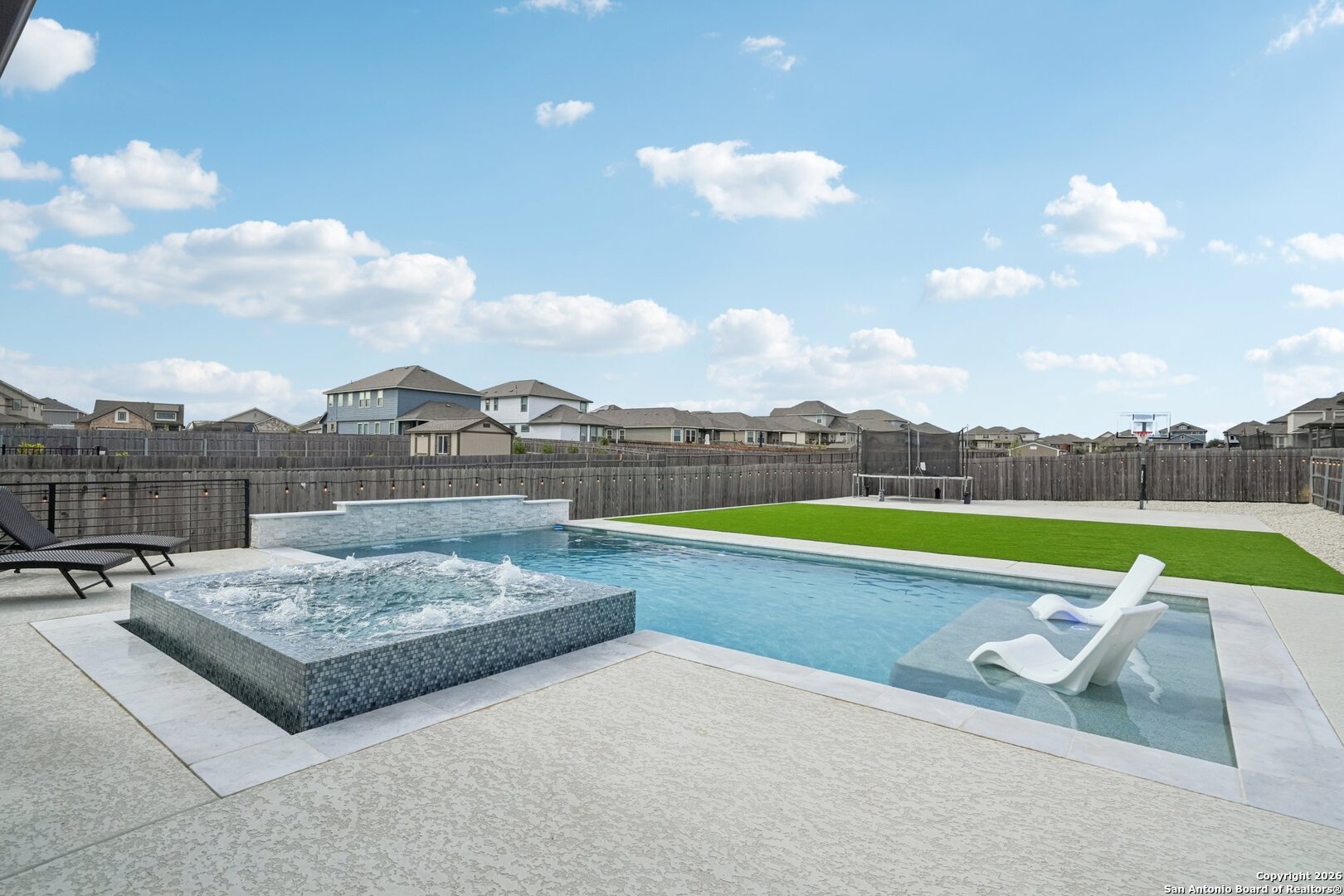 Step into luxury and space in this stunning home designed for both everyday living and unforgettable entertaining. Soaring ceilings create an open, light-filled atmosphere throughout, while five generously sized bedrooms and a dedicated office offer flexibility for work, guests, and family life. A formal dining room sets the stage for elegant gatherings, complemented by an upstairs loft and a game room perfect for movie nights, play space, or entertaining friends. The backyard is a true resort-style retreat. Enjoy a large heated pool with cascading waterfalls, ambient lighting, and an inviting hot tub. Lounge in style with ample space for chairs and relaxation, all surrounded by low-maintenance turf grass. A private sport court adds fun and functionality, while the oversized covered patio provides the ideal setting for outdoor dining and year-round entertaining. Schedule your showing TODAY!!