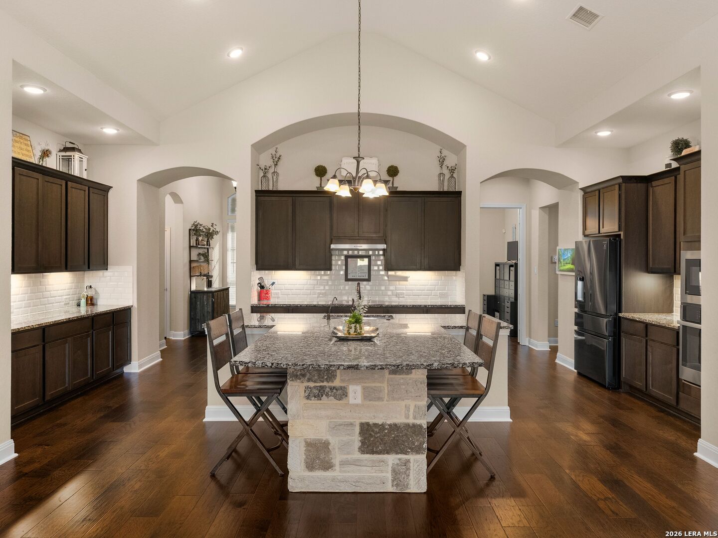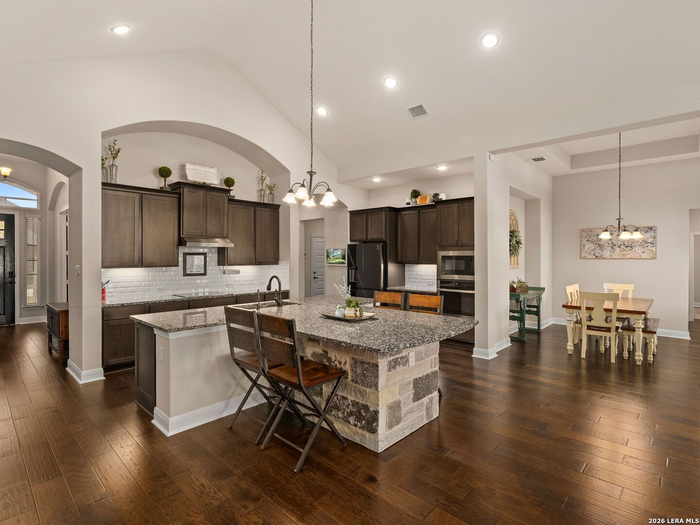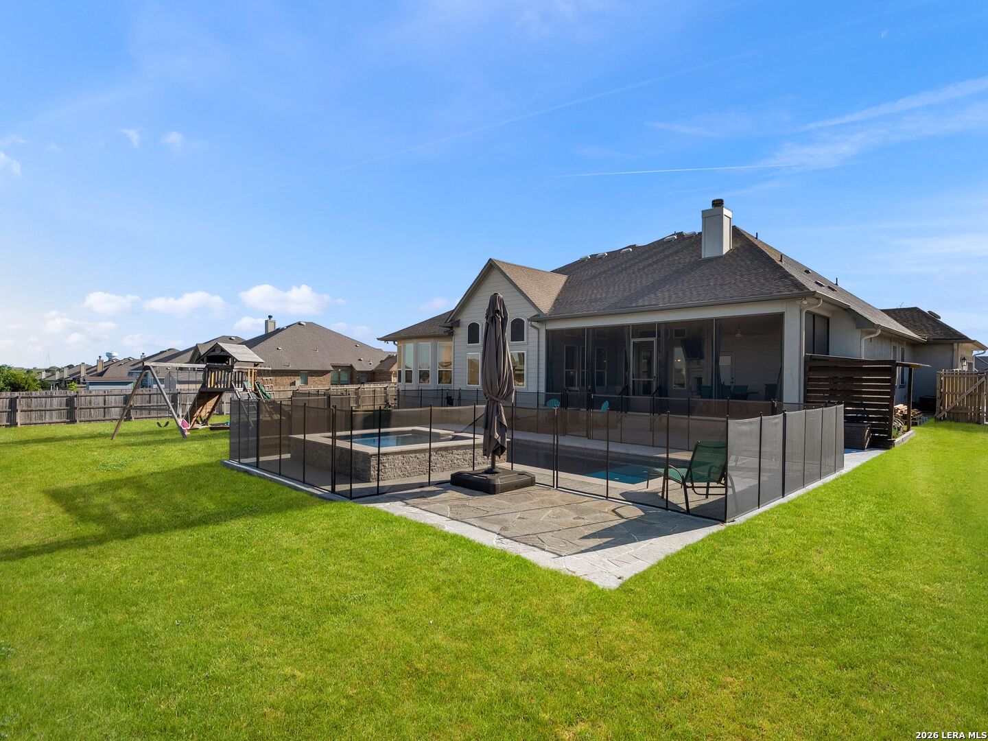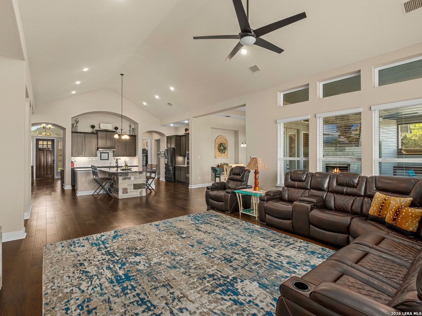 Situated on a premium corner lot within the gated community of Harvest Hills, this single-story 4-bedroom, 3.5-bath home with a dedicated office features an open-concept floorplan with hardwood flooring throughout, high ceilings, and a gourmet kitchen with built-in appliances and ample cabinetry. The split floorplan offers added privacy, with a spacious primary suite featuring multiple walk-in closets and dual vanities. The backyard is designed for enjoyment, complete with a screened-in patio, outdoor fireplace, and a fenced inground pool and spa. Located in an amenity-rich, controlled-access community with a clubhouse and sports courts. This home offers a strong balance of privacy, convenience, and lifestyle.