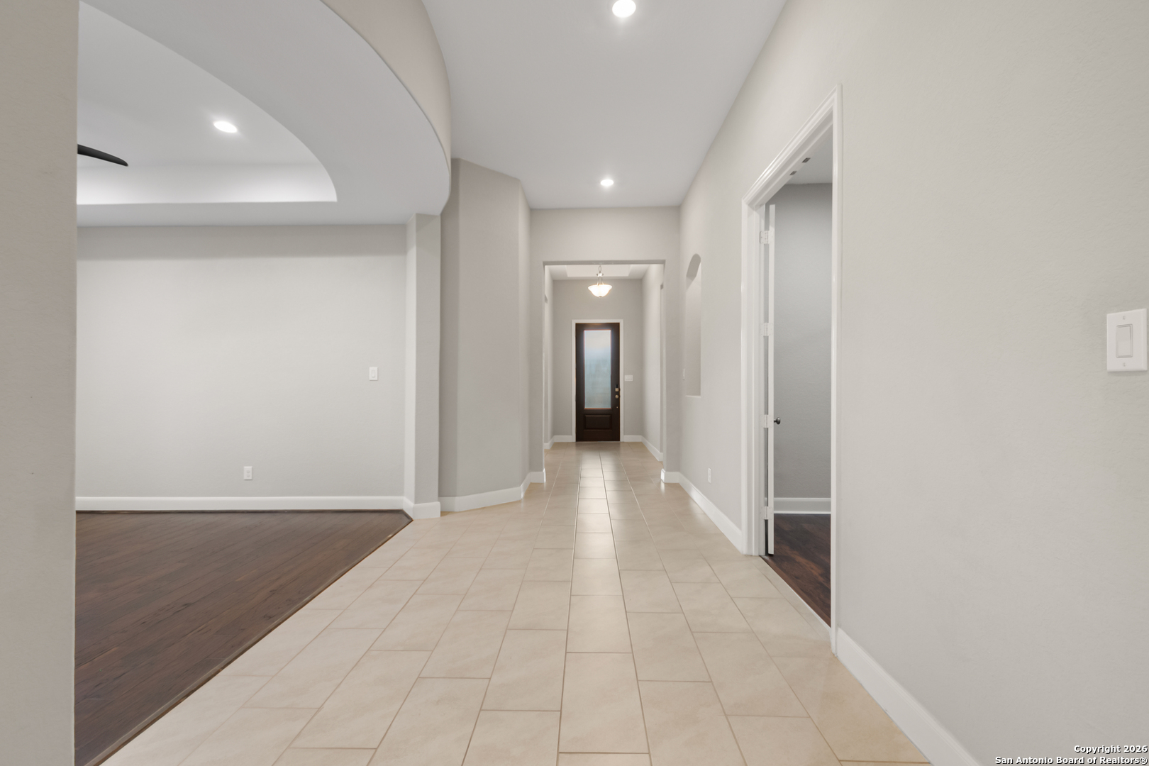 Modern Luxury Meets Everyday Comfort - A Home That Truly Has It All! Welcome to this stunning, modern masterpiece tucked away on a premium lot backing up to a private wooded ranch-your own slice of serenity with no rear neighbors! Step inside and experience the elegance of elongated ceramic tile flooring flowing seamlessly throughout the main areas, complemented by rich hardwood in the formal dining room. Updated flooring in every bedroom, no carpet anymore. The private office with French glass doors and a closet easily transforms into a fifth bedroom. The gourmet kitchen is built to impress-complete with an oversized Silestone quartz island, stainless steel appliances, a butler's pantry, and a built-in wine chiller-perfect for entertaining guests in style. New disposal installed in August 2025. This home is loaded with cutting-edge smart features, including: smart sprinkler system, climate control, dimmable lighting, remote-controlled fans, wired for entertainment system. Enjoy thoughtful touches like the pop-up ceiling with fan in the spacious master suite, bay windows in the master and breakfast nook, and an open-concept layout with high ceilings that flood the space with natural light. Step outside to your covered patio-ideal for BBQs and relaxing evenings-and a large 2-car garage with full-yard irrigation, including the water softner. Come see us today!
