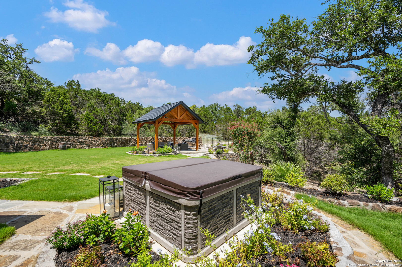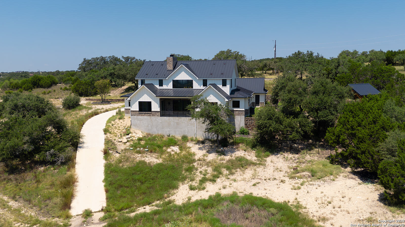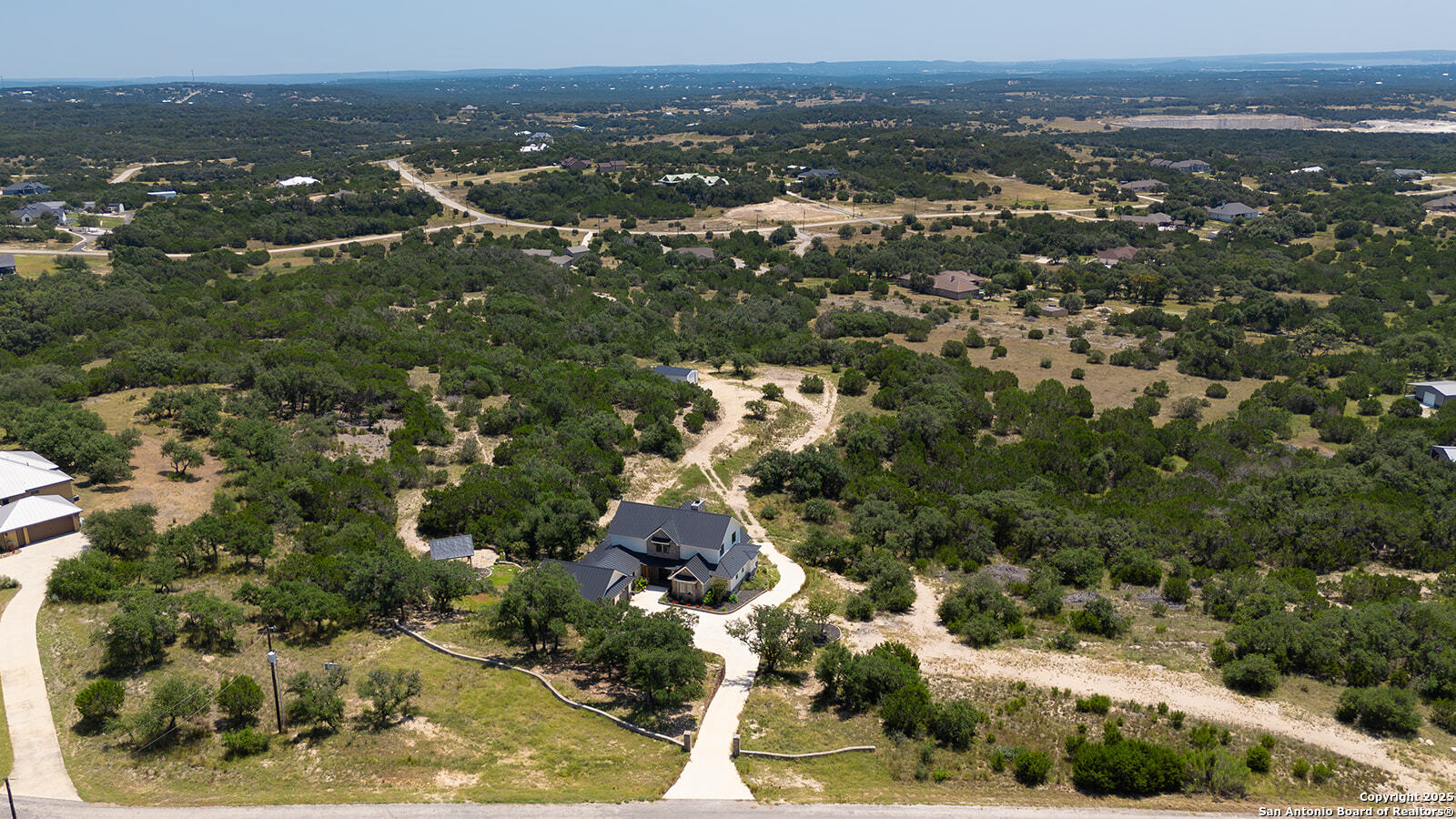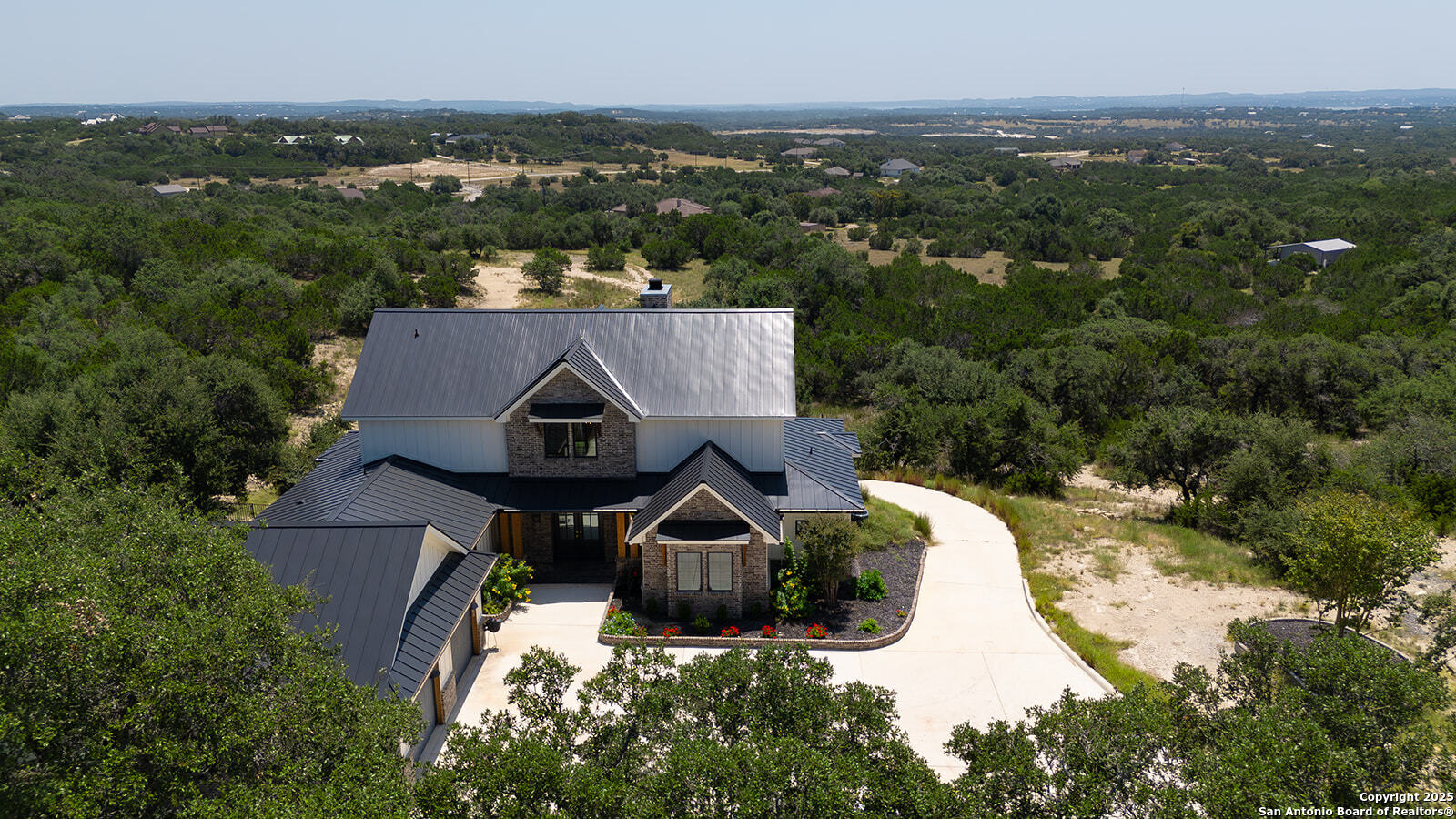 OPEN HOUSE 11/29/2025 & 11/30/2025 from 1:00 PM to 4:00 PM Experience elevated Hill Country living with this exceptional custom home by Cimarron Design and Build, perfectly situated on 3.63 acres in the sought-after Mystic Shores community. Designed to showcase sweeping views and unmatched privacy, this 2021-built masterpiece offers 4,092 sq. ft. of refined living space, including 3 bedrooms and 3.5 bathrooms, loft and game room. The property is thoughtfully designed for both comfort and entertaining, featuring a detached second garage, a charming gazebo, and a hot tub-ideal for enjoying the stunning natural surroundings. Inside, upscale finishes abound, from reclaimed Pennsylvania barn beams to hand-crafted Moroccan Zellige and Takarka Studios tiles. The chef's kitchen is a standout with a 48-inch Blue Star gas range, matching refrigerator, custom plaster range hood, and a spacious butler's pantry. Additional upgrades include a 400-amp electrical main, Pentair Pelican water system, fully insulated garage, Sonos surround sound wiring, and a comprehensive CCT camera system for peace of mind. Every detail has been considered, from the imported brick exterior and standing seam galvalume roof with rain chains to the pre-installed utilities for a future pool. Large windows throughout the home bring in natural light and frame distant lake views, while the expansive back patio offers a seamless transition from indoor to outdoor living. The primary suite is a private retreat with a spa-like bath, soaking tub, dual vanity, dual-head walk-in shower, and a dream-worthy closet. Located in Mystic Shores, residents enjoy world-class amenities including lakeside parks, pools, pickleball courts, nature trails, and private access to both Canyon Lake and the Guadalupe River-all just a short drive from San Antonio and Austin. This home is truly a rare offering in one of the Hill Country's most coveted communities.