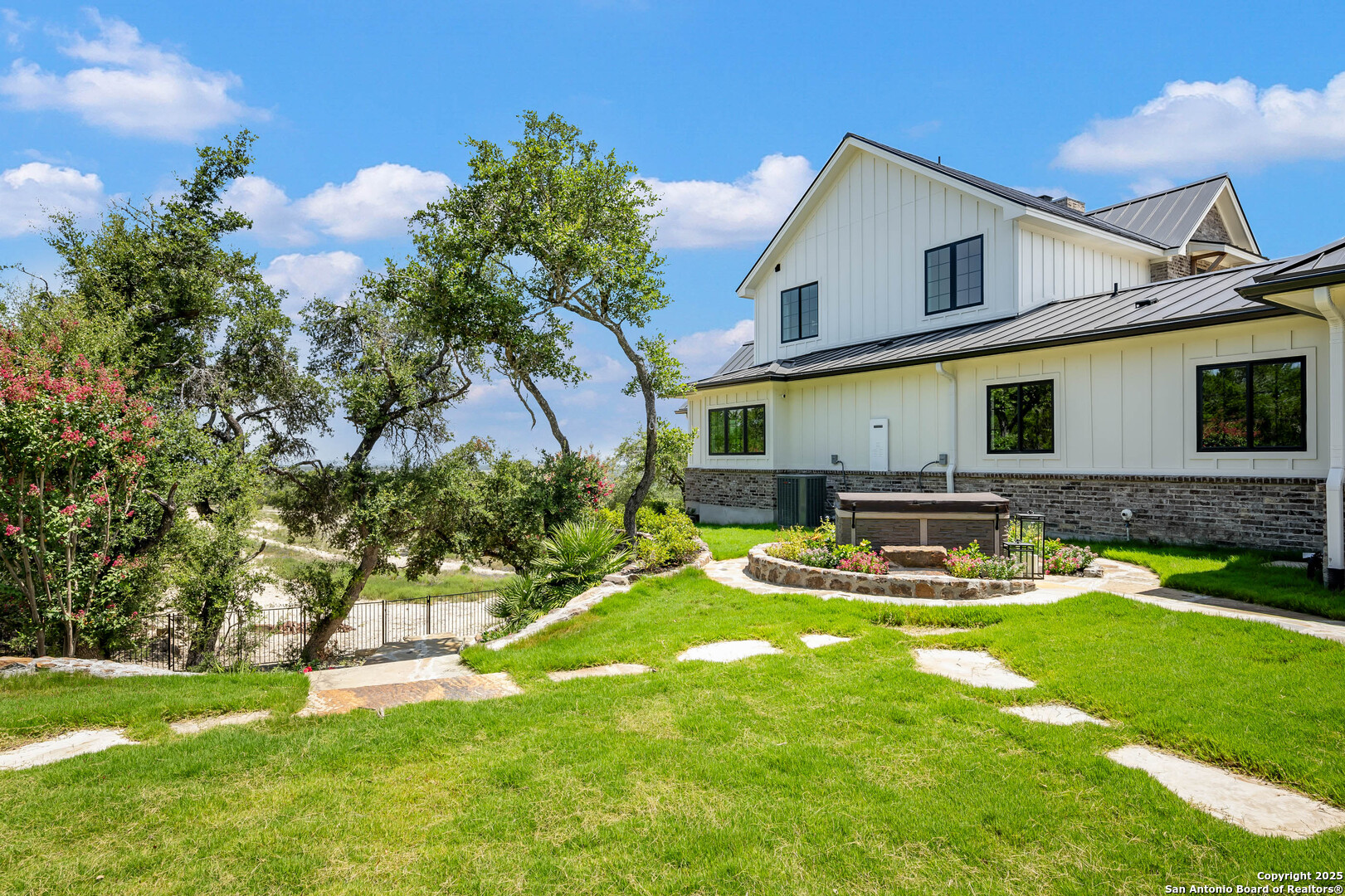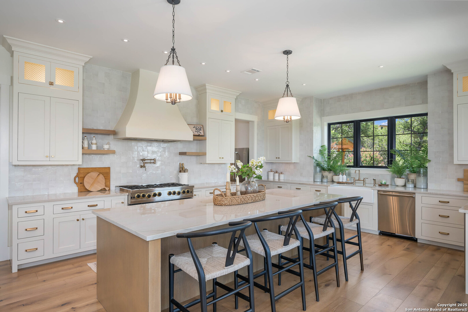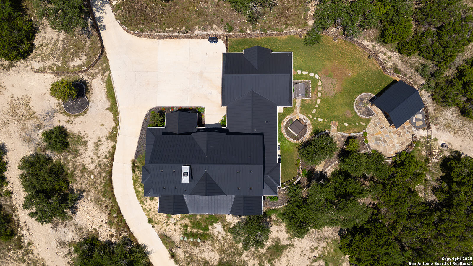 OPEN HOUSE 11/29/2025 & 11/30/2025 from 1:00 PM to 4:00 PM Experience elevated Hill Country living with this exceptional custom home by Cimarron Design and Build, perfectly situated on 3.63 acres in the sought-after Mystic Shores community. Designed to showcase sweeping views and unmatched privacy, this 2021-built masterpiece offers 4,092 sq. ft. of refined living space, including 3 bedrooms and 3.5 bathrooms, loft and game room. The property is thoughtfully designed for both comfort and entertaining, featuring a detached second garage, a charming gazebo, and a hot tub-ideal for enjoying the stunning natural surroundings. Inside, upscale finishes abound, from reclaimed Pennsylvania barn beams to hand-crafted Moroccan Zellige and Takarka Studios tiles. The chef's kitchen is a standout with a 48-inch Blue Star gas range, matching refrigerator, custom plaster range hood, and a spacious butler's pantry. Additional upgrades include a 400-amp electrical main, Pentair Pelican water system, fully insulated garage, Sonos surround sound wiring, and a comprehensive CCT camera system for peace of mind. Every detail has been considered, from the imported brick exterior and standing seam galvalume roof with rain chains to the pre-installed utilities for a future pool. Large windows throughout the home bring in natural light and frame distant lake views, while the expansive back patio offers a seamless transition from indoor to outdoor living. The primary suite is a private retreat with a spa-like bath, soaking tub, dual vanity, dual-head walk-in shower, and a dream-worthy closet. Located in Mystic Shores, residents enjoy world-class amenities including lakeside parks, pools, pickleball courts, nature trails, and private access to both Canyon Lake and the Guadalupe River-all just a short drive from San Antonio and Austin. This home is truly a rare offering in one of the Hill Country's most coveted communities.