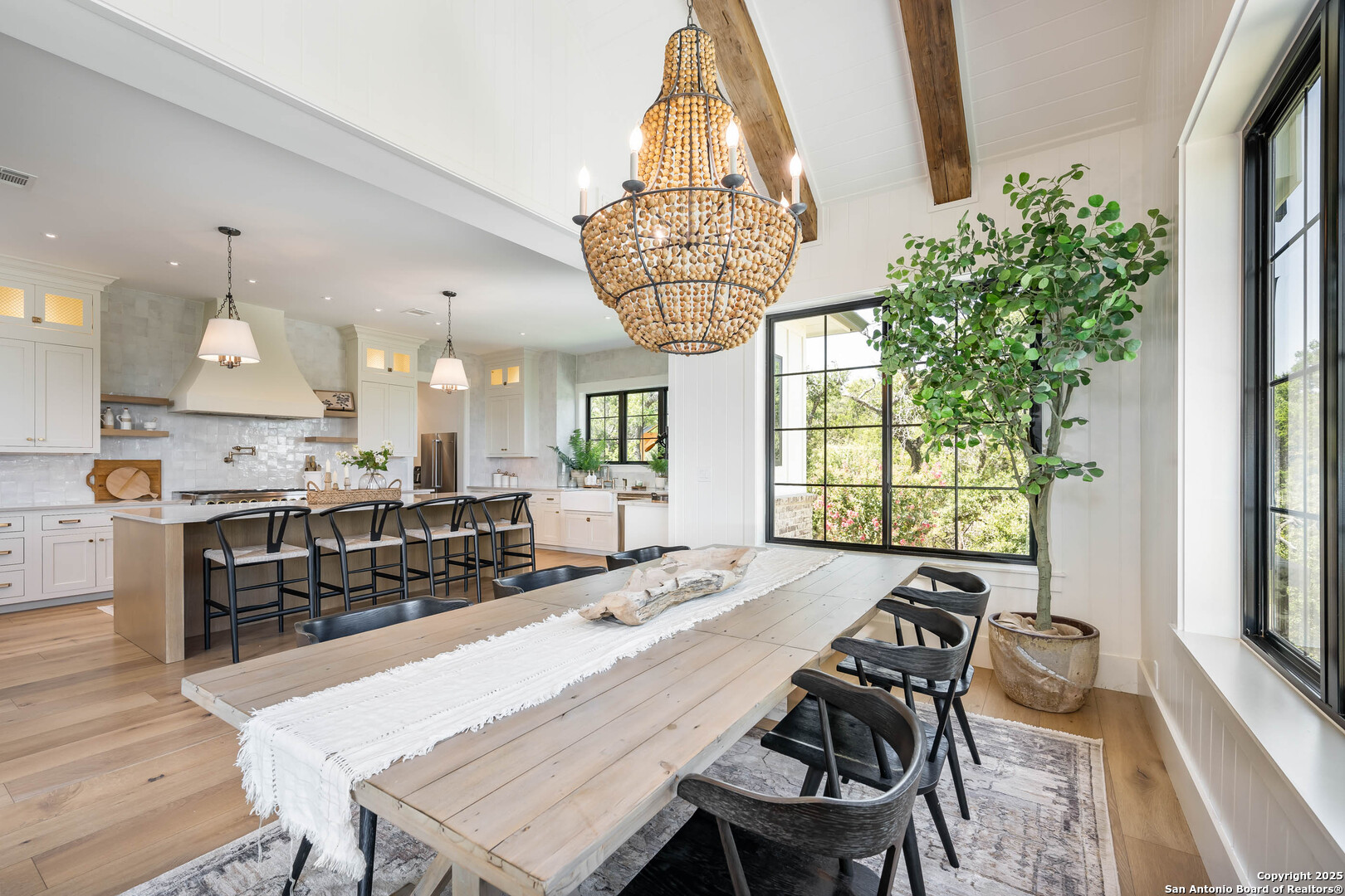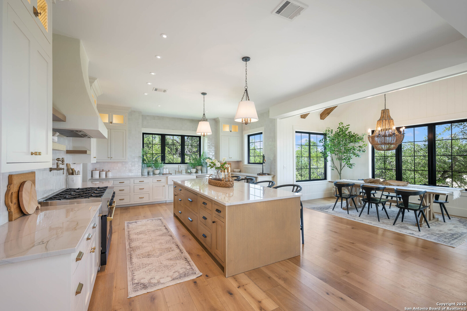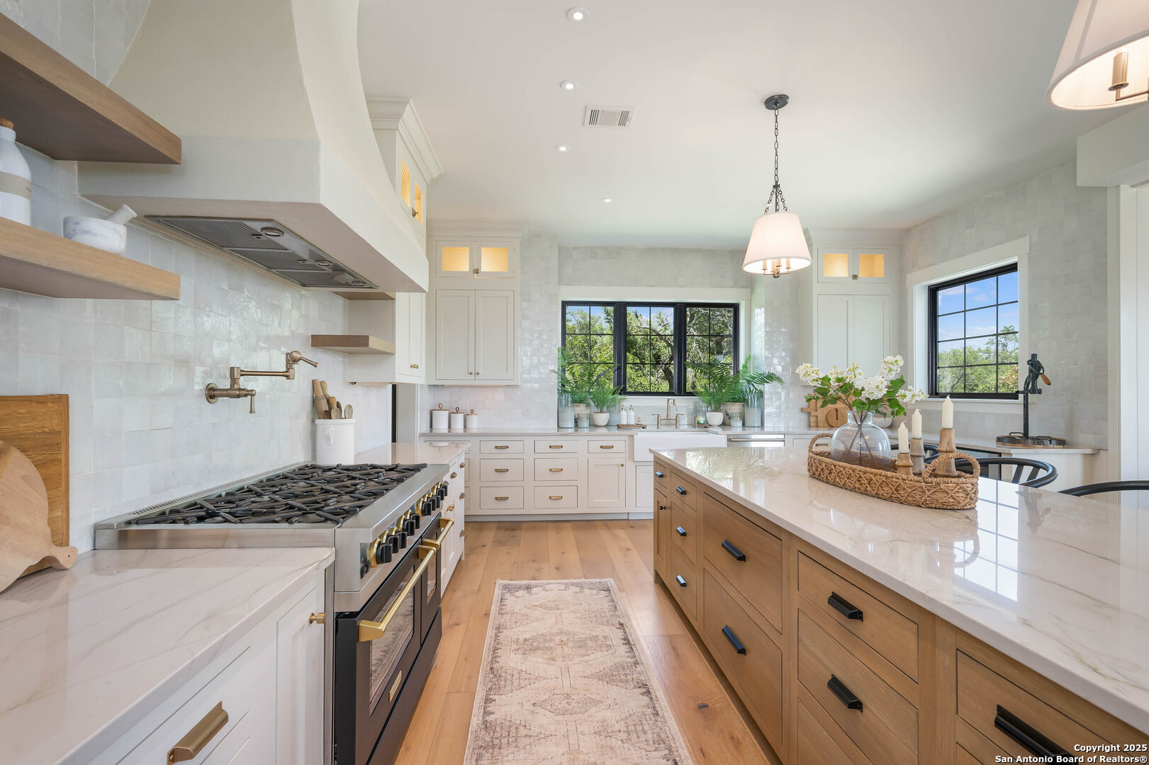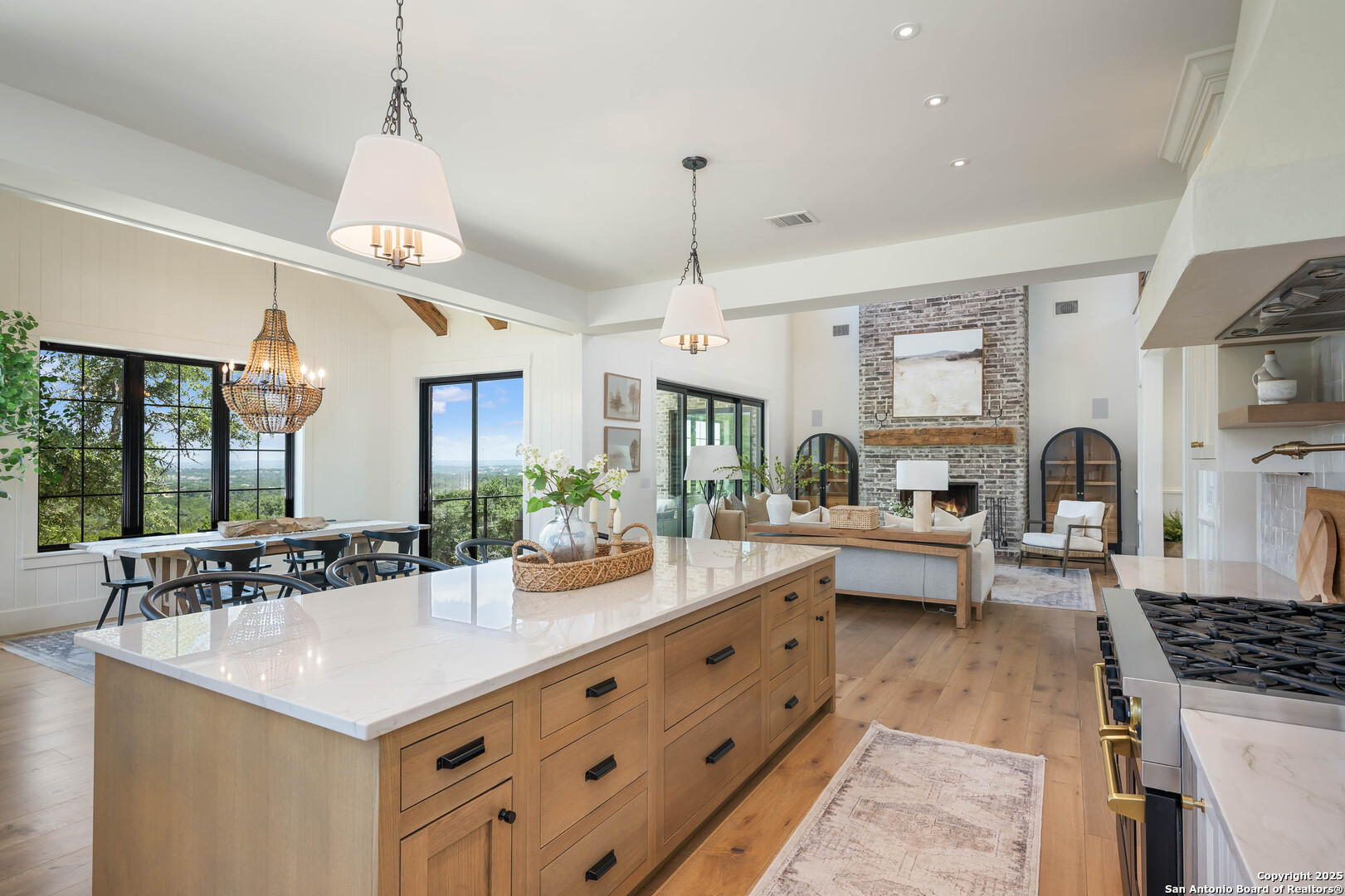 OPEN HOUSE 11/29/2025 & 11/30/2025 from 1:00 PM to 4:00 PM Experience elevated Hill Country living with this exceptional custom home by Cimarron Design and Build, perfectly situated on 3.63 acres in the sought-after Mystic Shores community. Designed to showcase sweeping views and unmatched privacy, this 2021-built masterpiece offers 4,092 sq. ft. of refined living space, including 3 bedrooms and 3.5 bathrooms, loft and game room. The property is thoughtfully designed for both comfort and entertaining, featuring a detached second garage, a charming gazebo, and a hot tub-ideal for enjoying the stunning natural surroundings. Inside, upscale finishes abound, from reclaimed Pennsylvania barn beams to hand-crafted Moroccan Zellige and Takarka Studios tiles. The chef's kitchen is a standout with a 48-inch Blue Star gas range, matching refrigerator, custom plaster range hood, and a spacious butler's pantry. Additional upgrades include a 400-amp electrical main, Pentair Pelican water system, fully insulated garage, Sonos surround sound wiring, and a comprehensive CCT camera system for peace of mind. Every detail has been considered, from the imported brick exterior and standing seam galvalume roof with rain chains to the pre-installed utilities for a future pool. Large windows throughout the home bring in natural light and frame distant lake views, while the expansive back patio offers a seamless transition from indoor to outdoor living. The primary suite is a private retreat with a spa-like bath, soaking tub, dual vanity, dual-head walk-in shower, and a dream-worthy closet. Located in Mystic Shores, residents enjoy world-class amenities including lakeside parks, pools, pickleball courts, nature trails, and private access to both Canyon Lake and the Guadalupe River-all just a short drive from San Antonio and Austin. This home is truly a rare offering in one of the Hill Country's most coveted communities.