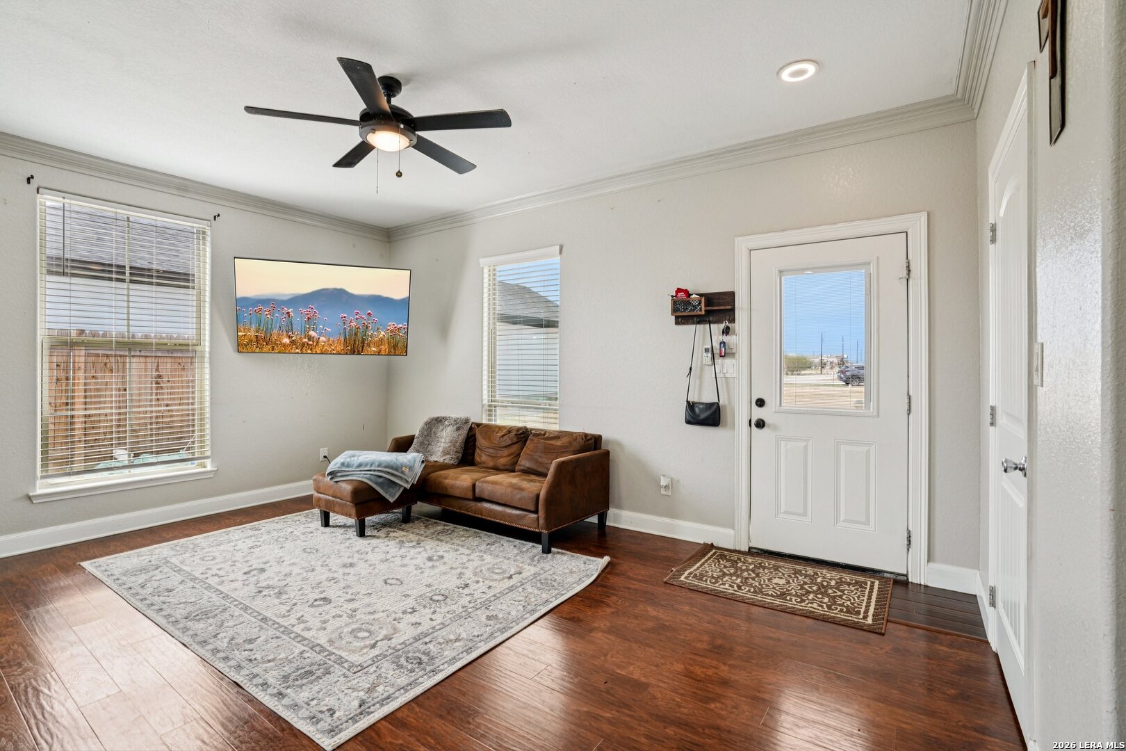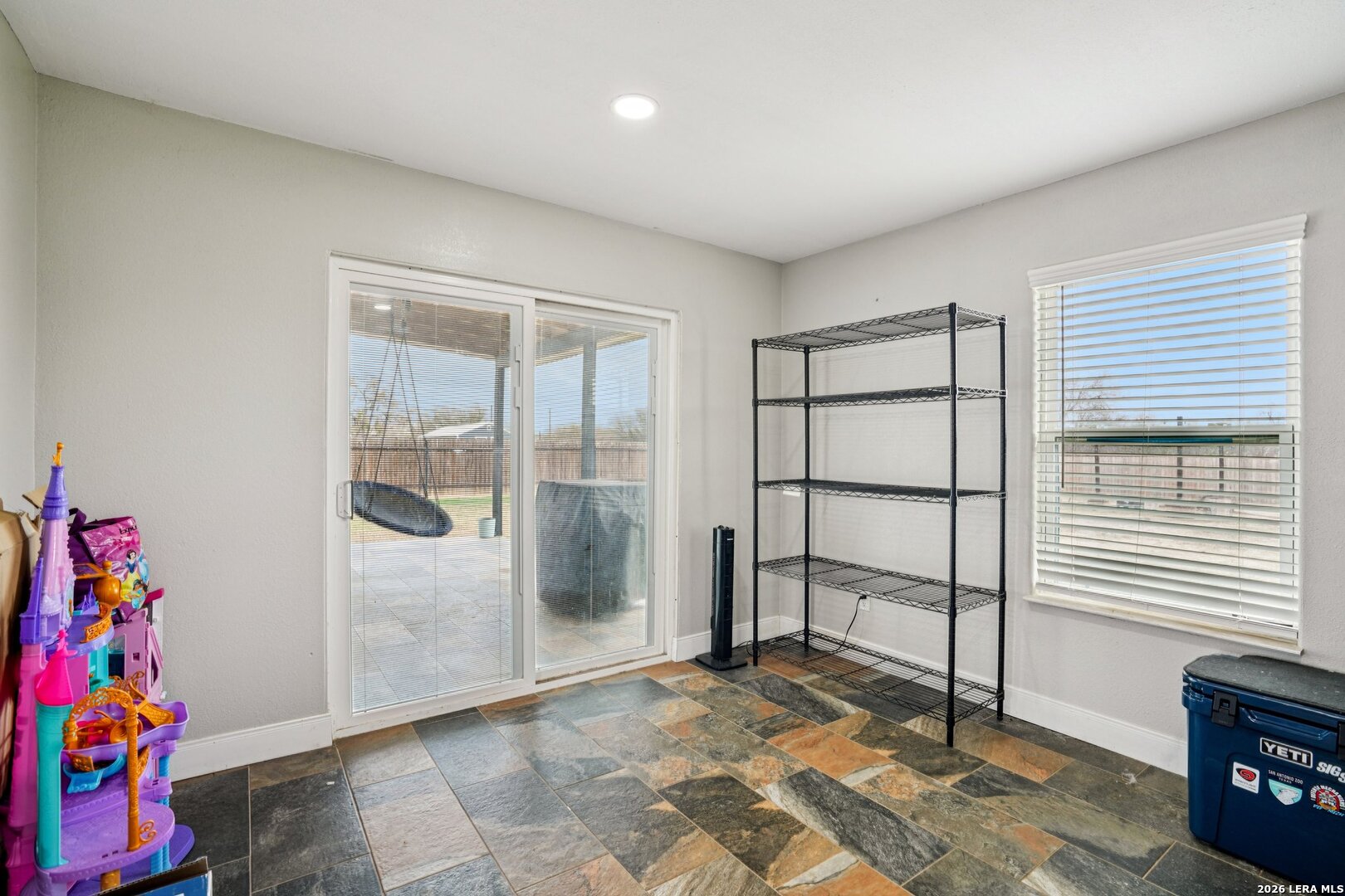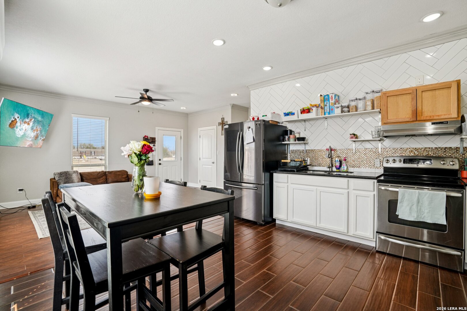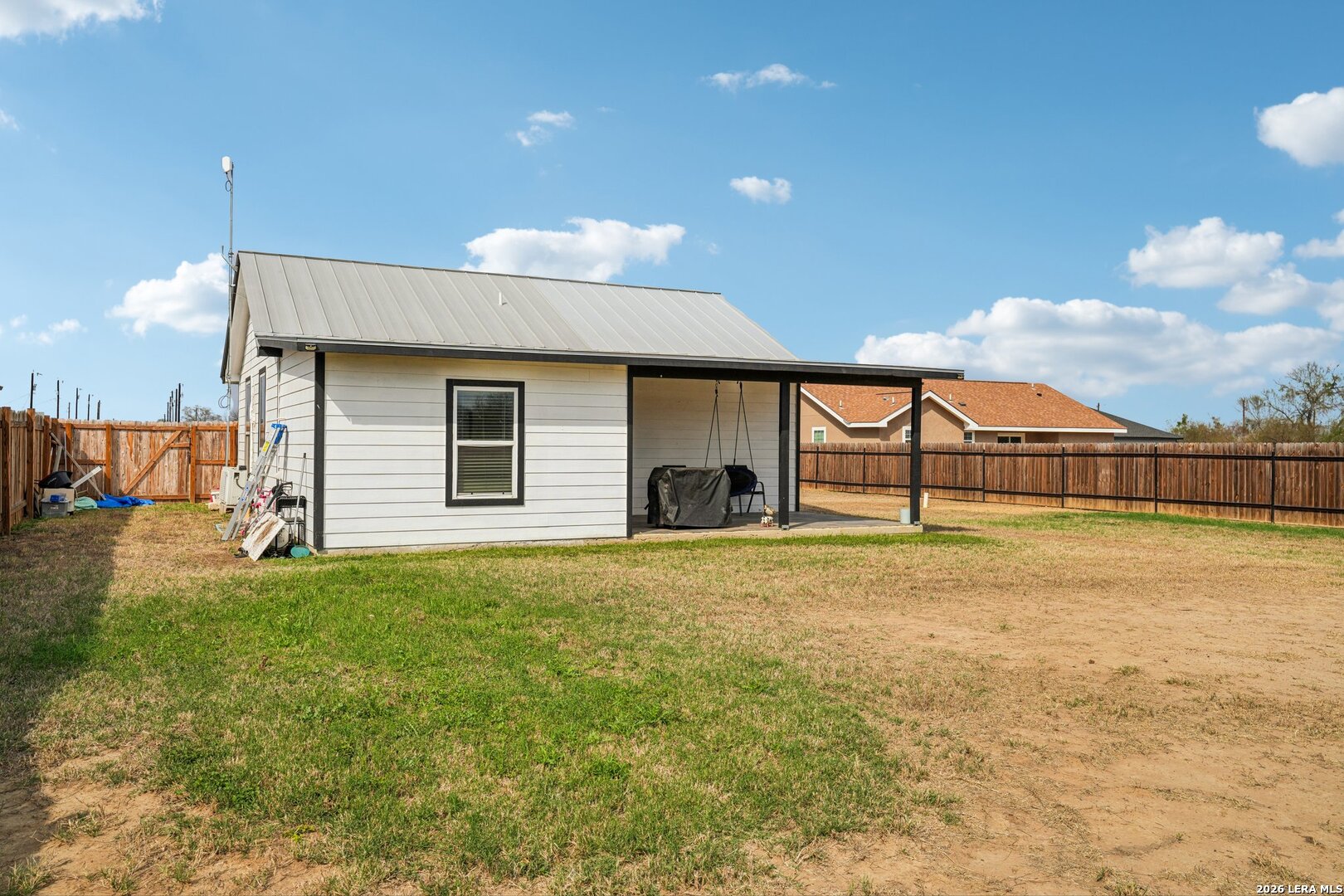 Welcome to this well-maintained home sitting on over half an acre, offering space, privacy, and comfort. The large backyard is fully enclosed with a privacy fence, giving you plenty of room to relax, entertain, or enjoy quiet evenings around the bonfire area. Inside, the home features two spacious bedrooms and a full bathroom with a walk-in tiled shower. The open floor plan creates a comfortable flow between the living, dining, and kitchen areas, highlighted by granite countertops, crown molding, and abundant natural light throughout. Built in 2019, this home has been very well cared for and is move-in ready. The main living areas feature durable vinyl and ceramic-style flooring, and the metal roof adds both longevity and low maintenance.
