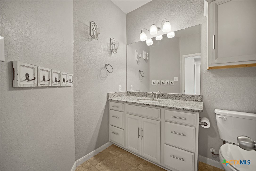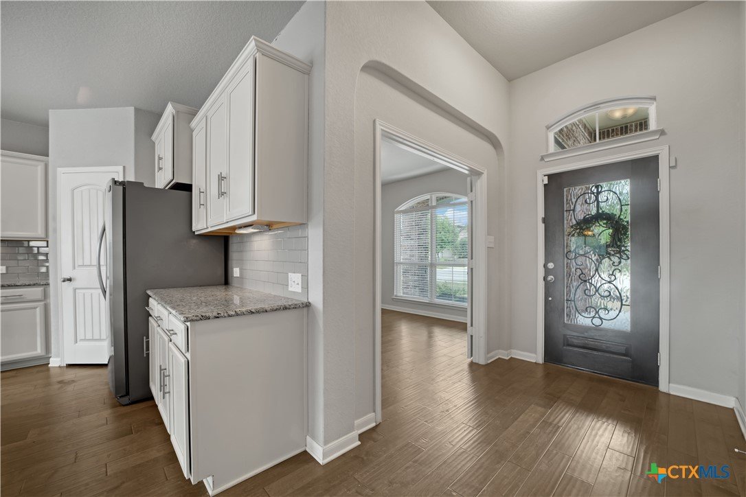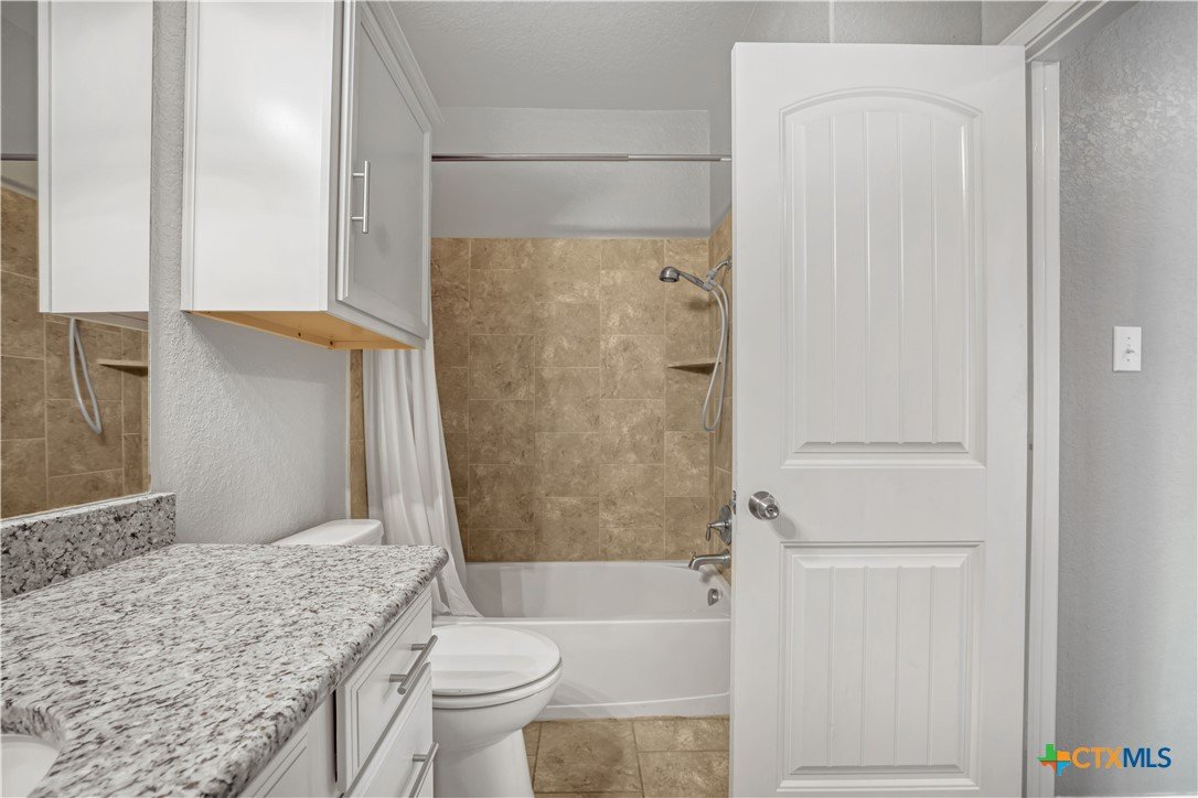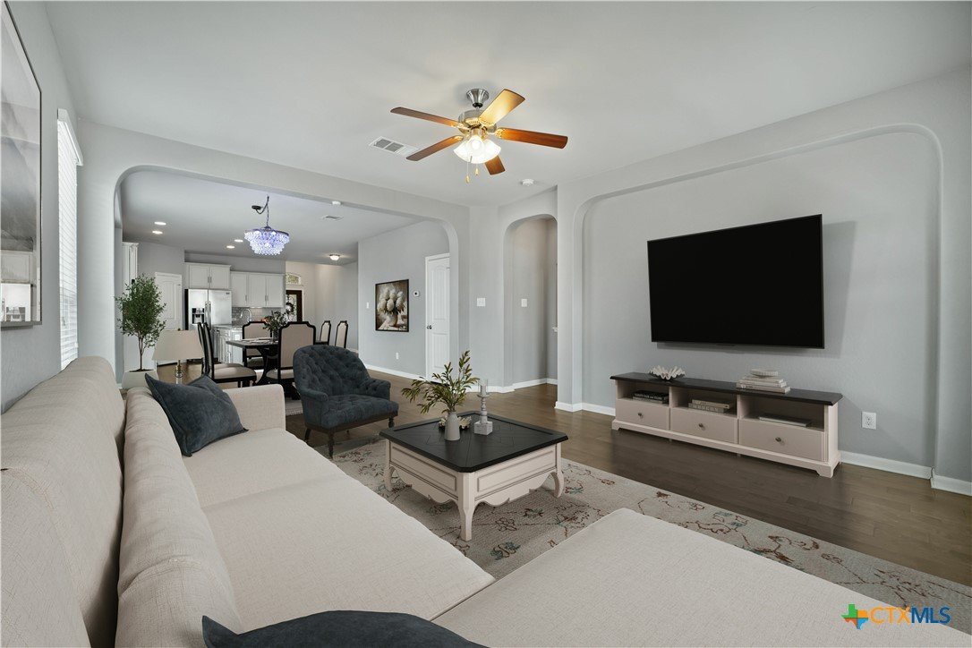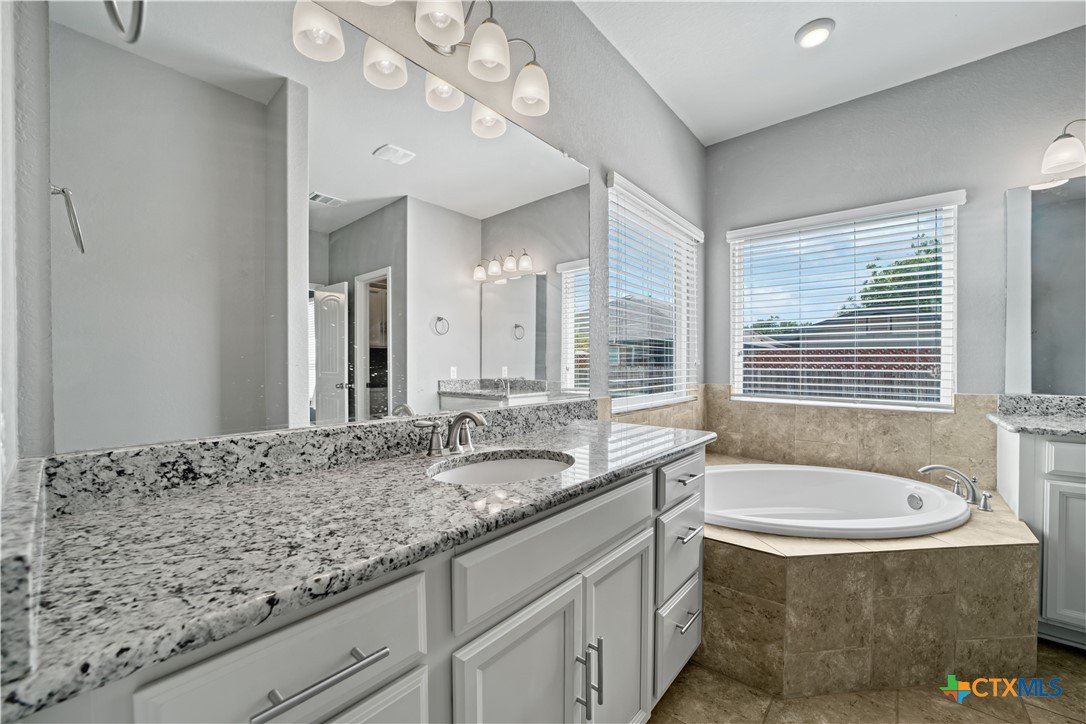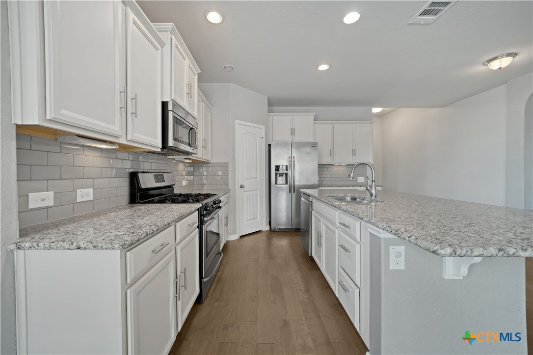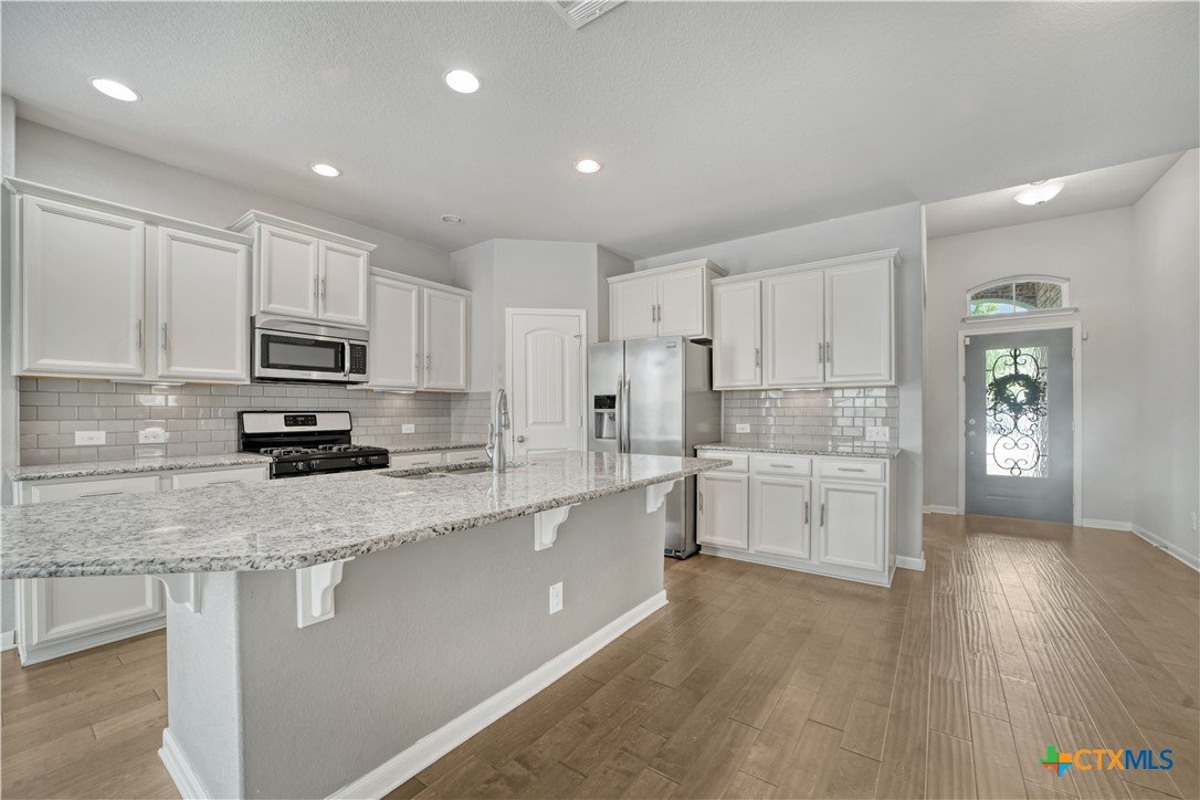 Welcome to 325 Oak Creek Way in New Braunfels, a beautifully maintained single story home with 3 bedrooms and 2 bathrooms designed for easy, modern living. An additional flex room also makes the perfect home office or play room. The open floor plan creates a natural flow between the spacious living, dining, and kitchen areas. The kitchen stands out with granite countertops, a large center island with breakfast bar, stainless steel appliances, white cabinetry, a subway tile backsplash, and a walk in pantry. The private primary suite offers a comfortable retreat with a generous bedroom, walk in closet, and an ensuite bath featuring dual vanities and a soaking tub. Outside, you will find a charming brick exterior, covered front entry, two car garage, landscaped yard, and a covered back patio that is perfect for relaxing or entertaining. Conveniently located near shopping, dining, schools, and quick access to I 35, this home offers both comfort and convenience in the heart of Texas Hill Country.
