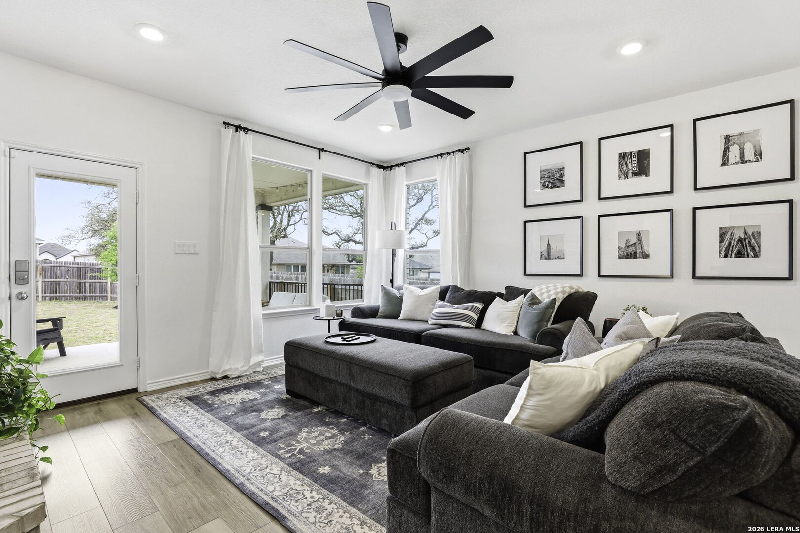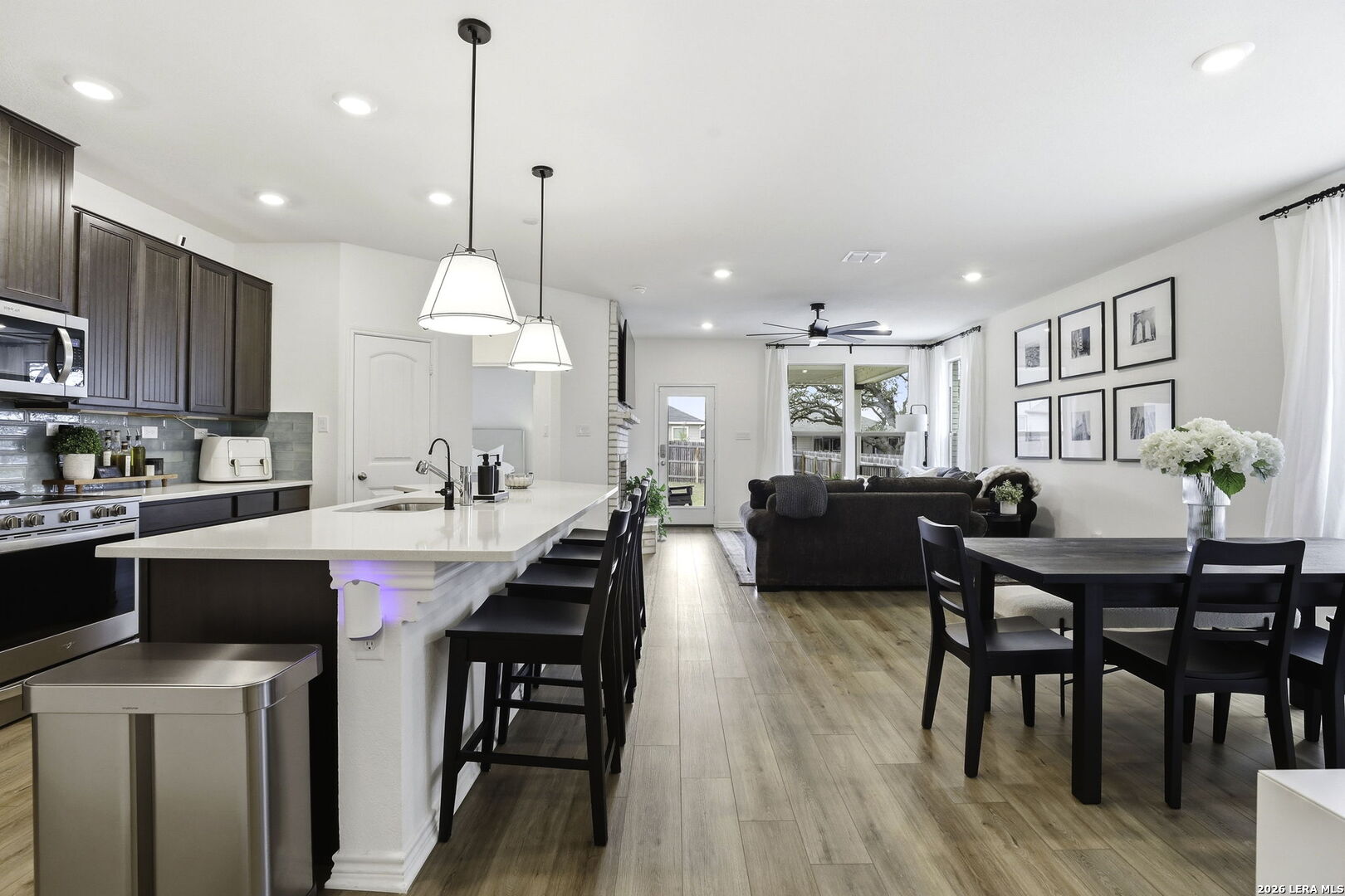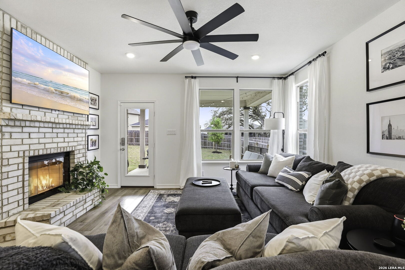 Designed with flexibility and privacy in mind, this 4-bedroom, 3-bath home offers a standout floor plan featuring a private primary suite and a secondary bedroom with its own ensuite - a rare layout that adds comfort and versatility. Inside, a bright open-concept design creates an easy flow between the living, kitchen, and dining areas, ideal for both everyday living and entertaining. The kitchen is well-appointed with modern finishes, generous storage, and a large island that naturally becomes the heart of the home. The backyard is built for everyday enjoyment featuring a covered patio for shaded evenings, a level lawn for kids and pets to play, and an inviting space to host and unwind. Set within Shoreline Park, residents enjoy access to a neighborhood pool, playground, and the standout perk, Boerne Lake, along with close proximity to schools, shopping and dining in downtown Boerne, as well as easy access to I-10. What truly sets this home apart are the thoughtful upgrades that are already complete - including landscaping, full irrigation, a covered patio, fireplace, water softener, and more, so you can skip the extra expense and start enjoying the home from day one.