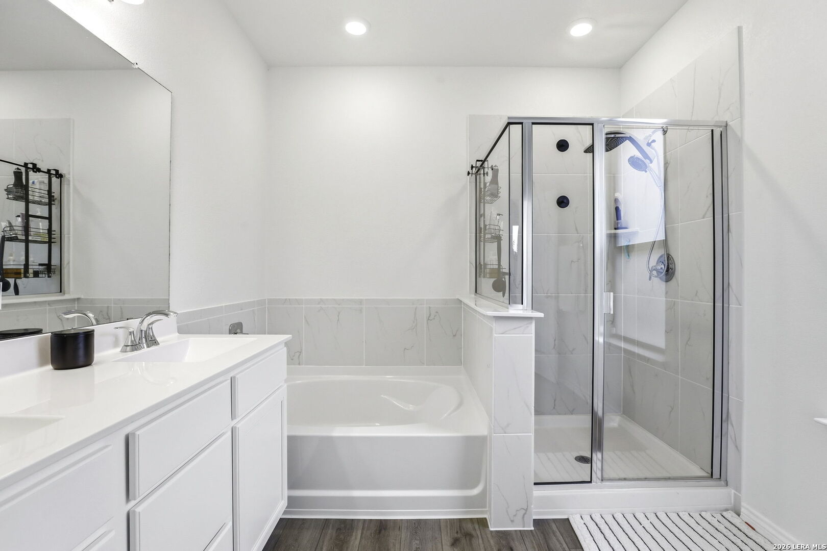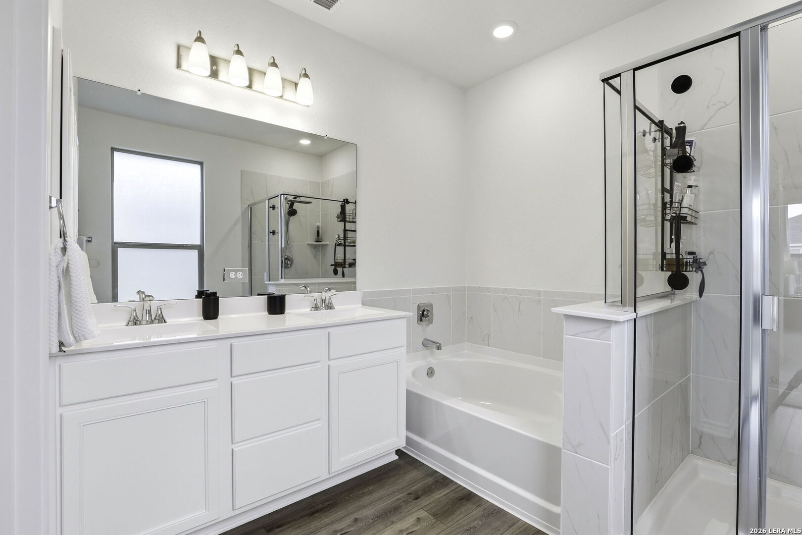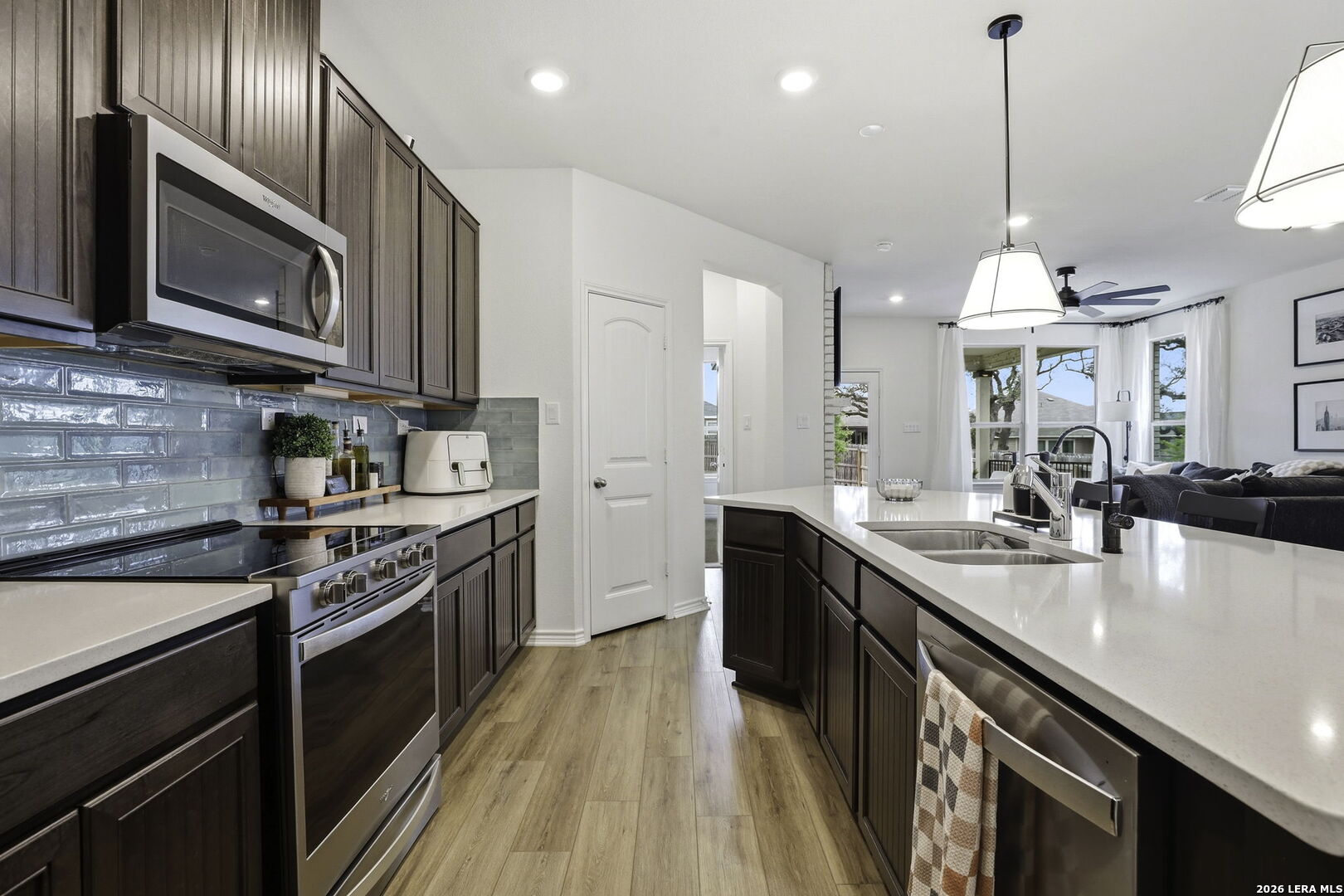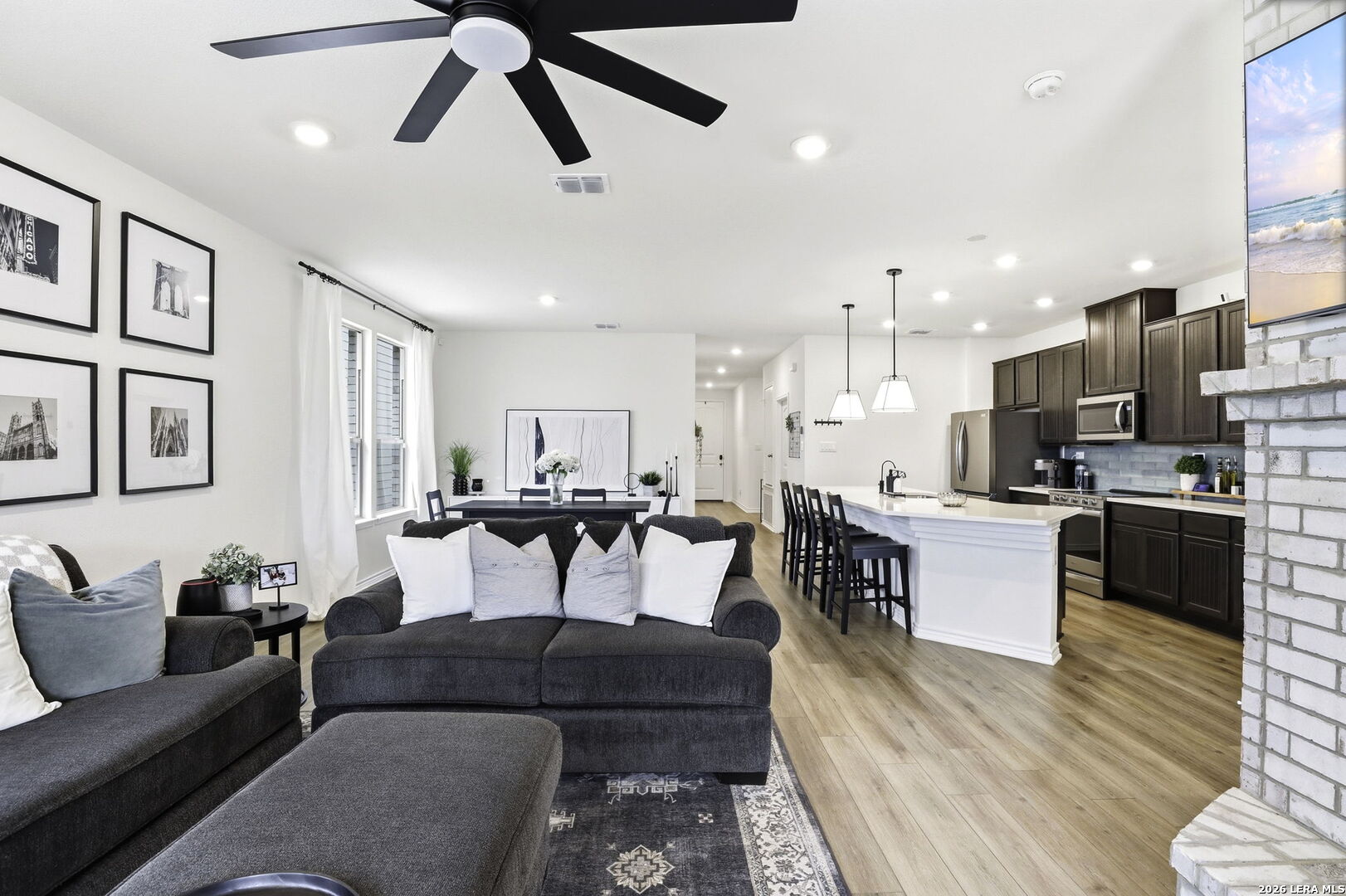 Designed with flexibility and privacy in mind, this 4-bedroom, 3-bath home offers a standout floor plan featuring a private primary suite and a secondary bedroom with its own ensuite - a rare layout that adds comfort and versatility. Inside, a bright open-concept design creates an easy flow between the living, kitchen, and dining areas, ideal for both everyday living and entertaining. The kitchen is well-appointed with modern finishes, generous storage, and a large island that naturally becomes the heart of the home. The backyard is built for everyday enjoyment featuring a covered patio for shaded evenings, a level lawn for kids and pets to play, and an inviting space to host and unwind. Set within Shoreline Park, residents enjoy access to a neighborhood pool, playground, and the standout perk, Boerne Lake, along with close proximity to schools, shopping and dining in downtown Boerne, as well as easy access to I-10. What truly sets this home apart are the thoughtful upgrades that are already complete - including landscaping, full irrigation, a covered patio, fireplace, water softener, and more, so you can skip the extra expense and start enjoying the home from day one.
