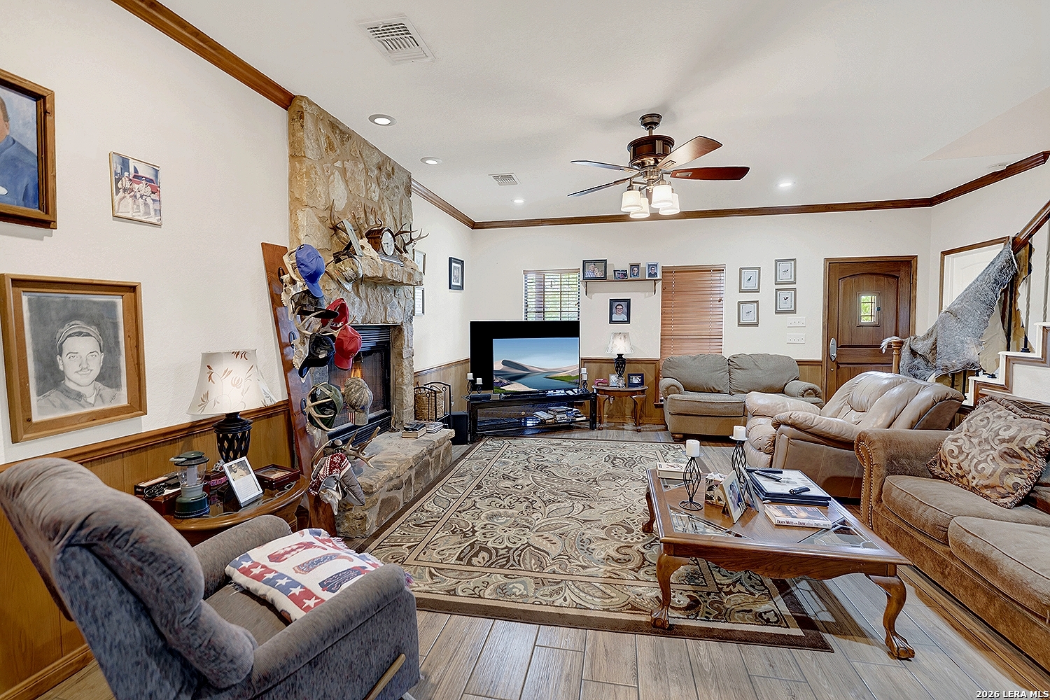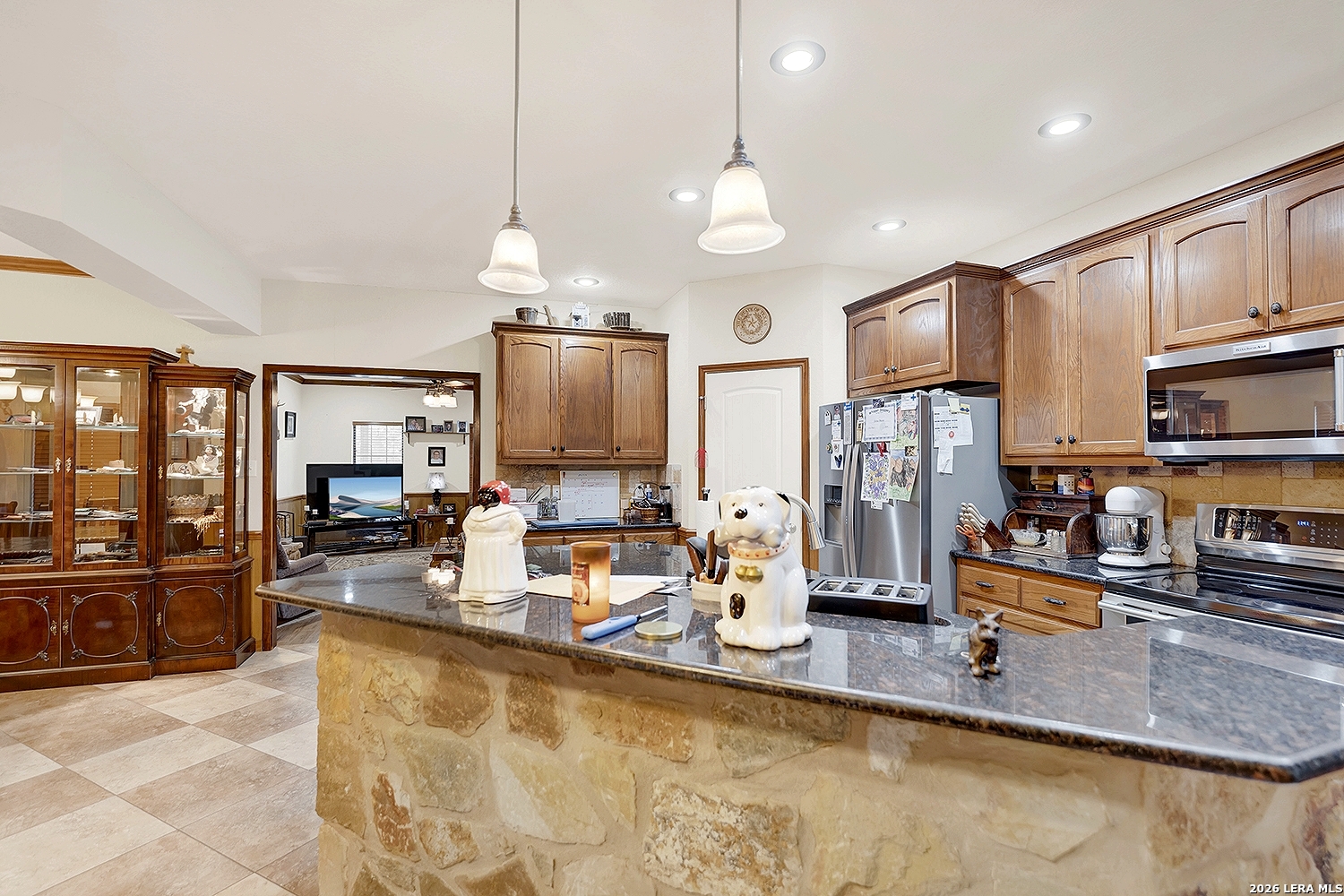 Welcome to your slice of Texas heaven. Set on 3.75 acres, this 3,169 sq ft country home captures the spirit of wide-open living with just the right touch of comfort and charm. From the moment you arrive, you'll feel the invitation to slow down and stay awhile. Inside, the home offers 3 spacious bedrooms, a dedicated office, and 4 full bathrooms, perfectly suited for both everyday living and hosting friends and family. The layout is open and welcoming, with plenty of room to gather, laugh, and make memories. Step outside and take in what Texas living is all about...long, peaceful views and gobs of covered porches made for rocking chairs, sweet tea, and sunset skies. Whether it's morning coffee or evening get-togethers, these porches are the heart of the home. The detached shop adds true country practicality, offering space for projects, storage, or whatever your lifestyle calls for. Located in the sought-after La Vernia school district, you'll enjoy the quiet of country life without sacrificing convenience. If you've been dreaming of fresh air, star-filled nights, and a place that feels like home the minute you pull in the drive, this one's ready to welcome you.