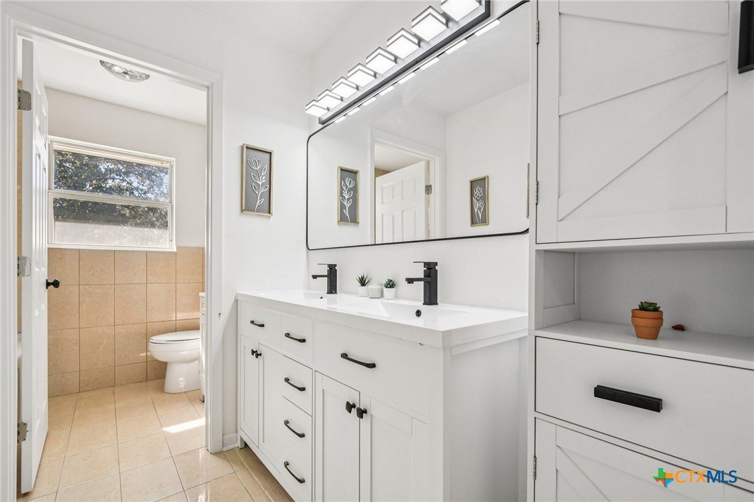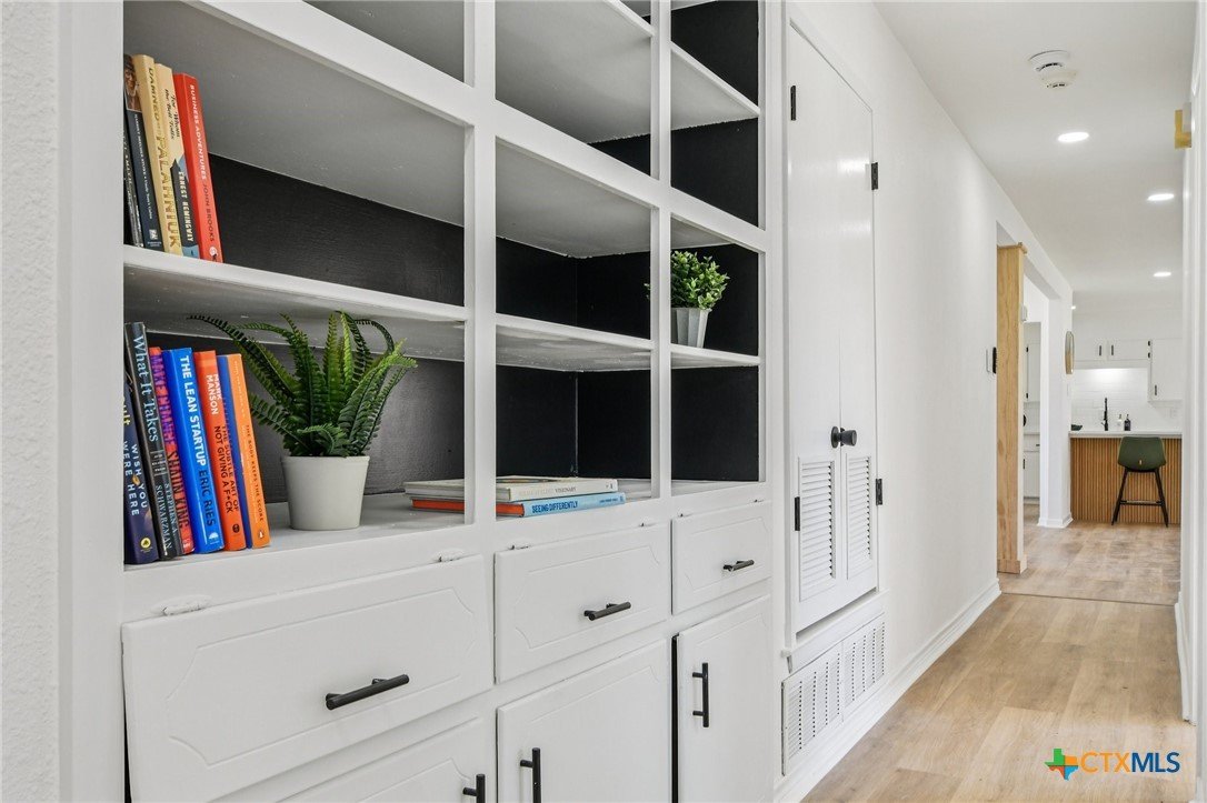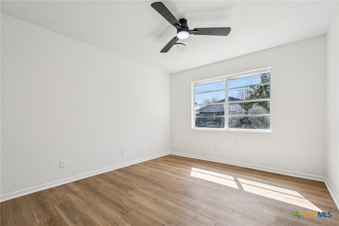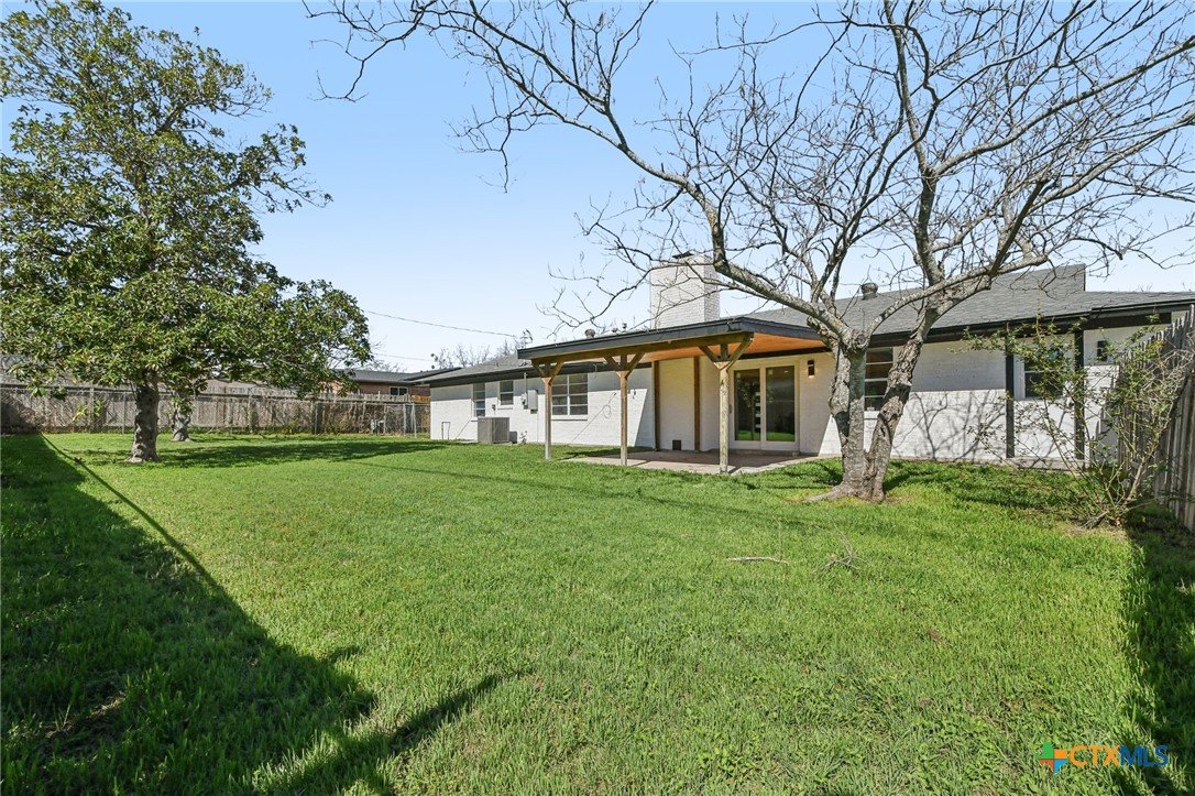 A MUST SEE!! Take a peek at this beautifully updated home with an open floor plan on a huge corner lot. Inside you’ll find brand new LVP flooring throughout, recessed lighting, and a nicely updated fireplace that makes the living area feel warm and inviting. The kitchen features brand new stone countertops, GE stainless steel appliances, a white subway tile backsplash, and a real oak wood island. Unique touches like the real oak wood accent wall in the laundry room and the oak post in the living/dining area add character and charm. The primary bathroom has been completely remodeled and includes large-format greige tile flooring. Additional highlights include restored built-in hallway shelving and a brand new modern front entry door. Enjoy the covered back patio and spacious yard-perfect for relaxing or entertaining. Conveniently located less than 15 minutes from Fort Hood and about a 10-minute walk to Long Branch Park with basketball and tennis courts, a pool, and more.