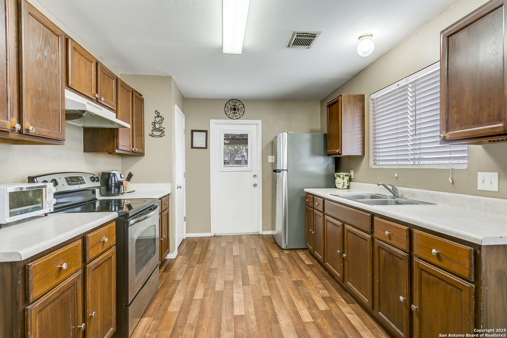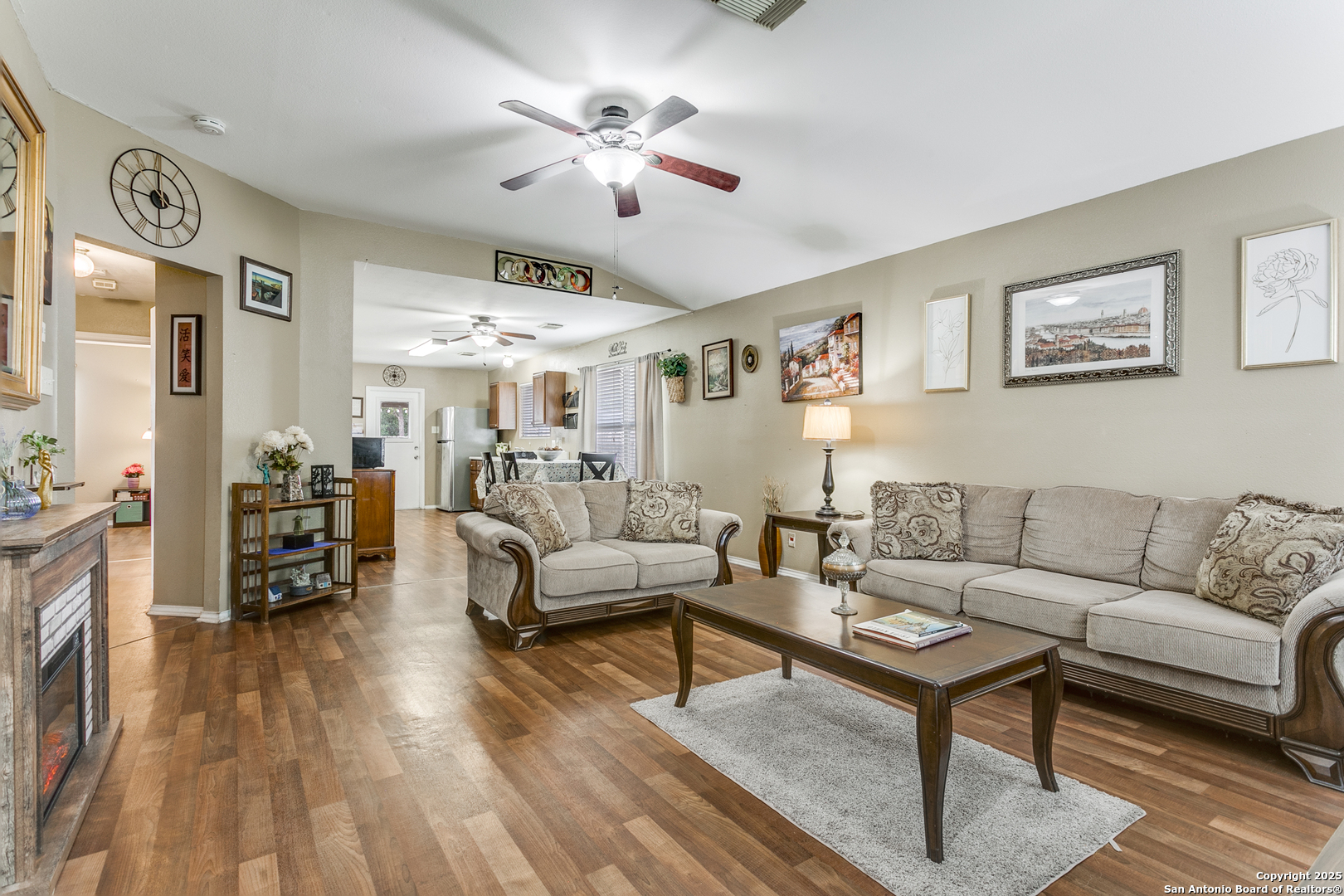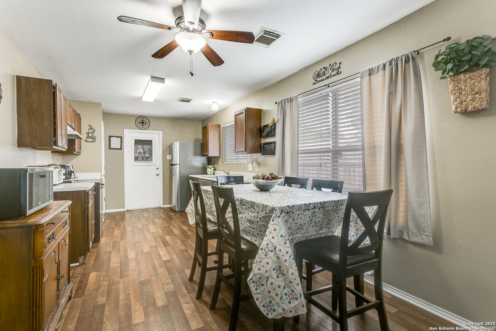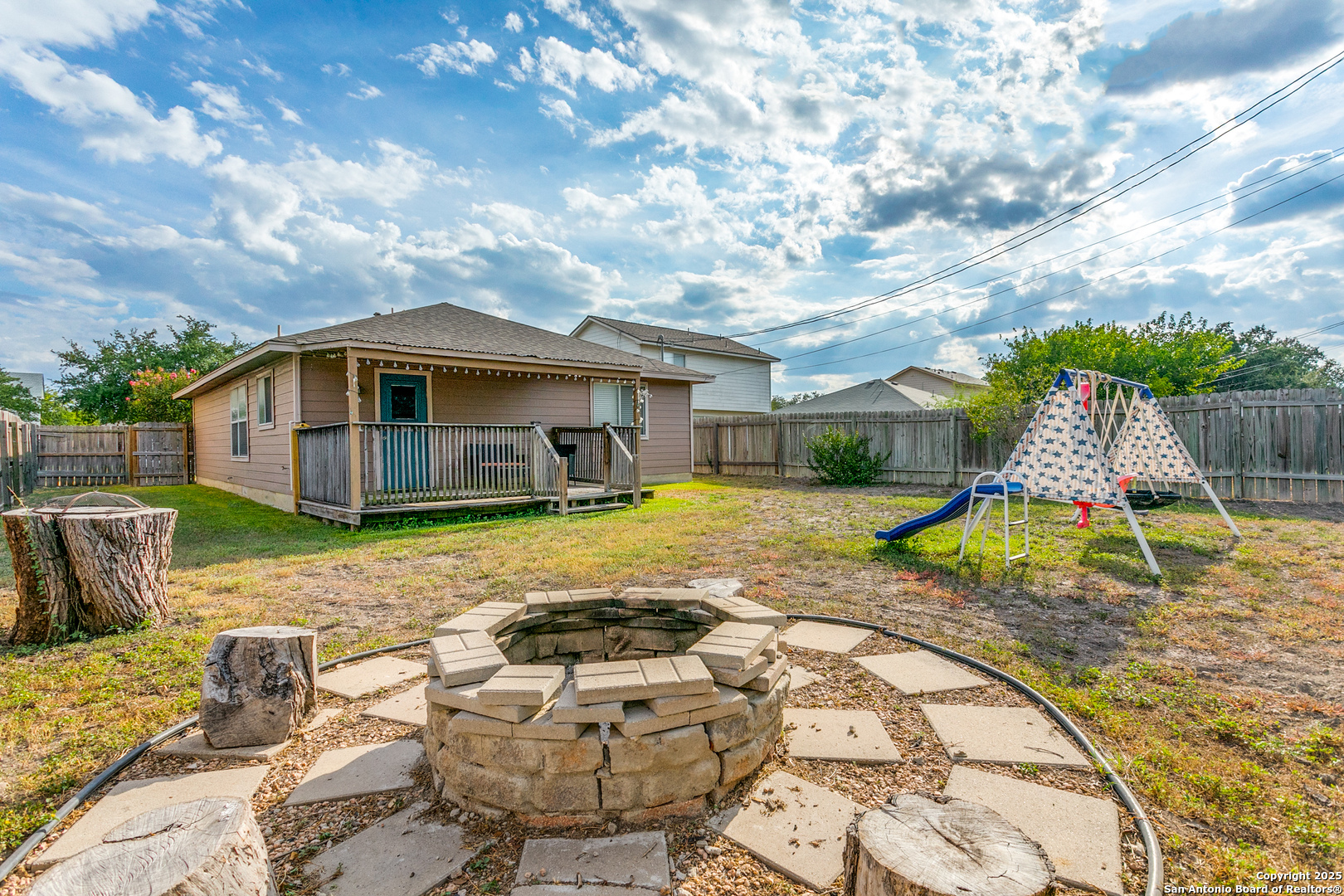 Welcome to your move-in ready retreat in East Central ISD, ideally situated just minutes from Brooks City-Base. This lovingly maintained one-story home offers 3 bedrooms and 1 full bath - no carpet throughout - delivering low upkeep and effortless comfort. Step inside to an open concept layout bathed in natural light. The was roof installed under 5 years ago which adds peace of mind. Outside, you'll find an extended wood deck overlooking a spacious backyard with a fire pit - perfect for relaxing evenings or entertaining guests. Enjoy all the benefits of a well-established neighborhood, without HOA restrictions. Easy access to major highways, shopping, and workplaces including Toyota make your commute a breeze. Don't miss this opportunity - a perfect blend of comfort, convenience, and charm.