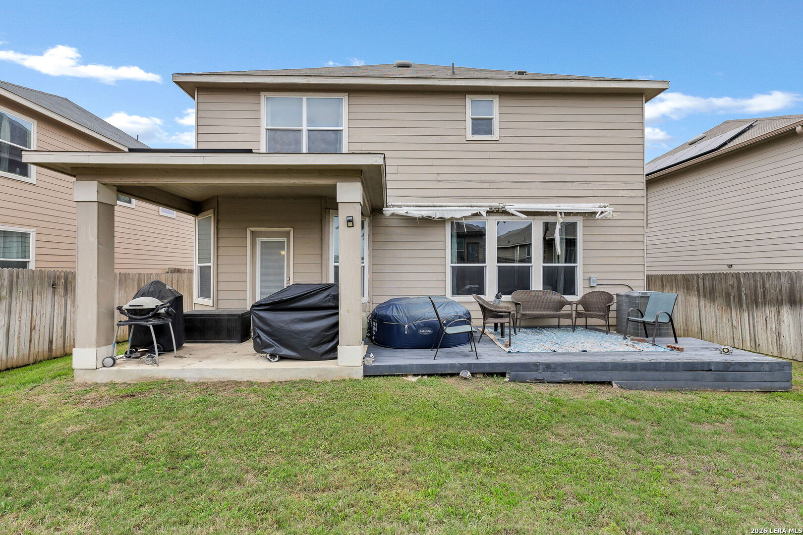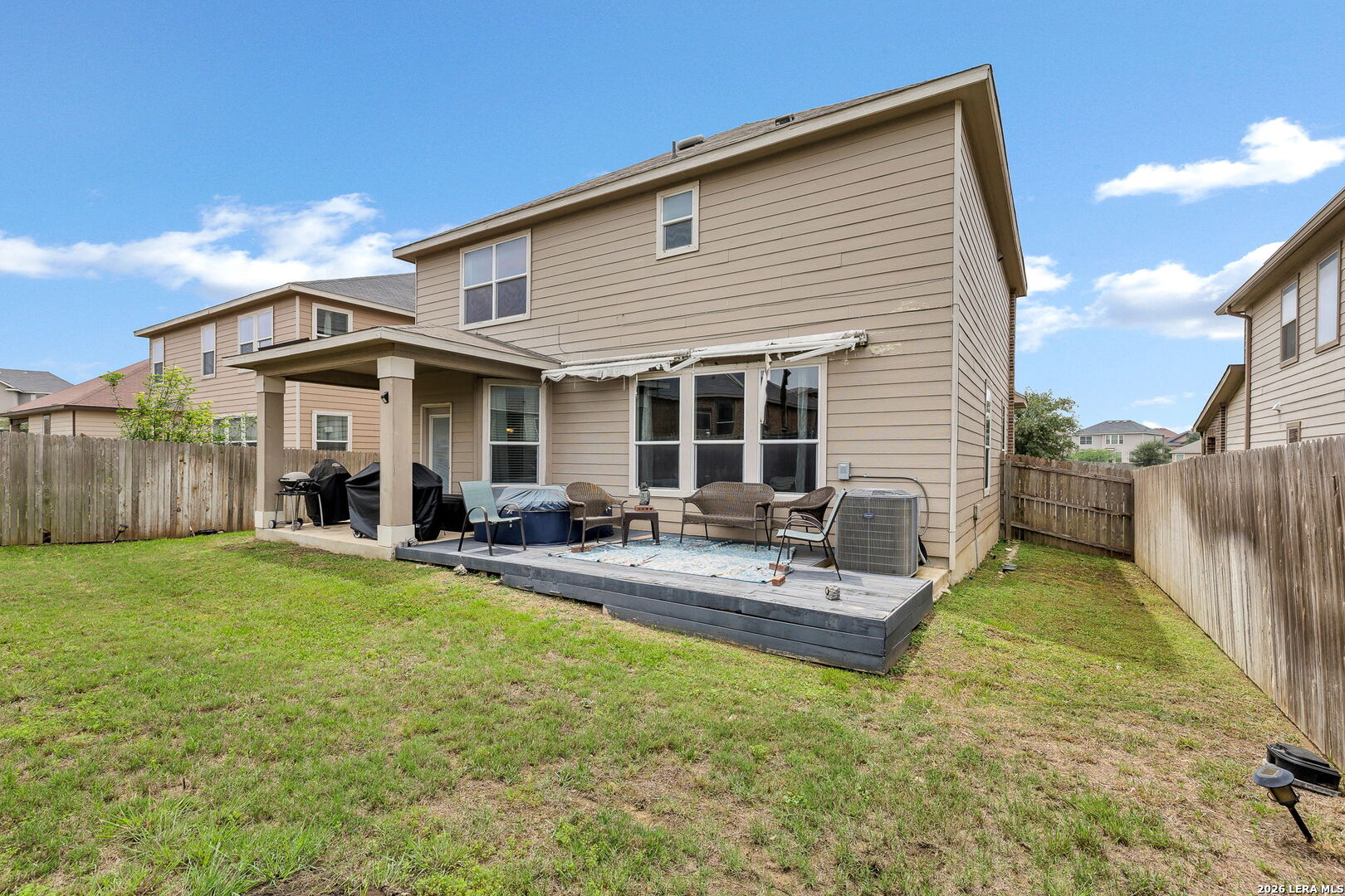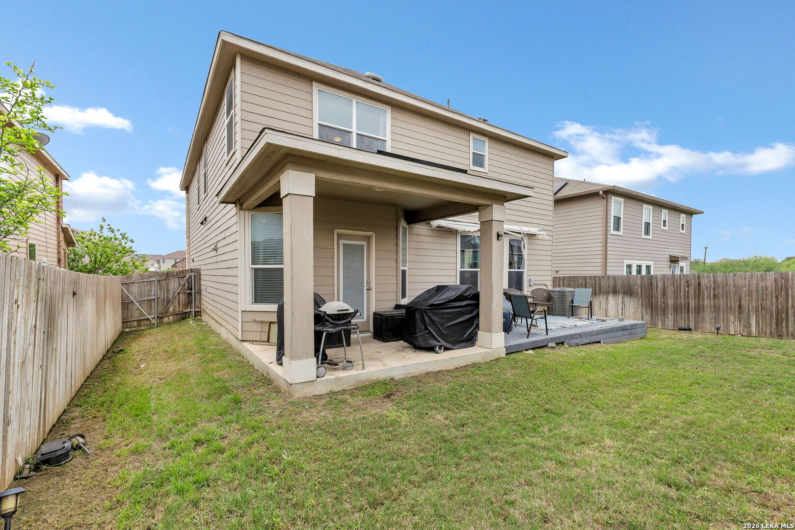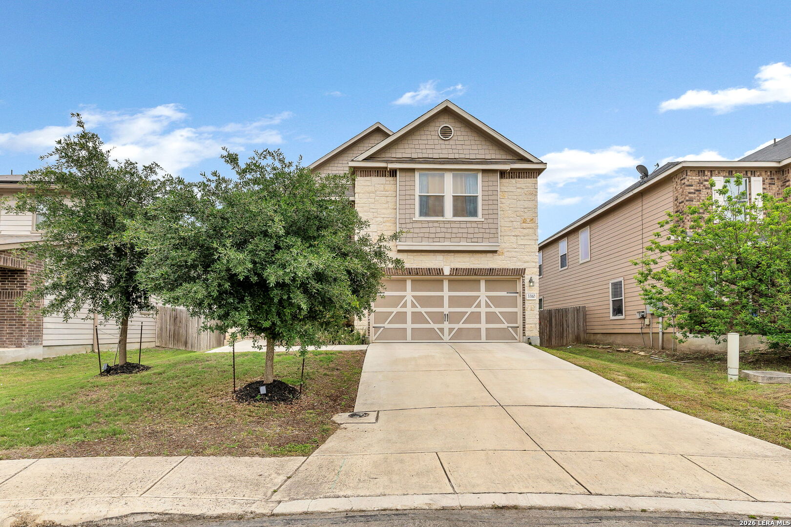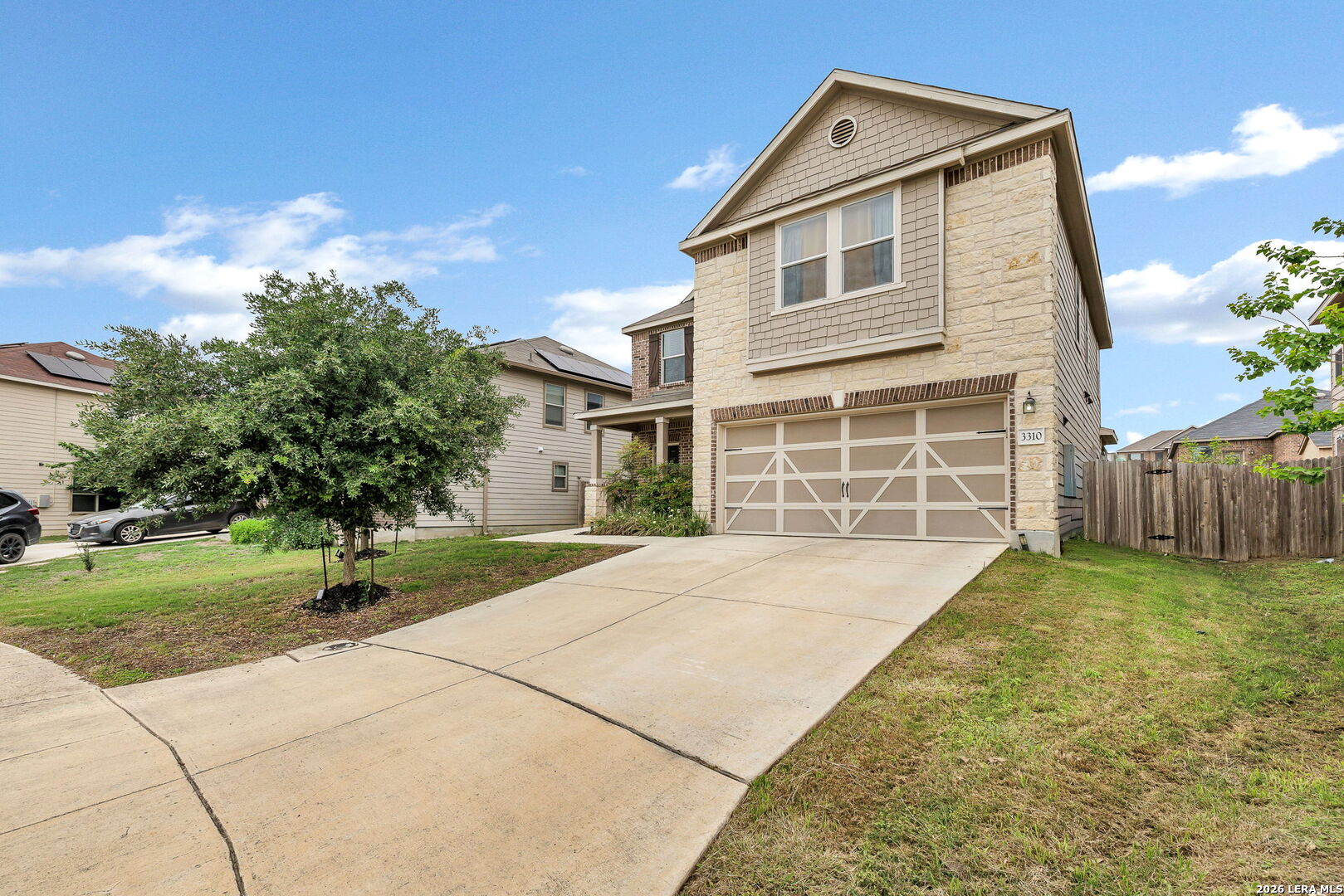 Welcome to 3310 Lyro Fields in the desirable Windfield community of Converse, TX! Situated on a quiet cul-de-sac, this well-maintained two-story home offers a functional and inviting layout with 3 spacious bedrooms and 2.5 bathrooms. A versatile flex space with elegant dual doors provides the perfect setting for a home office, media room, or creative studio. The interior features generously sized bedrooms and comfortable living areas designed for both everyday living and entertaining. Step outside to enjoy the extended backyard deck-ideal for relaxing or hosting gatherings. The home also includes a sprinkler system in both the front and back yards, helping maintain the landscape with ease. Located in a community that features a park, playground, and basketball court, this home offers convenient access to neighborhood amenities while being just a short drive from shopping, dining, and major highways.