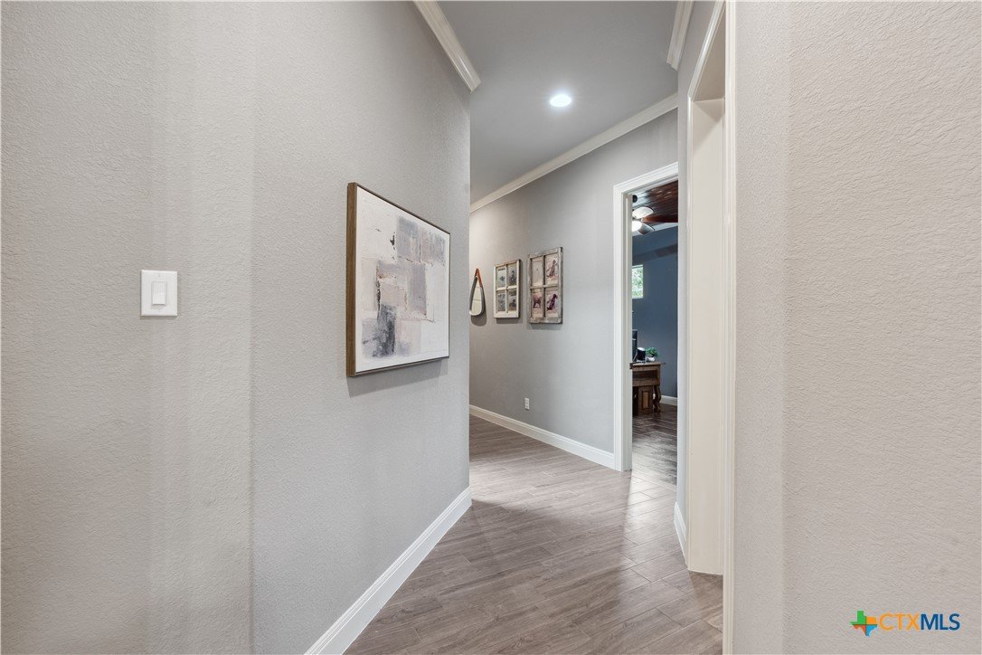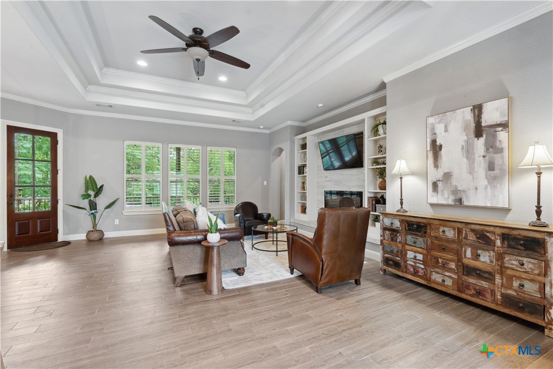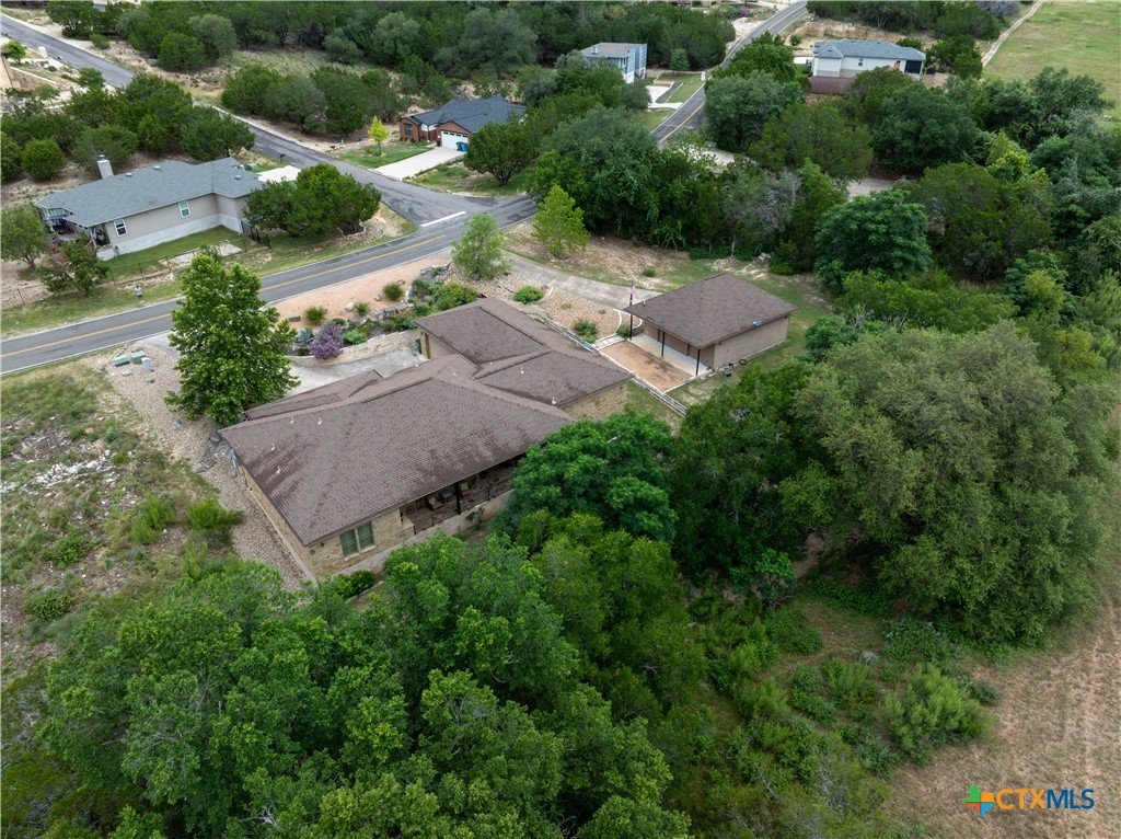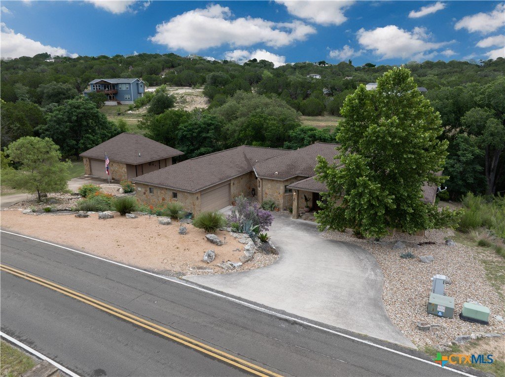 Located in the picturesque lake community of Lago Vista, this exquisite home offers unparalleled tranquility and privacy. Backing to a seasonal creek run-off and the inactive golf course—with no neighbors behind—this over .62 acre property is a Hill Country retreat. The home features 3 bedrooms, 2.5 bathrooms, a dedicated office/study, and a media/second living area. The open floorplan is filled with natural light and accented by plantation shutters throughout. Beautifully landscaped for low maintenance, the outdoor space is perfect for enjoying peaceful Texas evenings. A standout feature is the second structure on the property—ideal as a workshop or garage, or with added plumbing, it could be converted into a private casita with its own entrance and driveway. Perfect for multigenerational living, guest quarters, or income-producing potential. As a Lago Vista property owner, you'll enjoy access to an abundance of amenities including 7 waterfront parks, multiple boat ramps, a fishing well, playgrounds, tennis and pickleball courts, a community pool, an active public golf course, and so much more. Whether you're seeking peace and privacy or an active outdoor lifestyle, this property truly has it all.