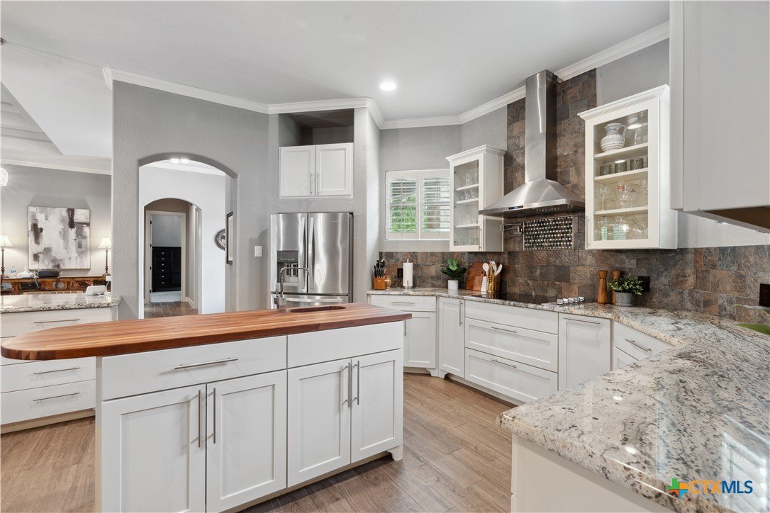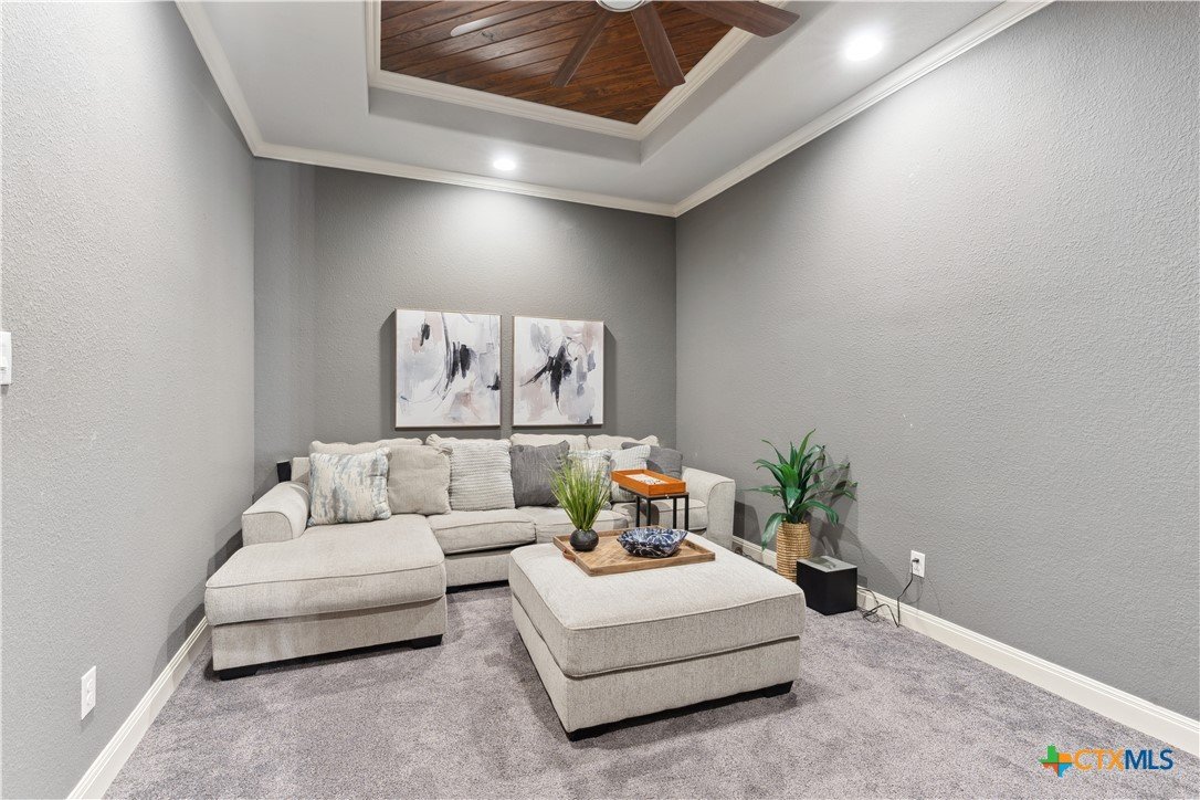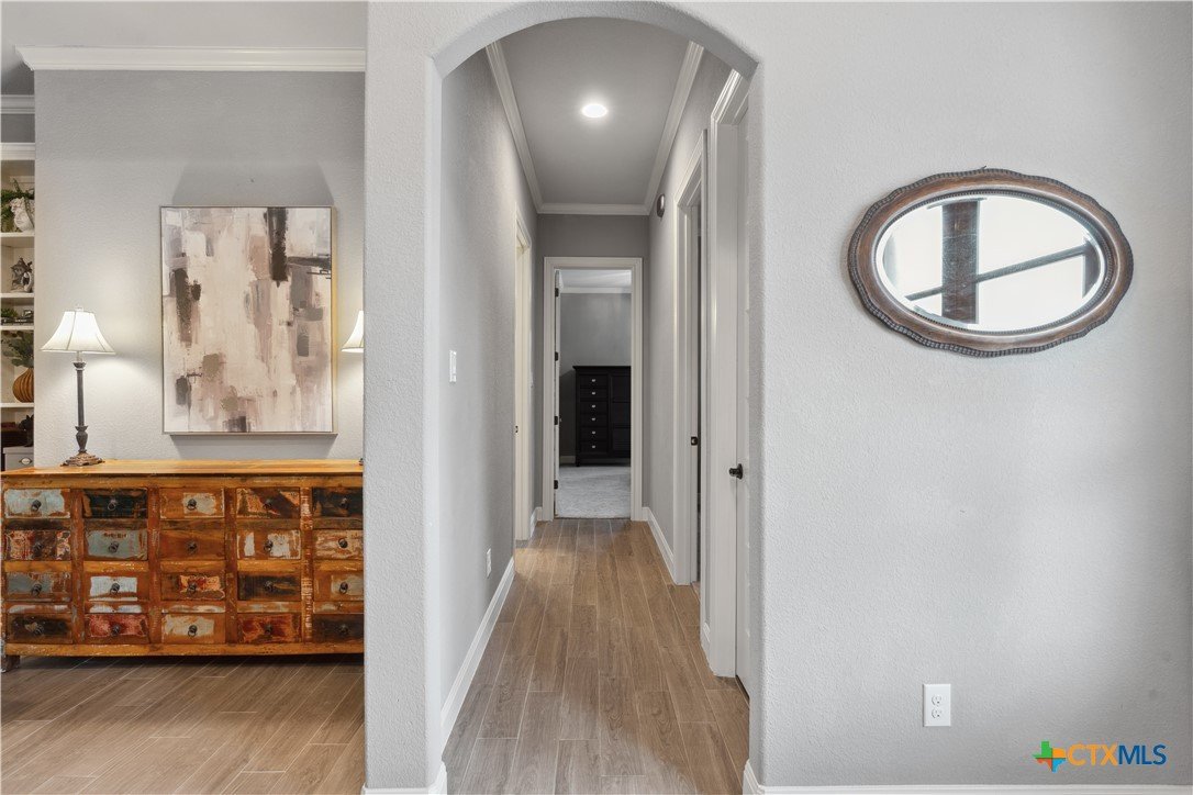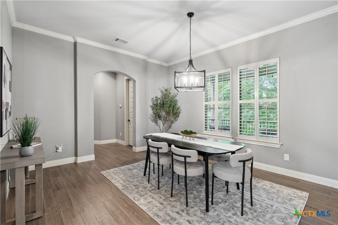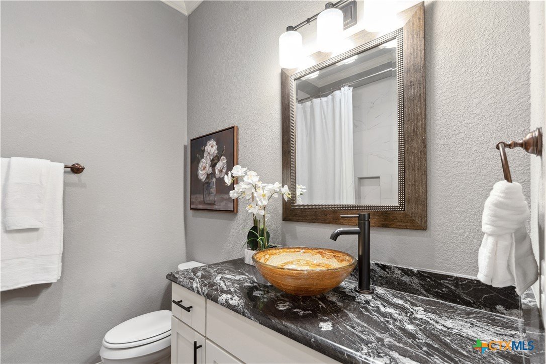 Located in the picturesque lake community of Lago Vista, this exquisite home offers unparalleled tranquility and privacy. Backing to a seasonal creek run-off and the inactive golf course—with no neighbors behind—this over .62 acre property is a Hill Country retreat. The home features 3 bedrooms, 2.5 bathrooms, a dedicated office/study, and a media/second living area. The open floorplan is filled with natural light and accented by plantation shutters throughout. Beautifully landscaped for low maintenance, the outdoor space is perfect for enjoying peaceful Texas evenings. A standout feature is the second structure on the property—ideal as a workshop or garage, or with added plumbing, it could be converted into a private casita with its own entrance and driveway. Perfect for multigenerational living, guest quarters, or income-producing potential. As a Lago Vista property owner, you'll enjoy access to an abundance of amenities including 7 waterfront parks, multiple boat ramps, a fishing well, playgrounds, tennis and pickleball courts, a community pool, an active public golf course, and so much more. Whether you're seeking peace and privacy or an active outdoor lifestyle, this property truly has it all.