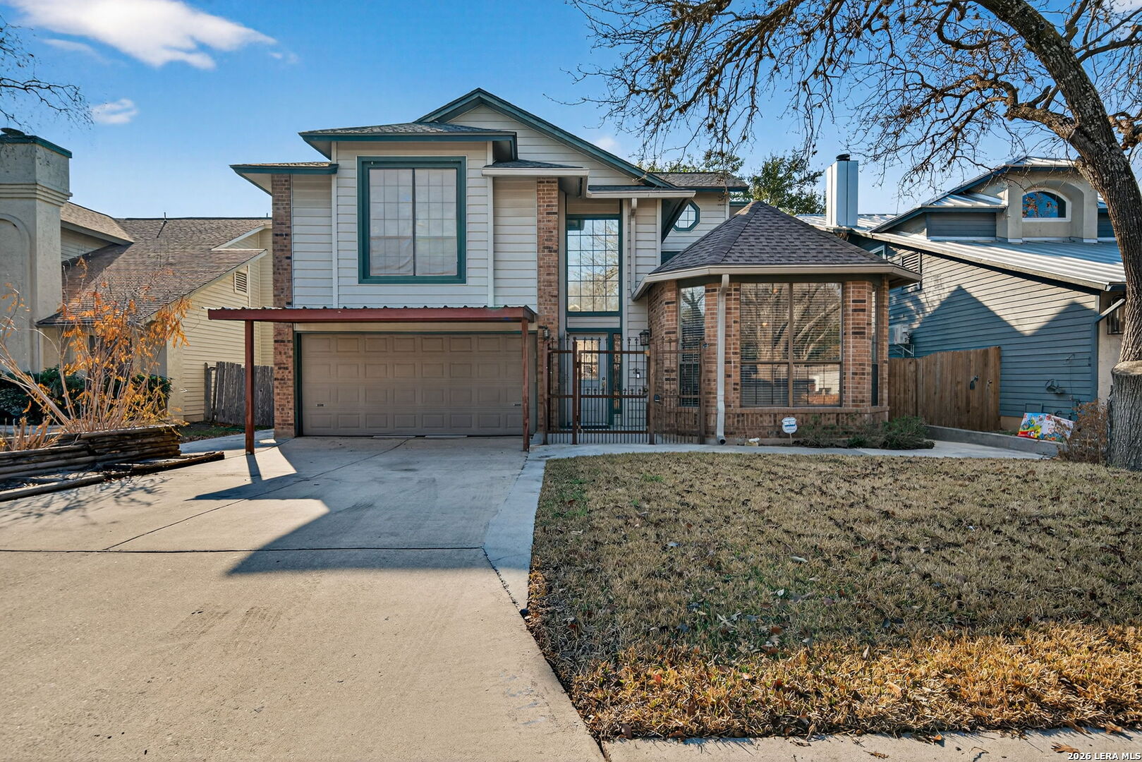 Welcome to this throw back vibe from the 1980's. The two story entry welcomes you into the home. The formal dining greets you as you step into the main living area. The kitchen is tucked away with a spacious breakfast area with bay window. The kitchen boasts updated cabinets, granite countertops, stainless steel appliances and a glass cooktop. The main living area has a soaring ceiling and a fireplace as a focal point. The primary suite is located on the main level and has an en suite bathroom with a double vanity, an oversized shower and whirlpool garden tub. A secondary bedroom is located on the main level and could be used a study/office. The staircase leads you to the loft/game room. Two bedrooms and a full bath complete the second level. The back yard has covered patio and the backs into a greenbelt. The roof was replaced in 2025. This property is within minutes of major highways, shopping, dining and enterrainment.