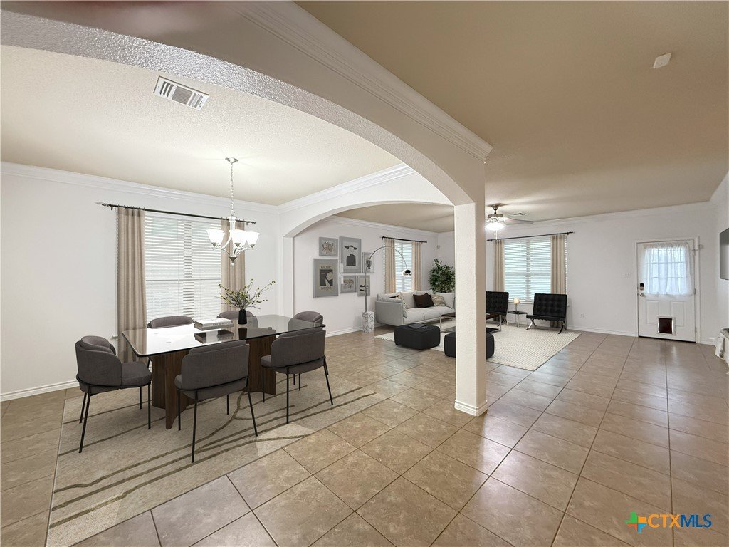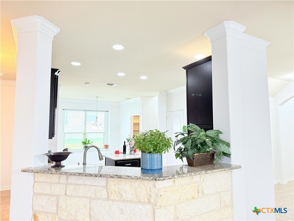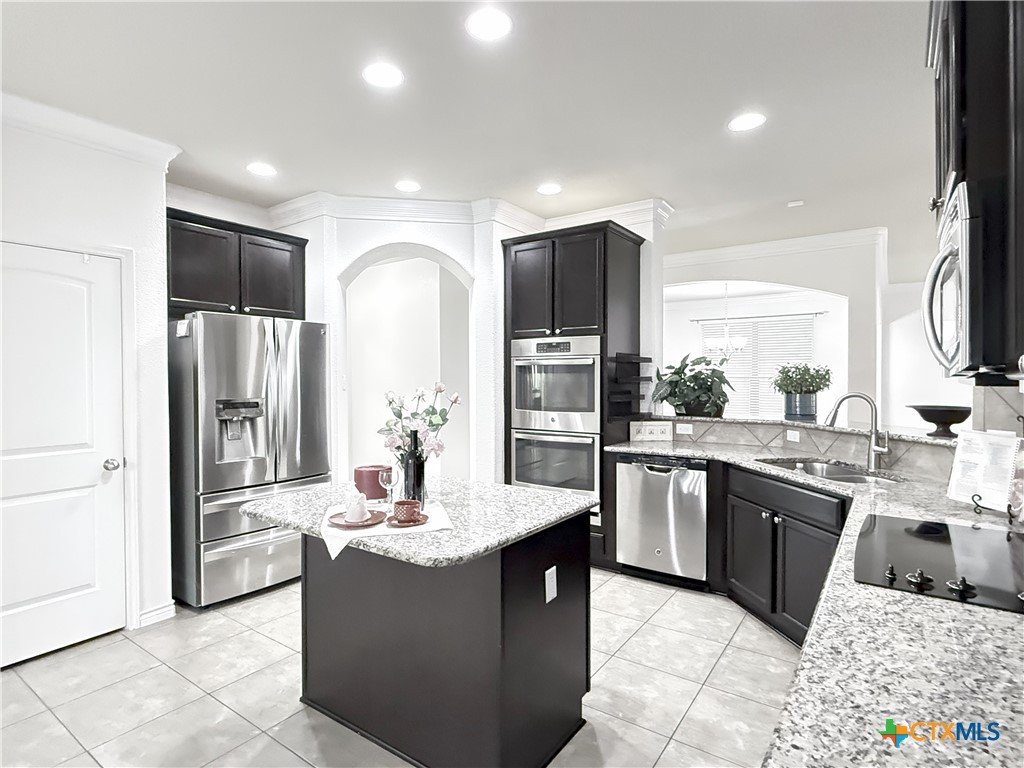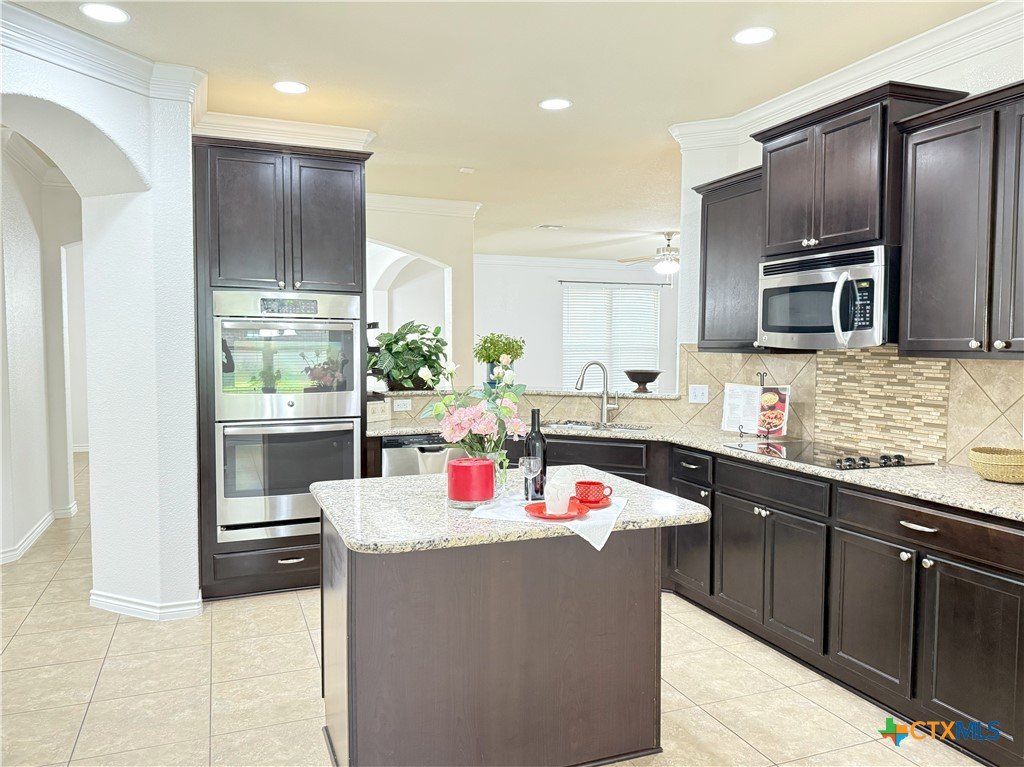 3064 REASONS TO BUY!! Over 3000 sq ft of great living in this impeccably maintained D.R. Horton built home in Tuscany Meadows. Discover the perfect blend of modern style, smart design, & welcomed amenities. The open concept layout enhances space & natural light, boasting 4 bedrooms & 3.5 baths. Curb appeal is derived from colorful landscaping, native stone clad exterior, & arched portico greeting visitors. Inside, the foyer leads past the minor bedroom wing to the heart of the home: the main living areas featuring a formal dining room defined by elliptical arches, a voluminous living area, & a stylish kitchen boasting a bevy of cabinets & granite topped counters, stainless steel appliances, & a spacious island that seamlessly connects to the adjoining breakfast area, ideal for casual gatherings & refined entertaining. The main-level primary suite offers a bay-window with a wide-screen view of the backyard while providing a tranquil escape with a beautifully appointed bath, complete with a deep soaking tub for relaxation & a separate shower. A guest powder room is cleverly tucked into one of the hallways. The interior laundry room links to the dual car sized garage, which is equipped with garage door opener, water softener, overhead storage shelving, and epoxy coated flooring. The switch-back staircase ascends to the second level that houses a large loft/game room, the 4th bedroom with adjoining full-size bath, & an expansive media room complete with a wet-bar, perfect for casual family movie nights or hosting friends. Kick back & relax on the covered patio which has also been upgraded to epoxy coated flooring. The full yard sprinkler system presents a lush lawn, dotted with a nectarine and a plum tree! A storage building stores all yard implementations.