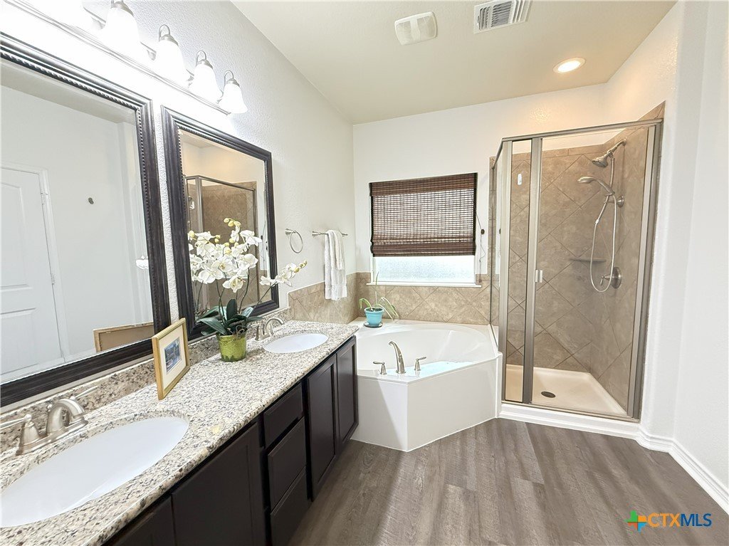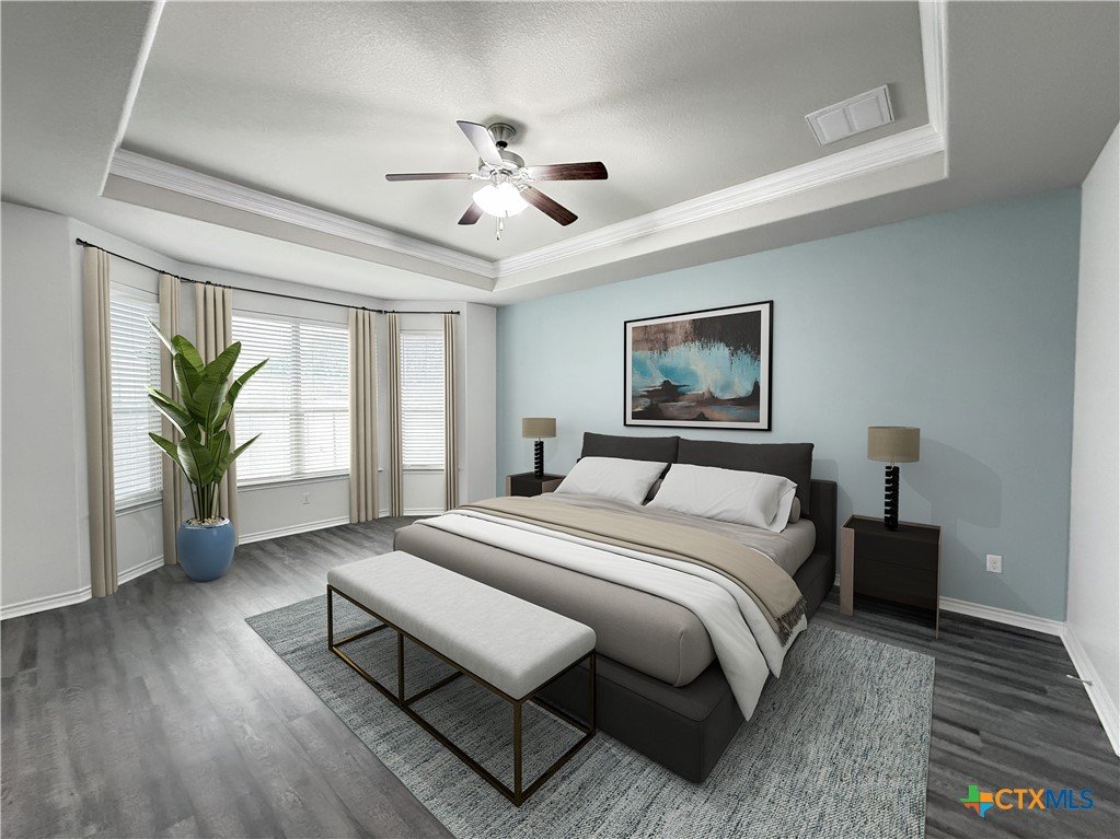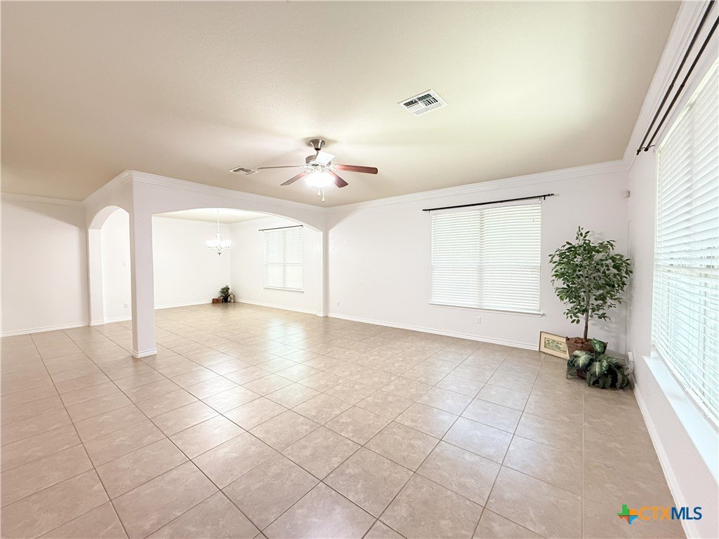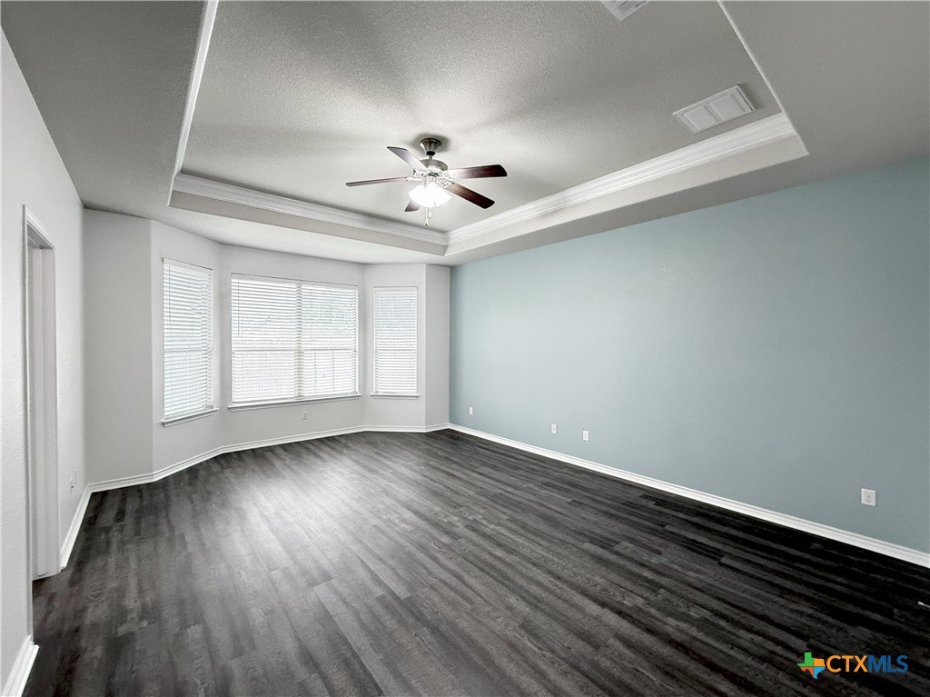 3064 REASONS TO BUY!! Over 3000 sq ft of great living in this impeccably maintained D.R. Horton built home in Tuscany Meadows. Discover the perfect blend of modern style, smart design, & welcomed amenities. The open concept layout enhances space & natural light, boasting 4 bedrooms & 3.5 baths. Curb appeal is derived from colorful landscaping, native stone clad exterior, & arched portico greeting visitors. Inside, the foyer leads past the minor bedroom wing to the heart of the home: the main living areas featuring a formal dining room defined by elliptical arches, a voluminous living area, & a stylish kitchen boasting a bevy of cabinets & granite topped counters, stainless steel appliances, & a spacious island that seamlessly connects to the adjoining breakfast area, ideal for casual gatherings & refined entertaining. The main-level primary suite offers a bay-window with a wide-screen view of the backyard while providing a tranquil escape with a beautifully appointed bath, complete with a deep soaking tub for relaxation & a separate shower. A guest powder room is cleverly tucked into one of the hallways. The interior laundry room links to the dual car sized garage, which is equipped with garage door opener, water softener, overhead storage shelving, and epoxy coated flooring. The switch-back staircase ascends to the second level that houses a large loft/game room, the 4th bedroom with adjoining full-size bath, & an expansive media room complete with a wet-bar, perfect for casual family movie nights or hosting friends. Kick back & relax on the covered patio which has also been upgraded to epoxy coated flooring. The full yard sprinkler system presents a lush lawn, dotted with a nectarine and a plum tree! A storage building stores all yard implementations.