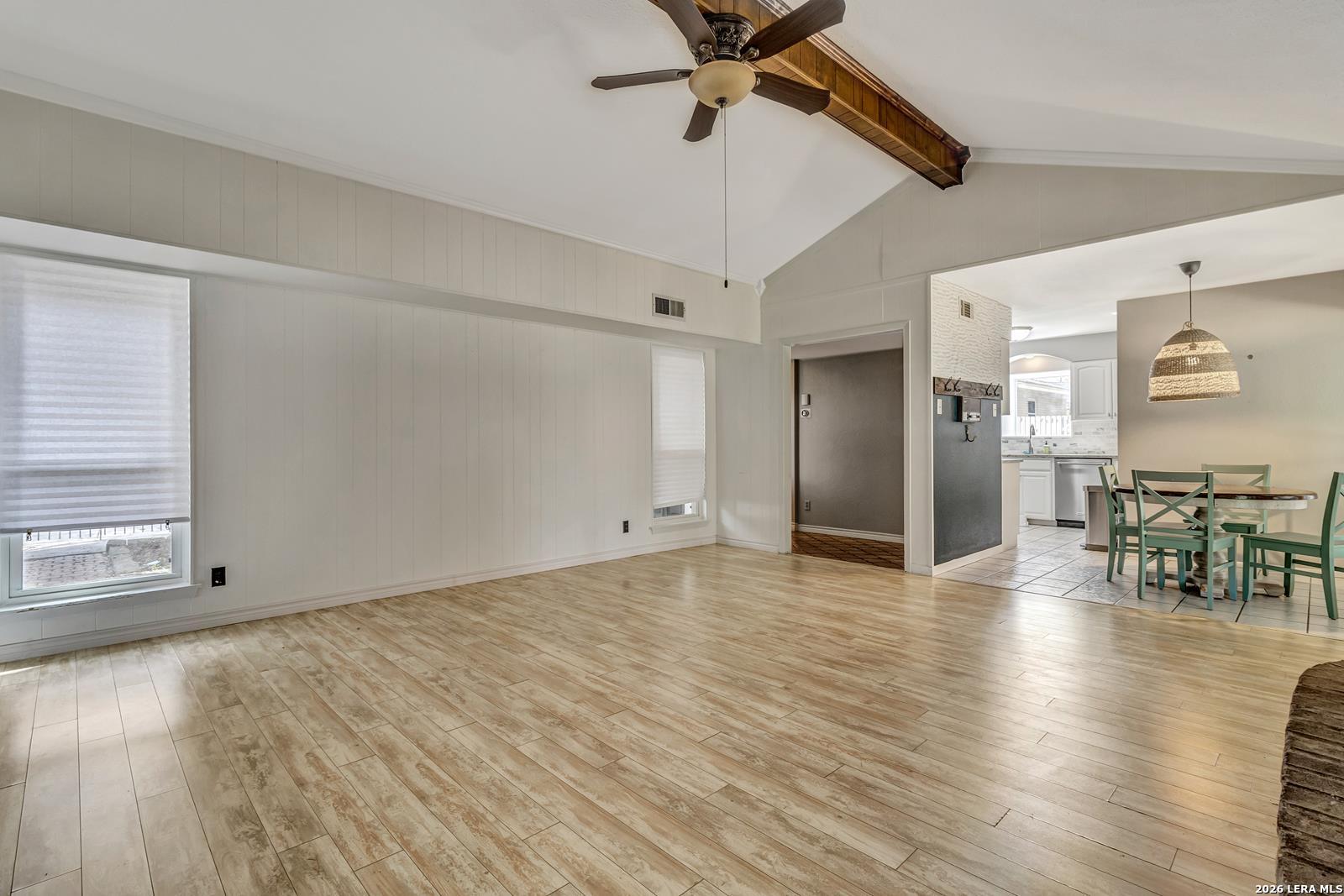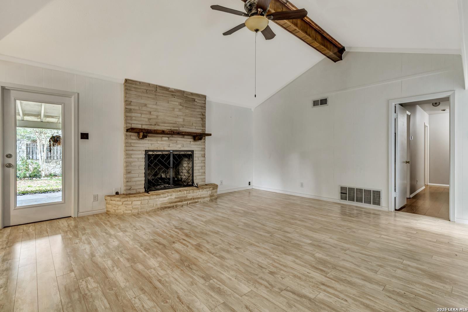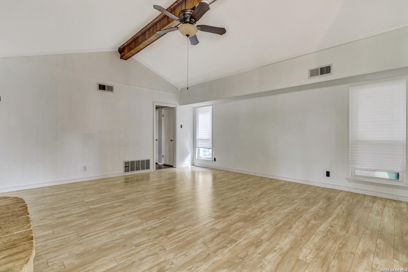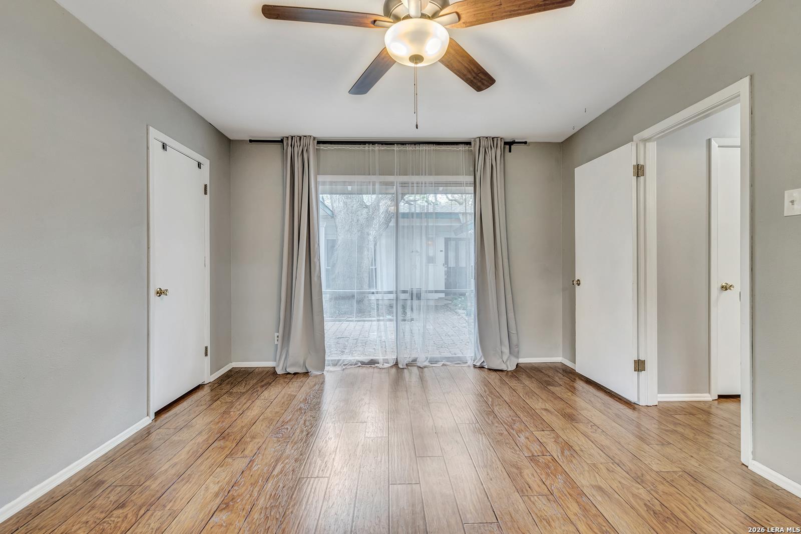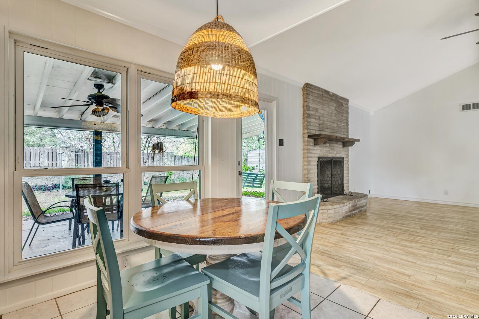 Beautiful Ranch-Style Home in Highly-Desirable Colonies North. Charming Exterior Styling with Swing Garage & Ample Driveway Parking, Gated Courtyard Anchored by HUGE Heritage Oak Tree! Primary Entrance Opens to Formal Living/Dining Space with Vaulted Ceiling. Separate Family Room with Handsome Brick Fireplace & Wood Center Ceiling Beam. Both Living Areas Open to Gourmet Kitchen Featuring Granite Countertops, Stainless Steel Appliances, & Custom Cabinetry. Cozy Breakfast Area Overlooks Covered Back Patio, Adjacent to Full Laundry Room with Washer/Dryer Included, Granite Countertop & Cabinet Space. Spacious Primary Suite with Sliding Doors to Interior Courtyard, Renovated Bathroom with Large Walk-In Shower, & Walk-In Closet. Nicely-Sized Secondary Bedrooms with Wood Flooring & Ceiling Fans. Secondary Bathroom with Tub/Shower & Vintage Styling. Gorgeous Private Backyard with Large Covered Patio & Mature Trees, Perfect for Play & Relaxation. 2-Car Attached Garage with Opener, Sprinkler System, & Water Softener. Northside ISD Schools.