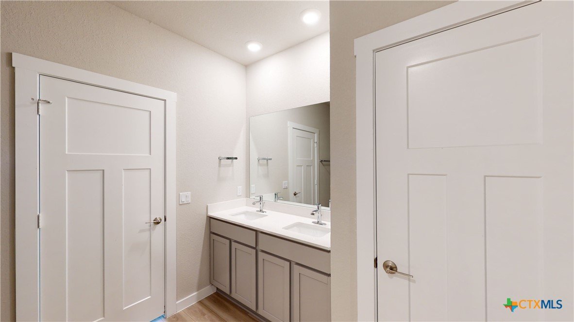 The Florence plan is one of our two-story homes featured in Turnbo Ranch in Killeen, TX. This new home layout offers 3 bedrooms, 2.5 baths, 2 car-garage and approximately 1,858 square feet of comfortable living. Step inside The Florence to find an elongated foyer opening to an open concept kitchen, dining area, and living room. The gourmet kitchen faces the living area so you don't miss a thing while cooking and includes granite counter tops, stainless steel appliances and flat panel birch cabinetry. The downstairs main bedroom is located toward the back of the home and features an attractive attached bathroom with a walk-in shower, granite countertops, a grand walk-in closet and plenty of storage space. The second story includes a versatile loft or game room, all secondary bedrooms, and a second full bathroom. You'll have carpeted floors in every bedroom and tile flooring in your bathrooms and utility room. This home includes our smart home base package, using one central hub that talks to all the devices in your home, you can control the lights, thermostat and locks, all from your cellular device. Contact us today and find your home in Turnbo Ranch!