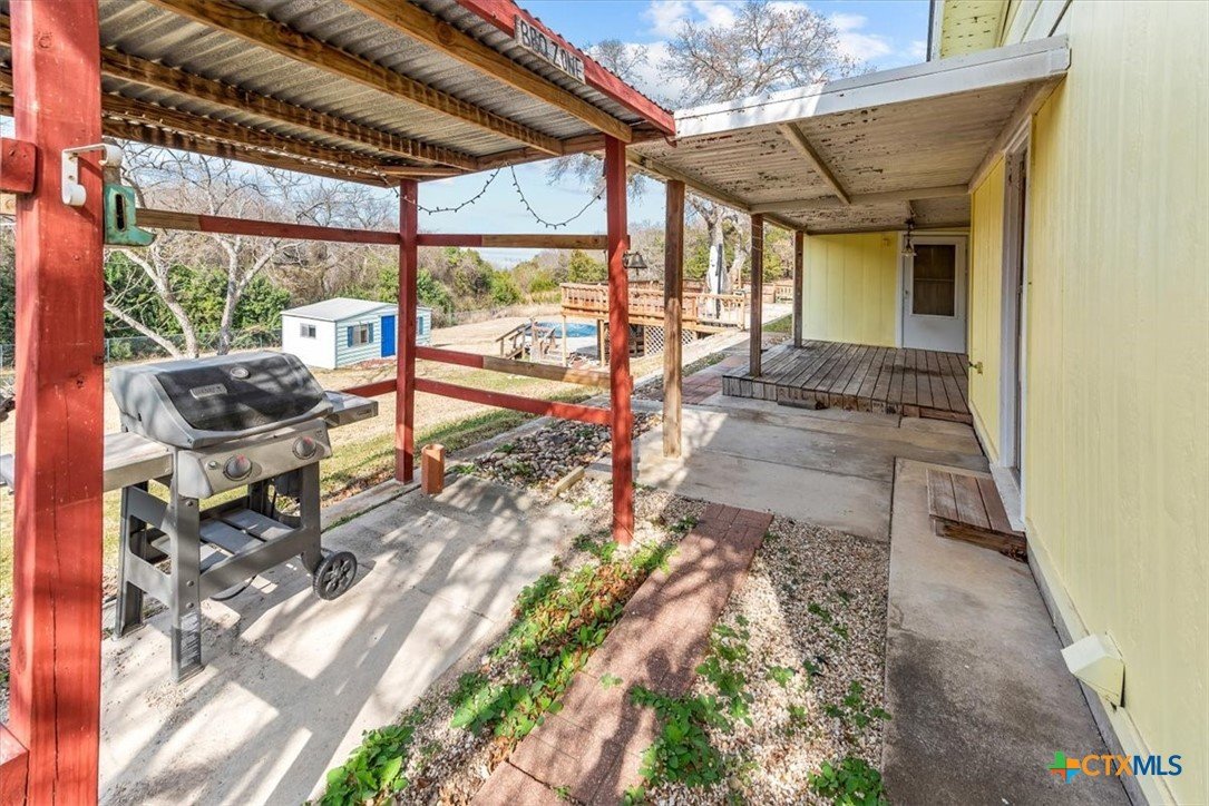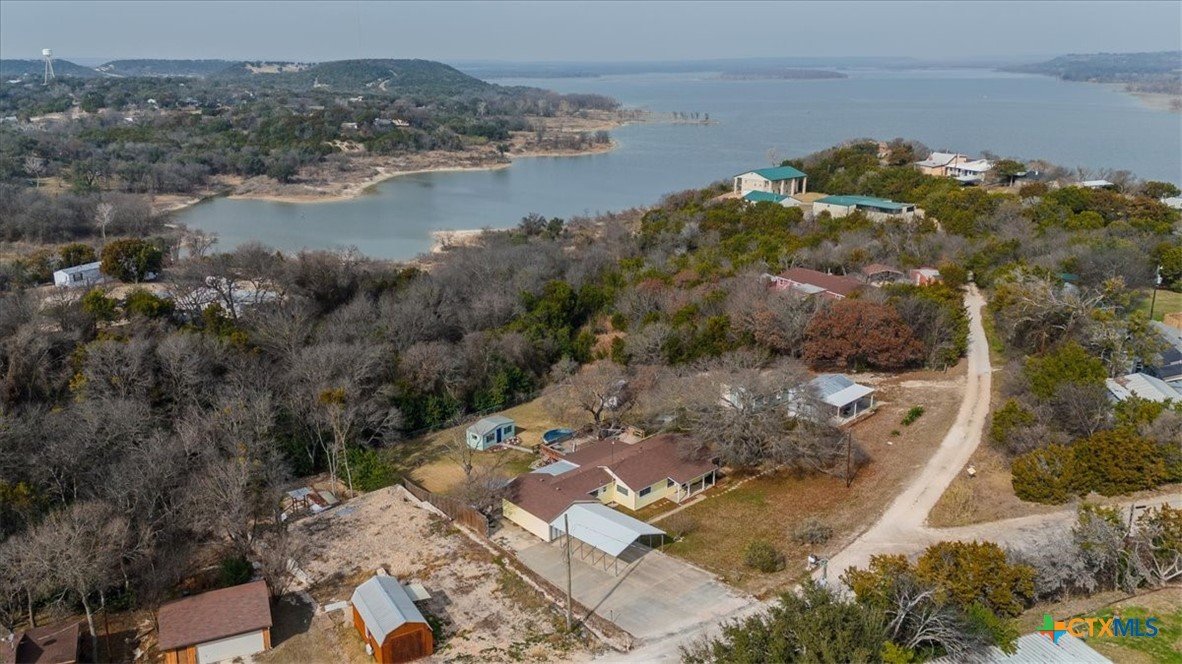 Situated on 1.38 beautifully landscaped acres with a water view, this charming 2-bedroom, 1.5-bath home offers comfort, privacy, and exceptional outdoor living. The 1,434 sq ft residence features mature Spanish oak trees and a fully fenced back yard, creating an ideal setting for relaxation and entertaining. The kitchen is a dream with stainless appliances, granite counter tops, beautiful white cabinets, built-in gas range, and walk-in pantry. There is an additional entertainment room/family room off the kitchen. The master bedroom features his and her closets and a beautiful tile shower/tub combo. Outside: Enjoy the large deck with a water view, cool off in the above-ground pool with pool house, and take advantage of a workshop with electric along with an additional storage building. A versatile extra space offers excellent potential for a guest house or man cave. The sloping landscape has an automatic sprinkler system and water system in place to prevent puddling. There is ample parking with a 2 car garage , oversized carport and RV parking with an electrical hookup making it very convenient to have family gatherings. With easy walk-to-water access, beautiful landscaping, and ample outdoor amenities, this property provides a peaceful retreat with room to enjoy both indoor and outdoor living. There is also a storm shelter. This property would make the perfect forever home or an Airbnb by Beautiful Lake Whitney.