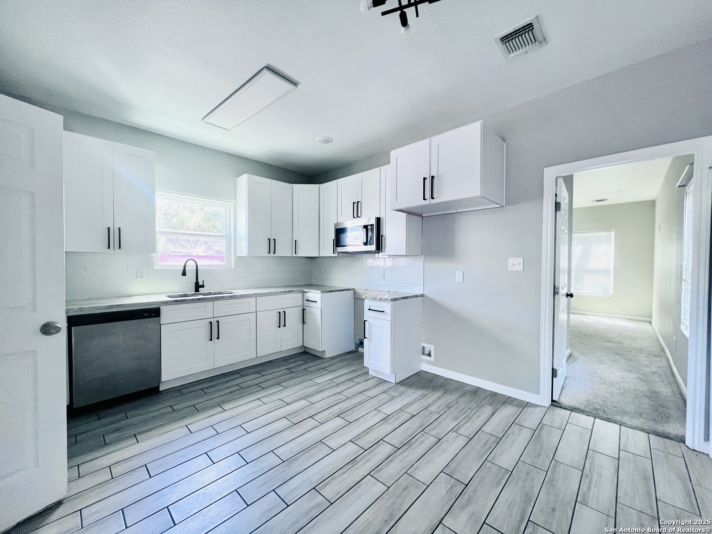Modern 3-Bedroom Home Near Downtown San Antonio Welcome to 335 S San Eduardo Ave, a modern two-story home built in 2021 offering comfort, style, and convenience. Featuring 3 spacious bedrooms and 2.5 baths, this home boasts an open-concept living area filled with natural light - perfect for entertaining or relaxing after a long day. The kitchen shines with granite countertops, custom cabinetry, and stainless steel appliances, while durable tile flooring runs throughout the first floor. Upstairs, you'll find a private primary suite with a walk-in closet and a beautifully finished bath. Enjoy outdoor living in the fenced backyard, ideal for pets, BBQs, or family gatherings. Additional highlights include recessed lighting, an inside utility room, a private driveway, and energy-efficient construction. Located just minutes from Downtown San Antonio, Lackland AFB, and major highways, this home offers great access to shopping, dining, and entertainment. Highlights: 3 Bedrooms | 2.5 Bathrooms | ~1,300 sq. ft. Built in 2021 - move-in ready Granite countertops & modern finishes Fenced backyard with privacy Convenient central location