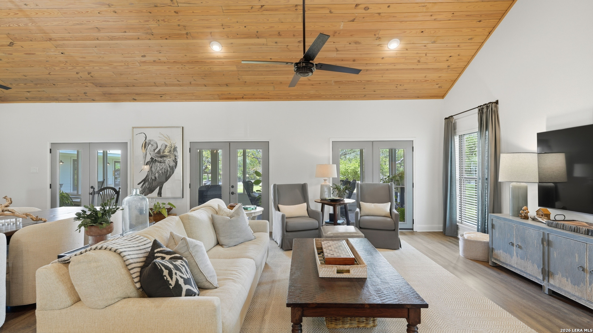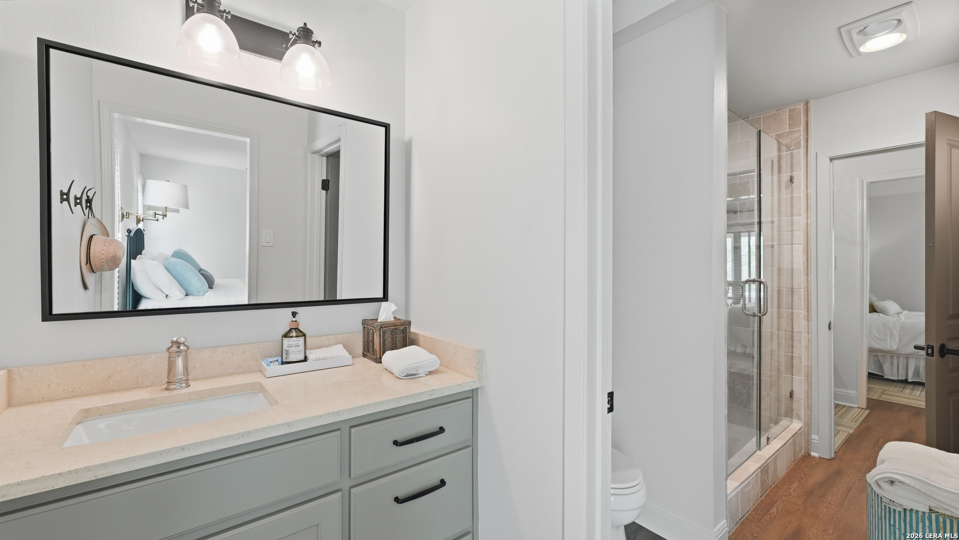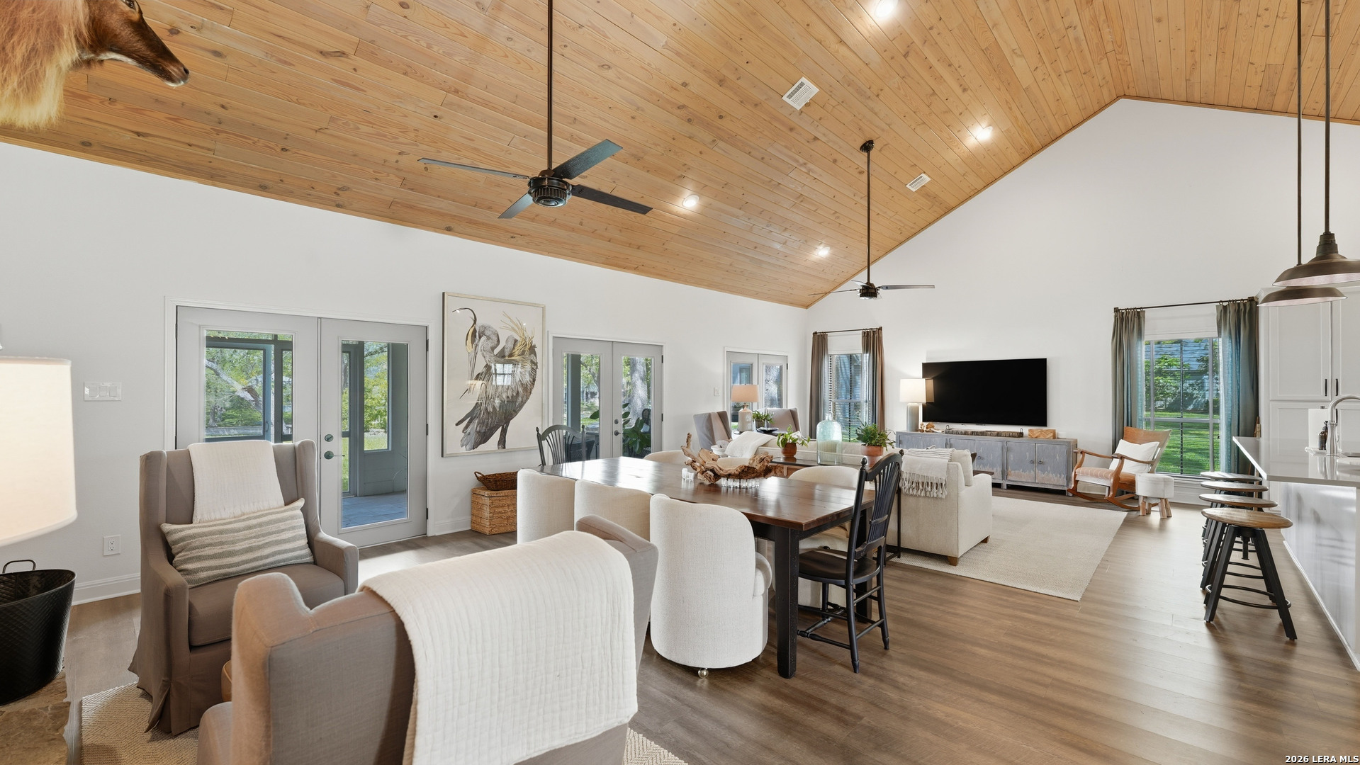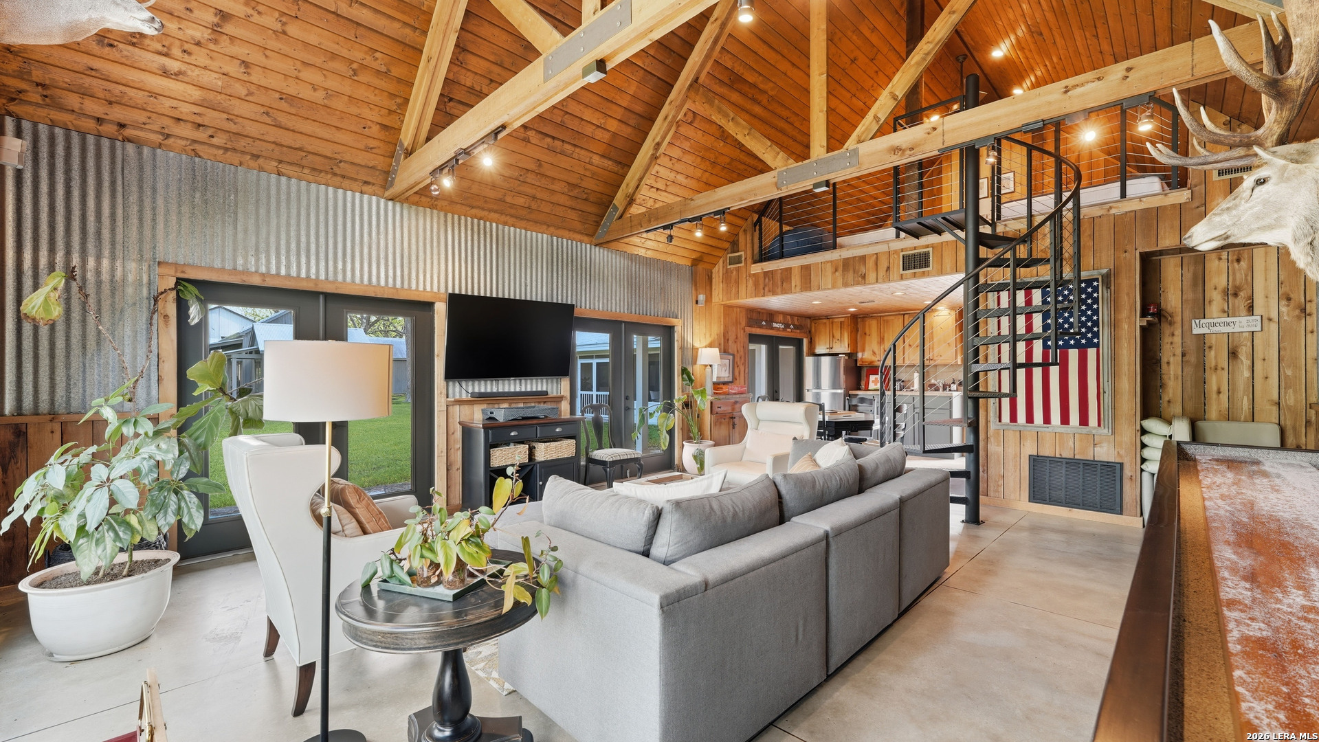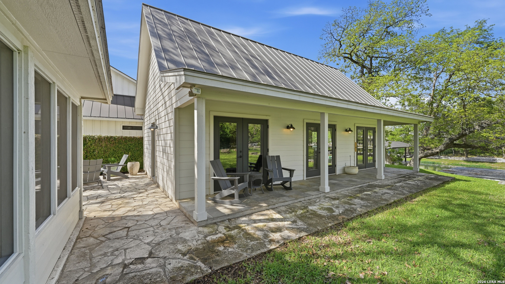 Welcome to the lake life on Lake McQueeney! This stunning lake house with a separate guest house, comes fully furnished and is located off 46, in a small gated neighborhood. The main home is 2316 sq ft, 3 bedrooms, 2.5 baths and recently renovated to include the kitchen and both bathroom renovations, updated flooring, lighting, plumbing fixtures, appliances and more! As you enter, you'll be welcomed into the large living/dining/kitchen with a vaulted shiplap ceiling, beautiful wood burning stone fireplace and 3 sets of patio doors that head out to the screened in back porch which spans the width of the house. Downstairs are 2 guest bedrooms with a jack-n-jill bath, plus a laundry space that leads to the powder bath. Upstairs over looking the main living space, you'll find a large primary suite with views of the lake plus a beautifully renovated master bathroom with an elegant claw foot tub and separate shower. Head back downstairs and out the screened in back porch to a stone patio with a built in BBQ pit and great seating space. The 892 sq ft detached casita is perfect for overflow guests with it's loft style sleeping space, a large game room for game nights, just a perfect flex space with kitchenette and full bath. New standing seam metal roof and Marvin windows in 2019, new HVAC in main house in 2020. Sprinkler system, 100 ft of waterfront on .49 AC. A new double boat house with ski storage in 2025.