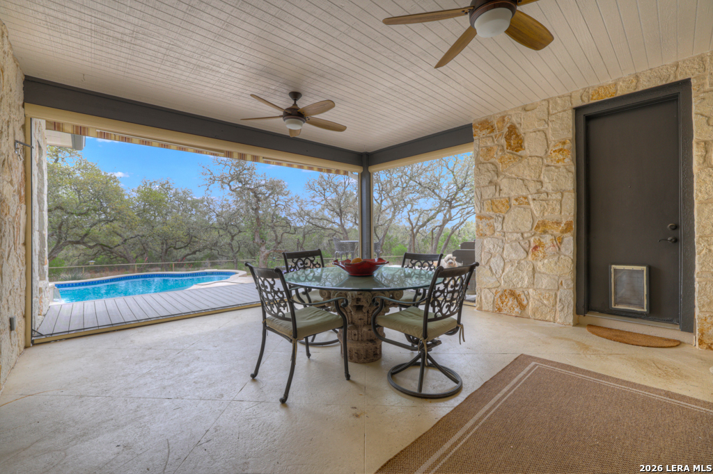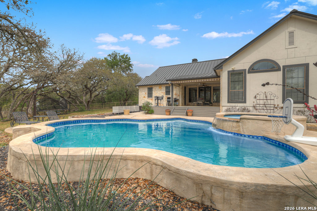 A HIDDEN GEM IN RIVER CHASE: One story home with metal roof, private pool, 2.7 acres on a low-traffic cul-de-sac street. With fenced backyard, and wood and tile flooring, this home is PET APPROVED. Beautiful airy floor plan with high ceiling, rock corner fireplace, 4 bedrooms and 3 full bathrooms, including one bathroom with outdoor access -- perfect when you and guests are enjoying the pool. River Chase is prized for its amazing amenities including a private park on the Guadalupe River, hiking trails, fitness center, community pool and clubhouse, and a plethora of activities to partake in. Great COMAL ISD schools, and just a few minutes from Historic Gruene, shopping, restaurants, music venues, wineries and craft beer stores, Canyon Lake, and so much more.