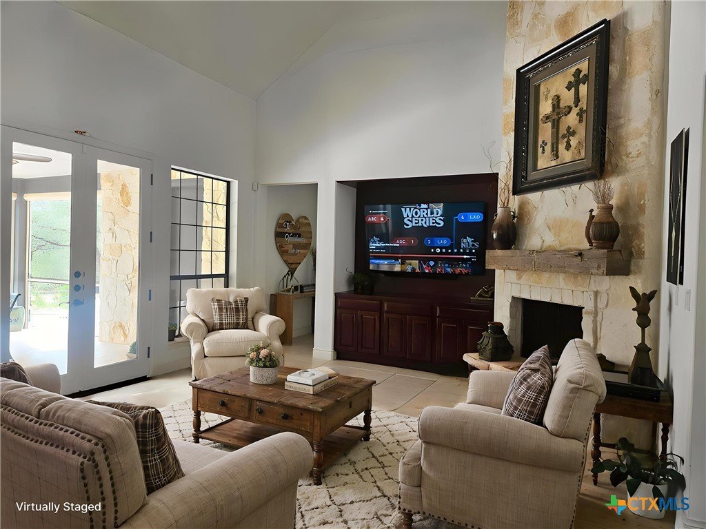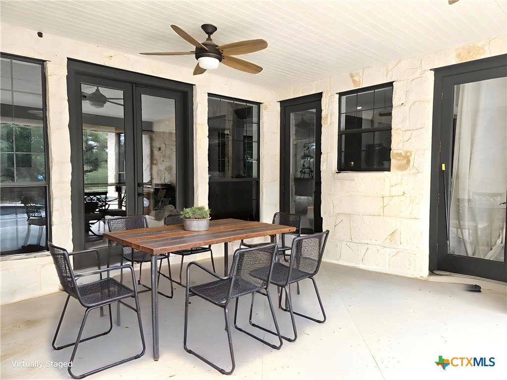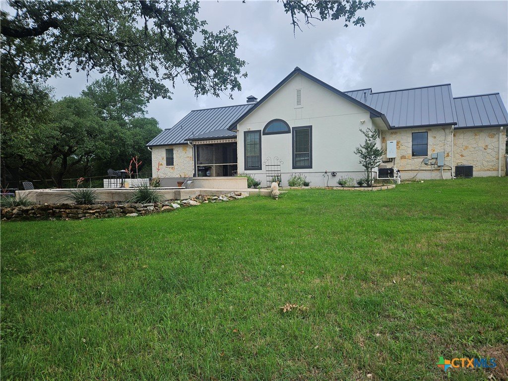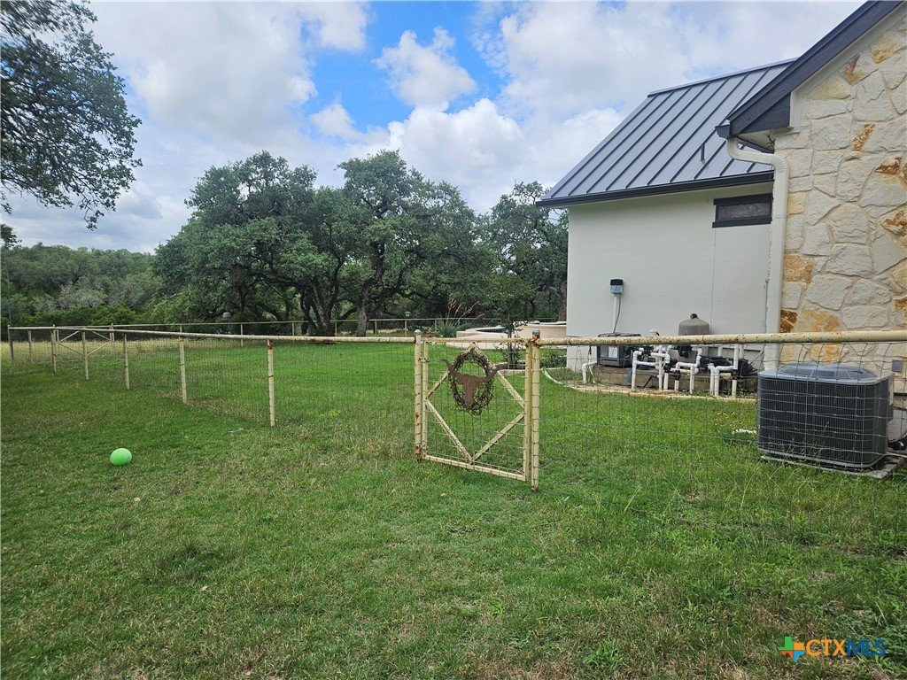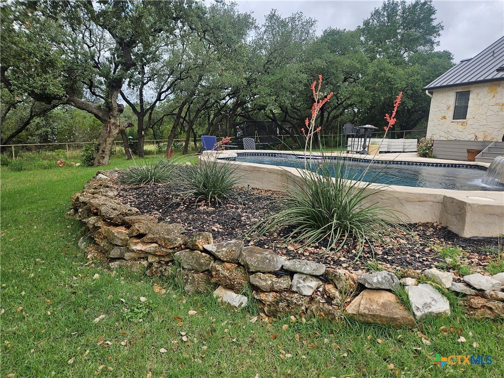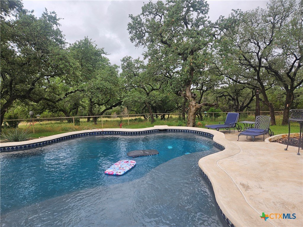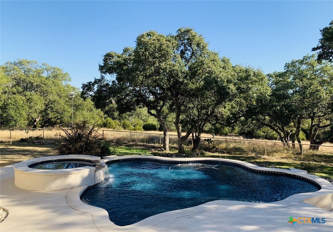 A GEM IN RIVER CHASE: One story home with metal roof, private pool, 2.7 acres on a low-traffic cul-de-sac street. With fenced backyard, and wood and tile flooring, this home is PET APPROVED. Beautiful airy floor plan with high ceiling, rock corner fireplace, 4 bedrooms and 3 full bathrooms, including one bathroom with outdoor access -- perfect when you and guests are enjoying the pool. River Chase is prized for its amazing amenities including a private park on the Guadalupe River, hiking trails, fitness center, community pool and clubhouse, and a plethora of activities to partake in. Great COMAL ISD schools, and just a few minutes from Historic Gruene, shopping, restaurants, music venues, wineries and craft beer stores, Canyon Lake, and so much more.