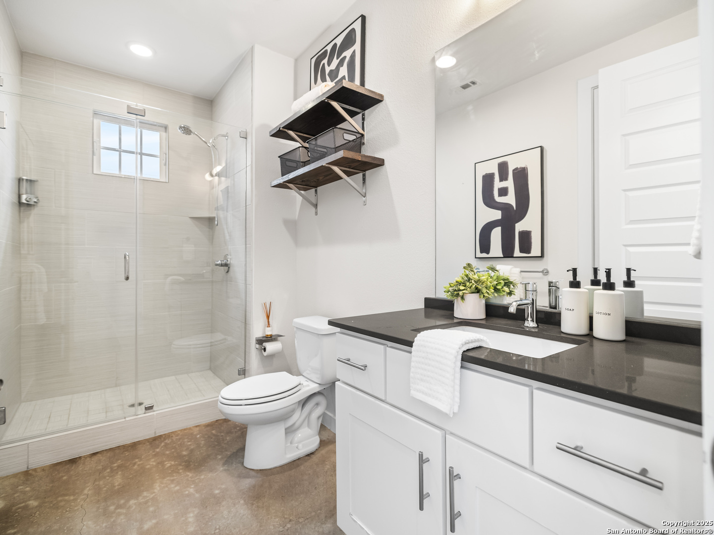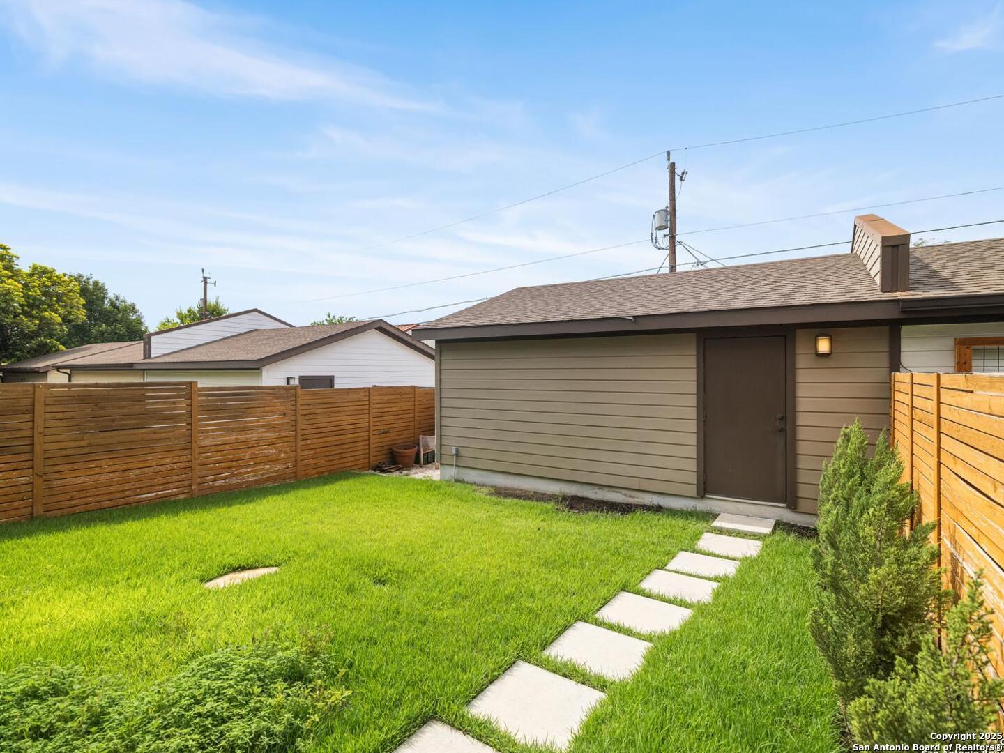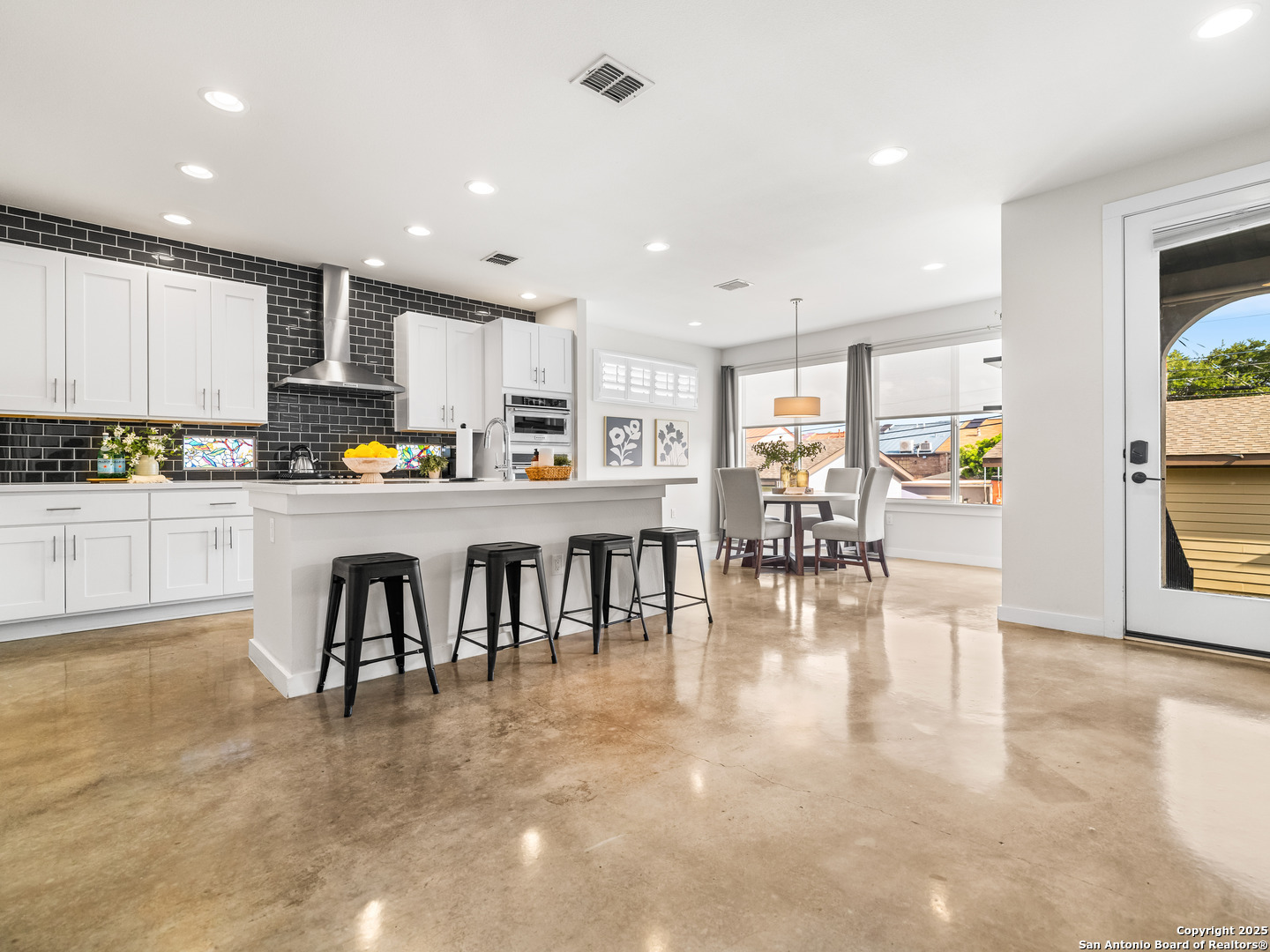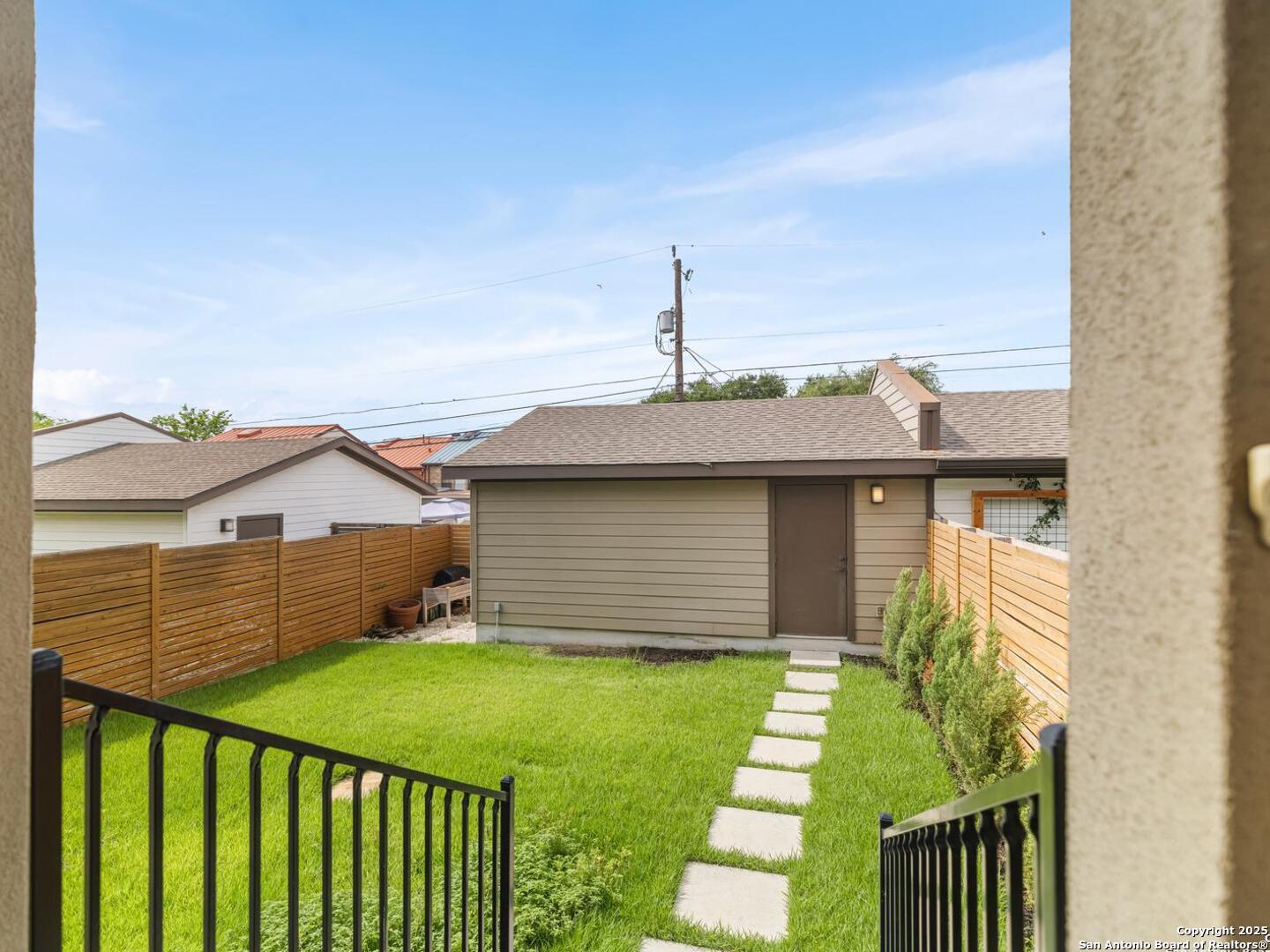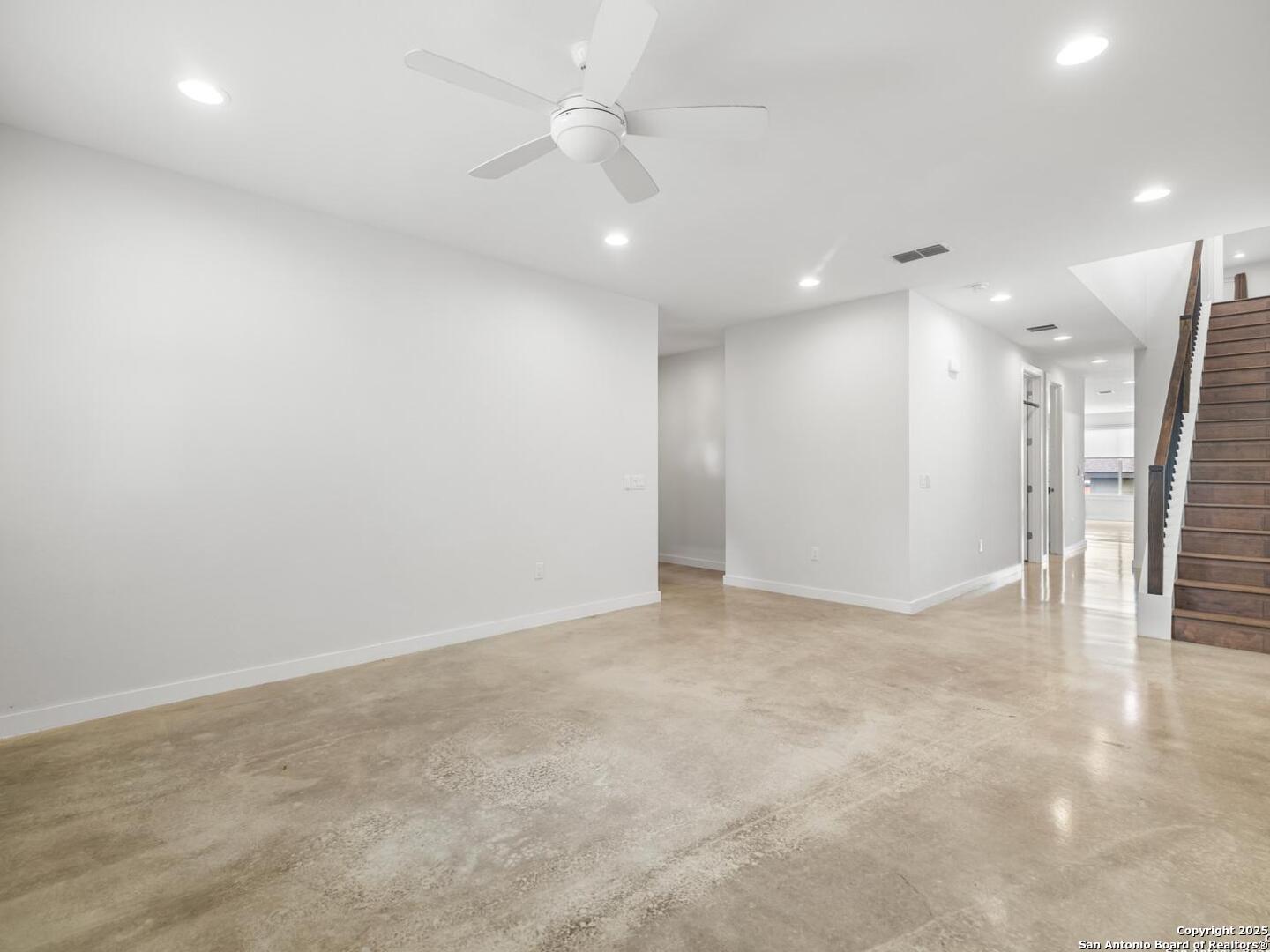Welcome to your modern Spanish eclectic home in a prime San Antonio location, highly desirable Olmos Park! Discover the perfect blend of contemporary comfort and Spanish eclectic charm in this stunning two story home. Featuring 4 spacious bedrooms and 3 full bathrooms, this eco-friendly home is thoughtfully designed for modern living. Step inside to find a bright move in ready interior with stylish cement flooring downstairs and warm wood flooring upstairs. The main floor includes a conveniently located bedroom, with a murphy bed, perfect for guests, or home office, all electic shades and window treatments remain. Fully insulated, including exterior walls, whole house has water filter and softener, pre wired house, 2x6 framing, a smart thermostat, and 10 ft doors. Upstairs, retreat to the private bedrooms and enjoy the sleek, cohesive design throughout. The 2 car garage adds plenty of storage, and a sun shade to add comfort while working in the garage. Front yard features a apricot and a pecan tree, while the front and back yard are fully maintained every 2 wks by the HOA, along with the fence. Enjoy the unbeatable location, just minutes from downtown, with easy access to shopping, dining, and a grocery store within walking distance. Don't miss this opportunity to own a unique and beautifully maintained home in one of San Antonio's most accessible neighborhoods. This is the largest floor plan in the HOA!!