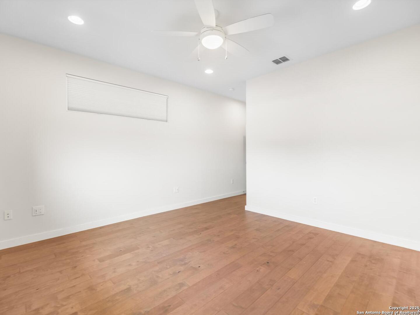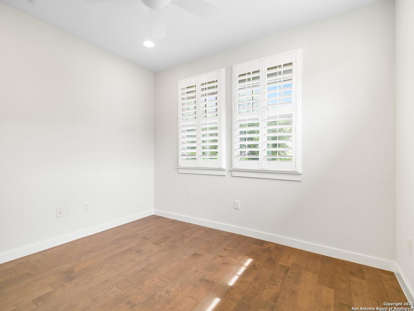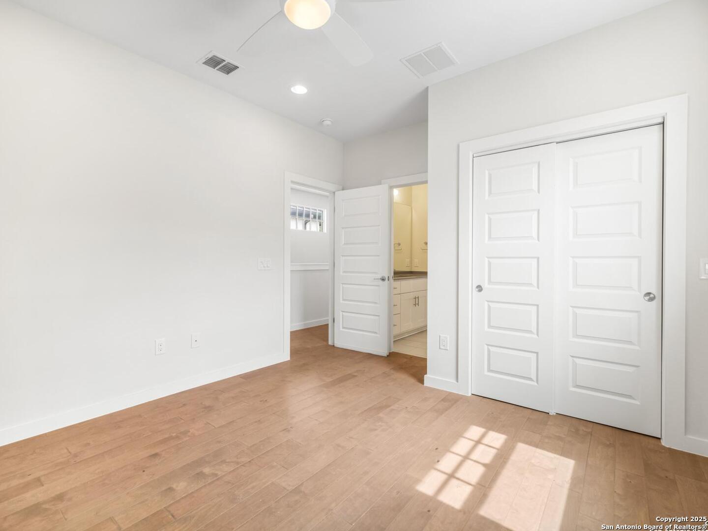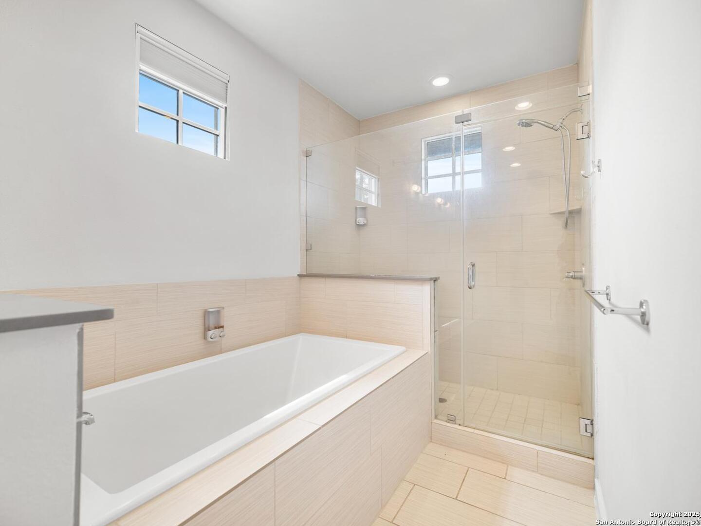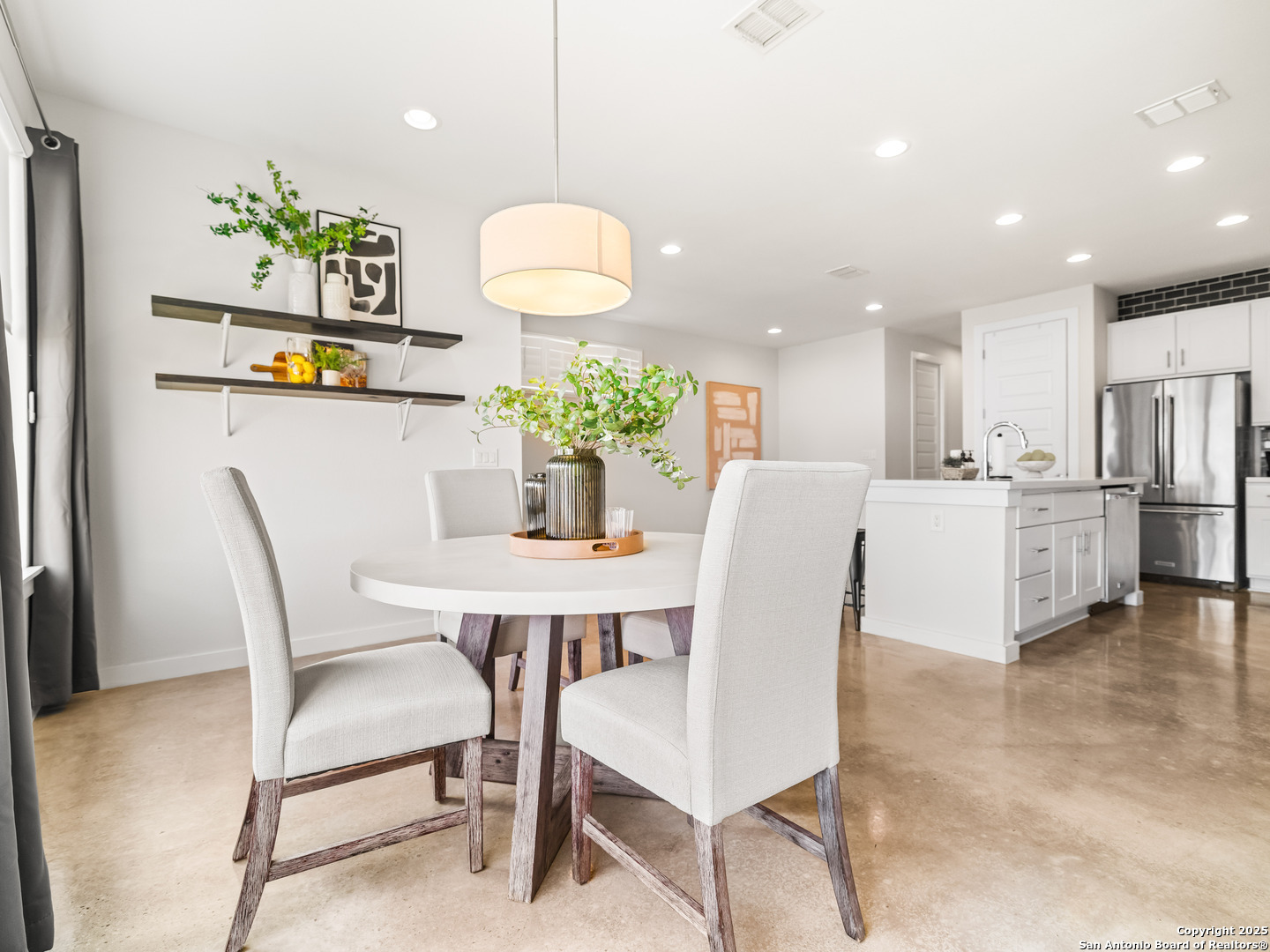 Welcome to your modern Spanish eclectic home in a prime San Antonio location, highly desirable Olmos Park! Discover the perfect blend of contemporary comfort and Spanish eclectic charm in this stunning two story home. Featuring 4 spacious bedrooms and 3 full bathrooms, this eco-friendly home is thoughtfully designed for modern living. Step inside to find a bright move in ready interior with stylish cement flooring downstairs and warm wood flooring upstairs. The main floor includes a conveniently located bedroom, with a murphy bed, perfect for guests, or home office, all electic shades and window treatments remain. Fully insulated, including exterior walls, whole house has water filter and softener, pre wired house, 2x6 framing, a smart thermostat, and 10 ft doors. Upstairs, retreat to the private bedrooms and enjoy the sleek, cohesive design throughout. The 2 car garage adds plenty of storage, and a sun shade to add comfort while working in the garage. Front yard features a apricot and a pecan tree, while the front and back yard are fully maintained every 2 wks by the HOA, along with the fence. Enjoy the unbeatable location, just minutes from downtown, with easy access to shopping, dining, and a grocery store within walking distance. Don't miss this opportunity to own a unique and beautifully maintained home in one of San Antonio's most accessible neighborhoods. This is the largest floor plan in the HOA!!