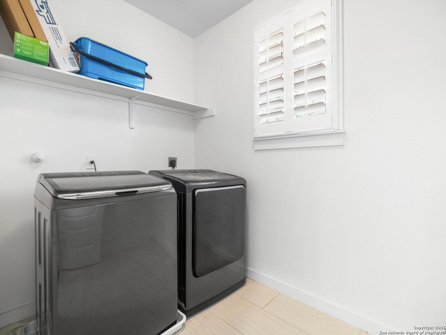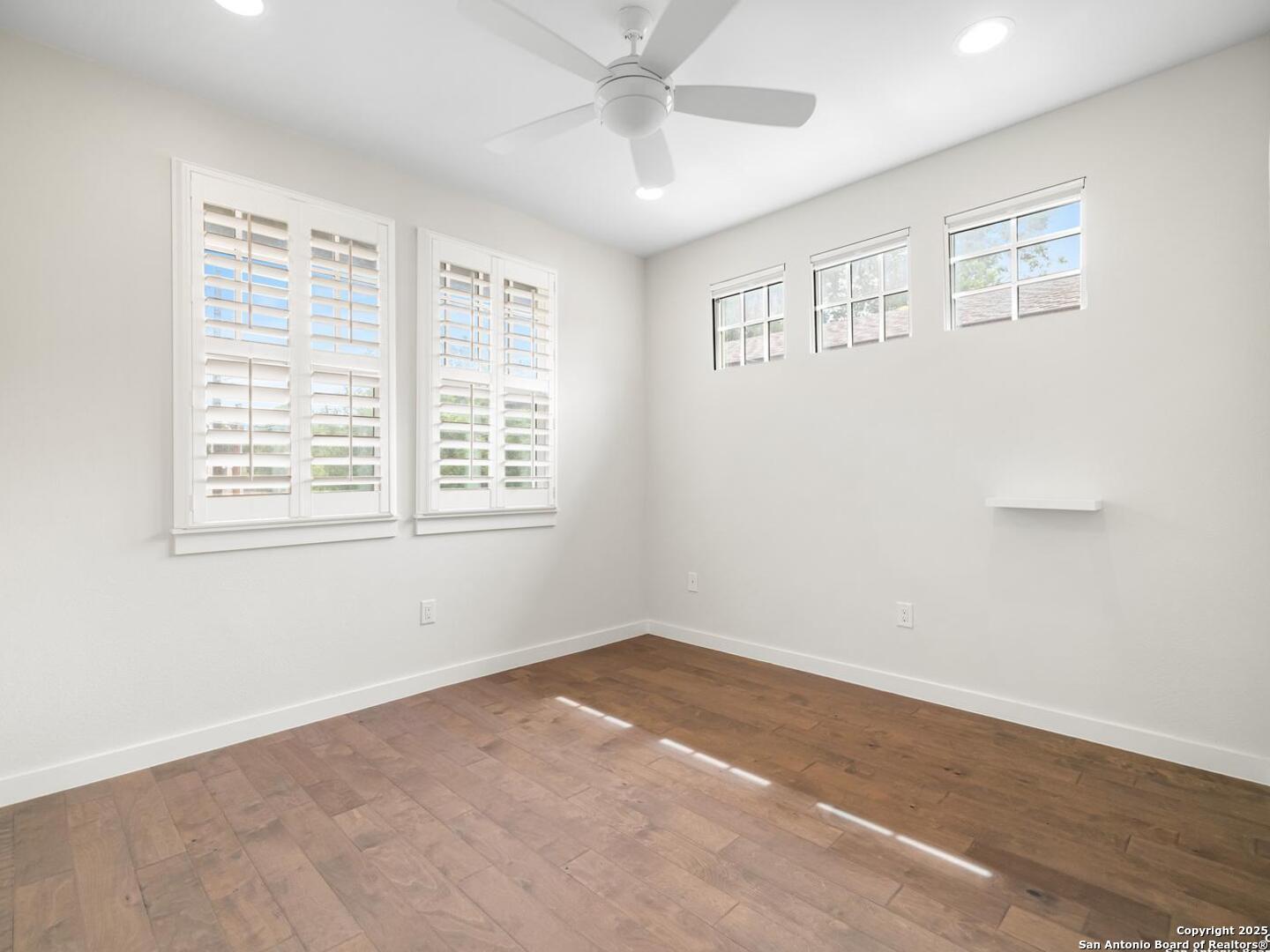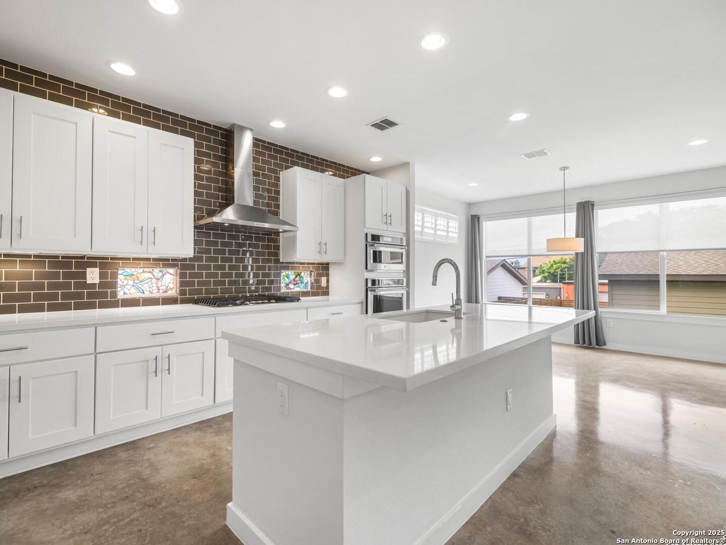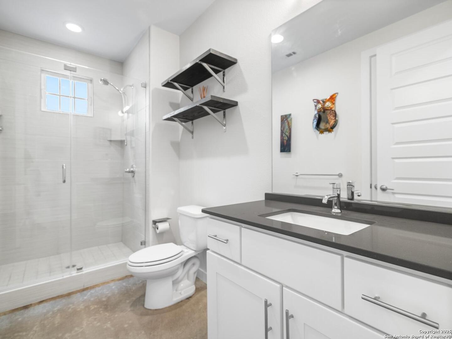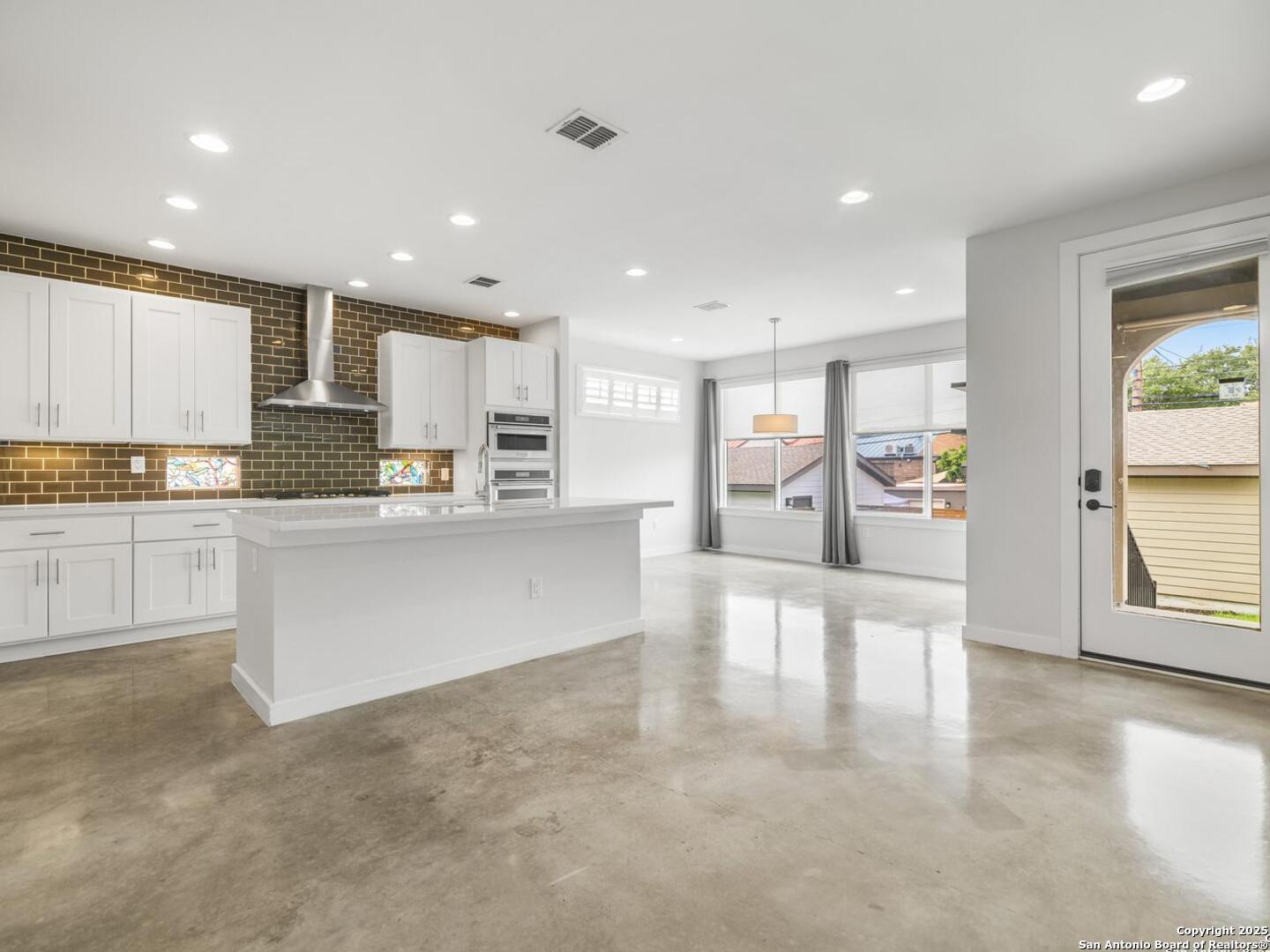 Welcome to your modern Spanish eclectic home in a prime San Antonio location, highly desirable Olmos Park! Discover the perfect blend of contemporary comfort and Spanish eclectic charm in this stunning two story home. Featuring 4 spacious bedrooms and 3 full bathrooms, this eco-friendly home is thoughtfully designed for modern living. Step inside to find a bright move in ready interior with stylish cement flooring downstairs and warm wood flooring upstairs. The main floor includes a conveniently located bedroom, with a murphy bed, perfect for guests, or home office, all electic shades and window treatments remain. Fully insulated, including exterior walls, whole house has water filter and softener, pre wired house, 2x6 framing, a smart thermostat, and 10 ft doors. Upstairs, retreat to the private bedrooms and enjoy the sleek, cohesive design throughout. The 2 car garage adds plenty of storage, and a sun shade to add comfort while working in the garage. Front yard features a apricot and a pecan tree, while the front and back yard are fully maintained every 2 wks by the HOA, along with the fence. Enjoy the unbeatable location, just minutes from downtown, with easy access to shopping, dining, and a grocery store within walking distance. Don't miss this opportunity to own a unique and beautifully maintained home in one of San Antonio's most accessible neighborhoods. This is the largest floor plan in the HOA!!