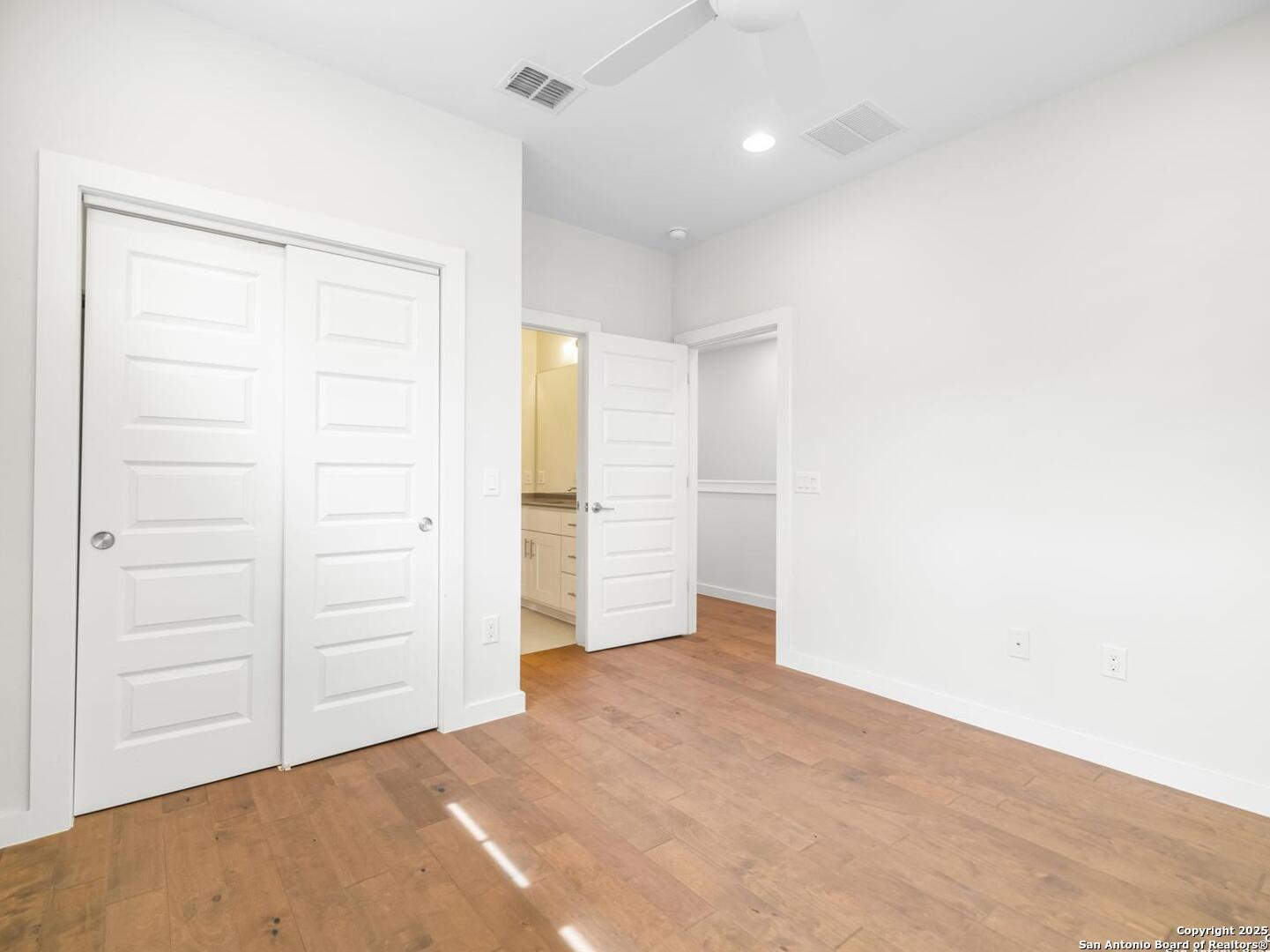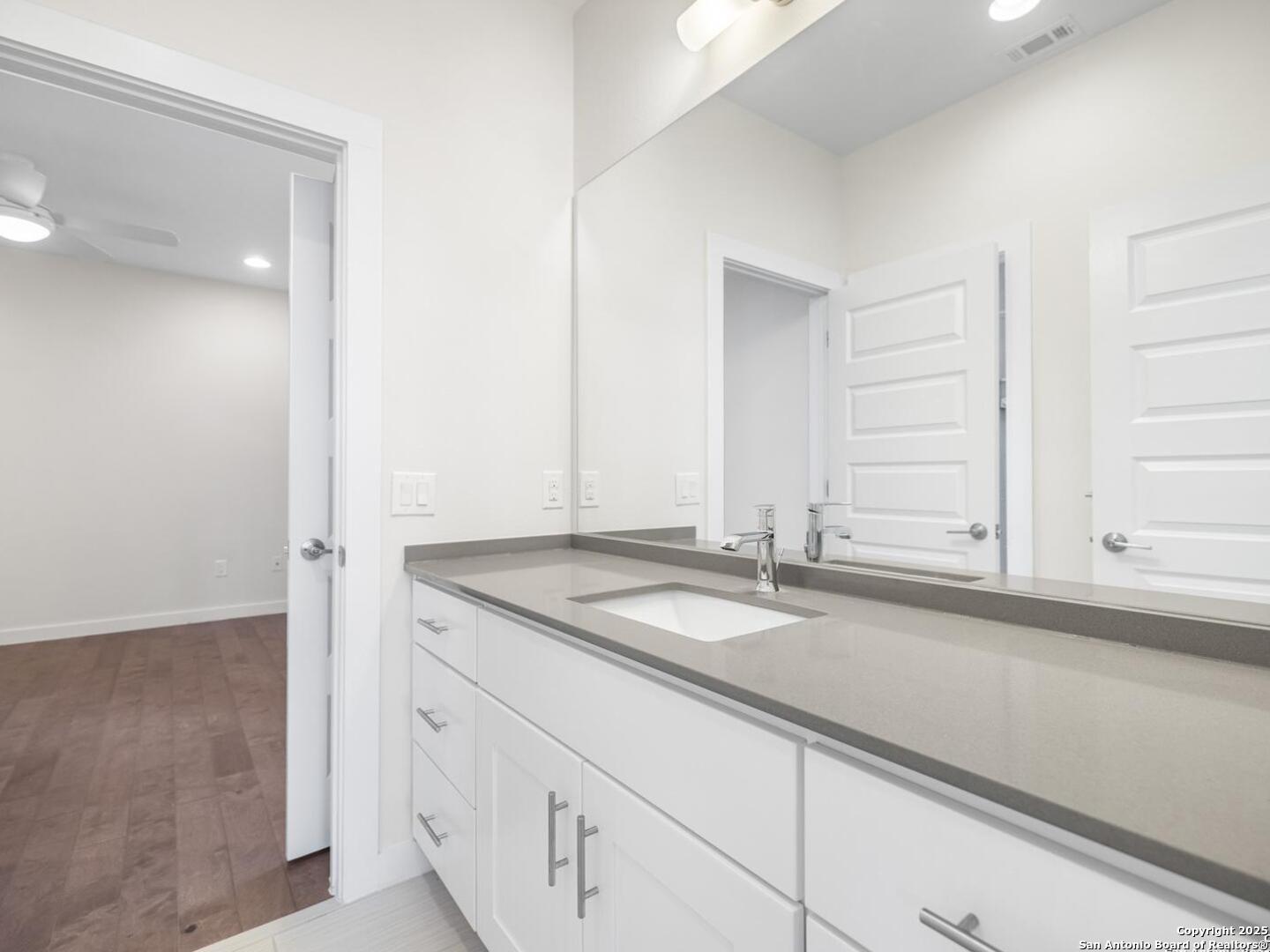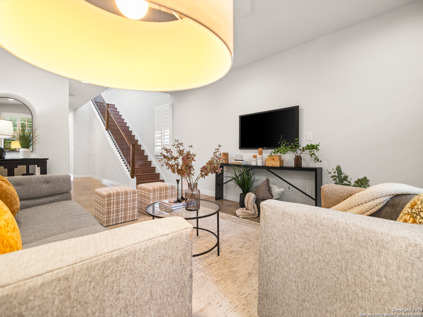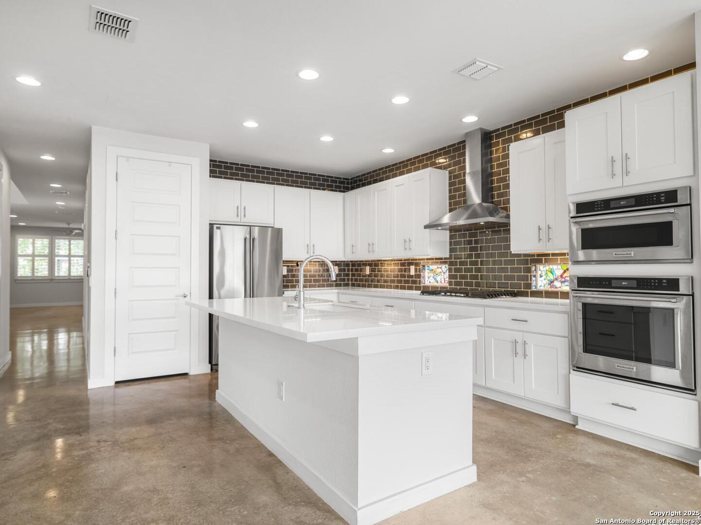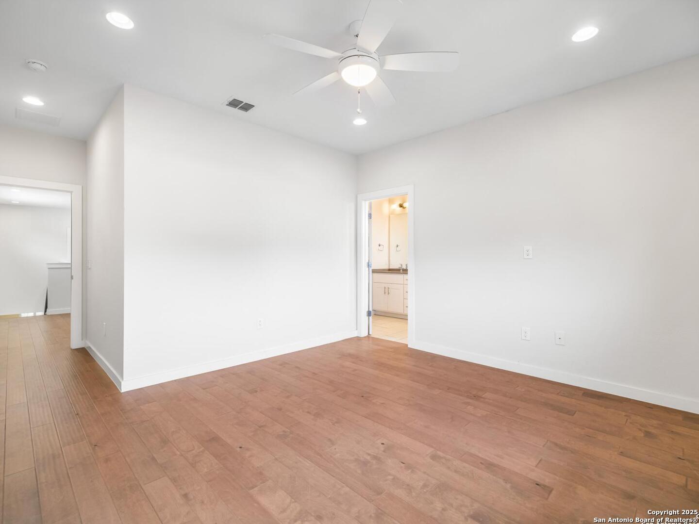 Welcome to your modern Spanish eclectic home in a prime San Antonio location, highly desirable Olmos Park! Discover the perfect blend of contemporary comfort and Spanish eclectic charm in this stunning two story home. Featuring 4 spacious bedrooms and 3 full bathrooms, this eco-friendly home is thoughtfully designed for modern living. Step inside to find a bright move in ready interior with stylish cement flooring downstairs and warm wood flooring upstairs. The main floor includes a conveniently located bedroom, with a murphy bed, perfect for guests, or home office, all electic shades and window treatments remain. Fully insulated, including exterior walls, whole house has water filter and softener, pre wired house, 2x6 framing, a smart thermostat, and 10 ft doors. Upstairs, retreat to the private bedrooms and enjoy the sleek, cohesive design throughout. The 2 car garage adds plenty of storage, and a sun shade to add comfort while working in the garage. Front yard features a apricot and a pecan tree, while the front and back yard are fully maintained every 2 wks by the HOA, along with the fence. Enjoy the unbeatable location, just minutes from downtown, with easy access to shopping, dining, and a grocery store within walking distance. Don't miss this opportunity to own a unique and beautifully maintained home in one of San Antonio's most accessible neighborhoods. This is the largest floor plan in the HOA!!
