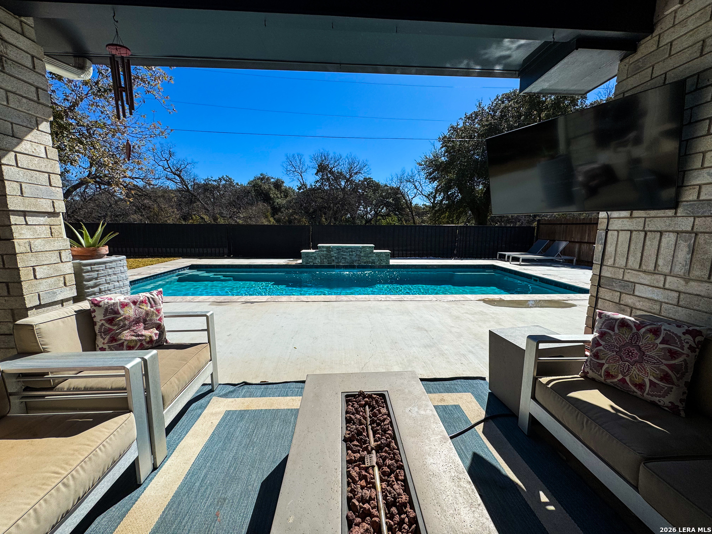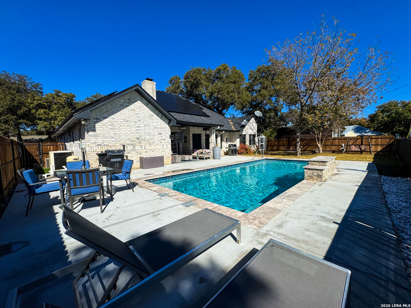 Nestled at the end of a quiet cul-de-sac in the desirable Oaks area of Fort Clark Springs, this 4-bedroom, 3-bathroom home offers an exceptional blend of comfort, privacy, and modern amenities. As you step inside, you're welcomed by an open floor plan illuminated by recessed lighting. The split-bedroom layout ensures privacy, with a spacious master suite featuring a whirlpool tub, a separate shower, and ample room for relaxation. All the cabinetes in the on-suite have been resurfaced and repainted. The bright and airy kitchen boasts abundant cabinet space, a walk-in pantry, a breakfast bar, and a cozy breakfast nook overlooking the backyard oasis. All kitchen cabinets have been resurfaced and repainted. The tray ceilings in the living and dining areas enhance the home's open, airy feel. On the opposite side of the home, you'll find three additional bedrooms-two sharing a convenient bathroom in between while the third has immediate access to another bathroom just outside its door. Step into your backyard retreat, where a covered seating area invites you to unwind while listening to the gentle waterfall flowing into your brand-new in-ground pool. The pool features a heating option, ambient lighting, and plenty of surrounding space for lounge chairs, a fire pit, and summer gatherings. Enjoy the serenity of minimal traffic and the natural beauty of the Fort Clark spring, which flows just beyond your backyard. This home offers the perfect blend of tranquility and modern living-don't miss your chance to make it yours! **Price reflects the Solar Panels being paid of the by the seller. Selling willing to negotiate the listing price with the buyer assuming the Solar Panel pay-off.