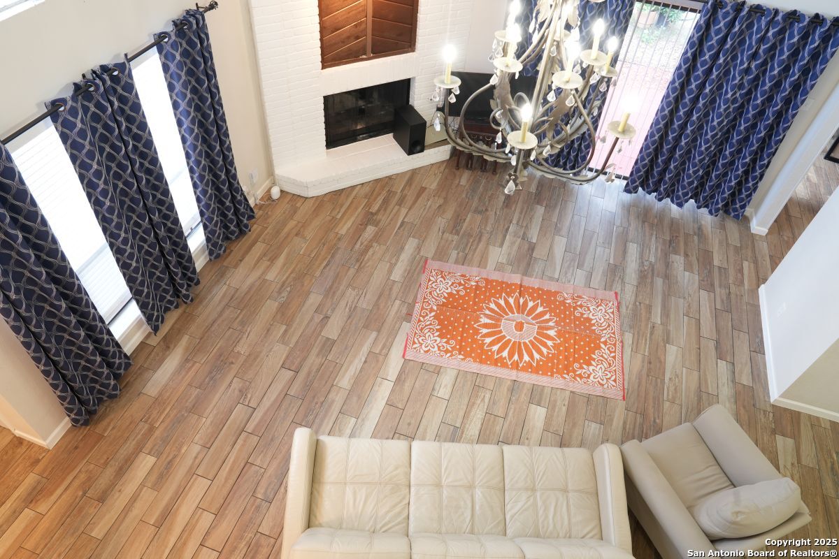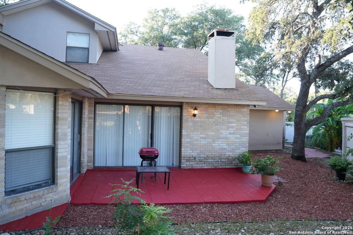 Beautiful two story home with no HOA and full of upgrades located in the most desirable Summit community. Home is nested in a very private Cul-de-Sac with easy access to I 10, Medical Center, UTSA,USAA and great shopping locations. Home boasts high cathedral ceilings with a beautiful chandelier and oversize exterior fixed glass windows that allows tons of natural light. Home is surrounded by mature trees, back patio , plenty of space for gardening, and and a very private reinforced fence for maximum enjoyment and full privacy. A corner home with no neighbor in the back area creates a perfect and peaceful paradise. Upgrades includes 2020 huge remodeling to include installation of new water heater (2020), wood floor, porcelain tile, iron rails, stainless steel kitchen appliances including refrigerator, new dishwasher & microwave (2025), new AC & Heating System installed in November 2021, light fixtures, plumbing fixtures, two garage door openers, vaulted ceilings, 2" blinds, ceiling fans, fireplace, and much more. ADT Security System with 3 cameras all installed in 2020. The upstairs, two bedrooms and loft that are very open and elegant. A must see!