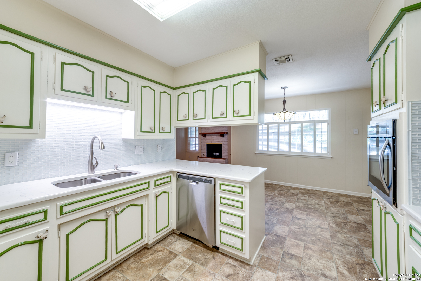 Welcome to this charming traditional home located on a corner lot for maximum yard space and within minutes to some of San Antonio's most noted attractions. This home boasts a formal sitting and dining room just off the entry. Soaring vaulted ceilings and a wood burning fireplace welcome you into the family room creating a warm and inviting feel. With seamless connection to the kitchen and breakfast nook, this living space is easily the heart of the home. The primary bedroom features an en suite with a stan