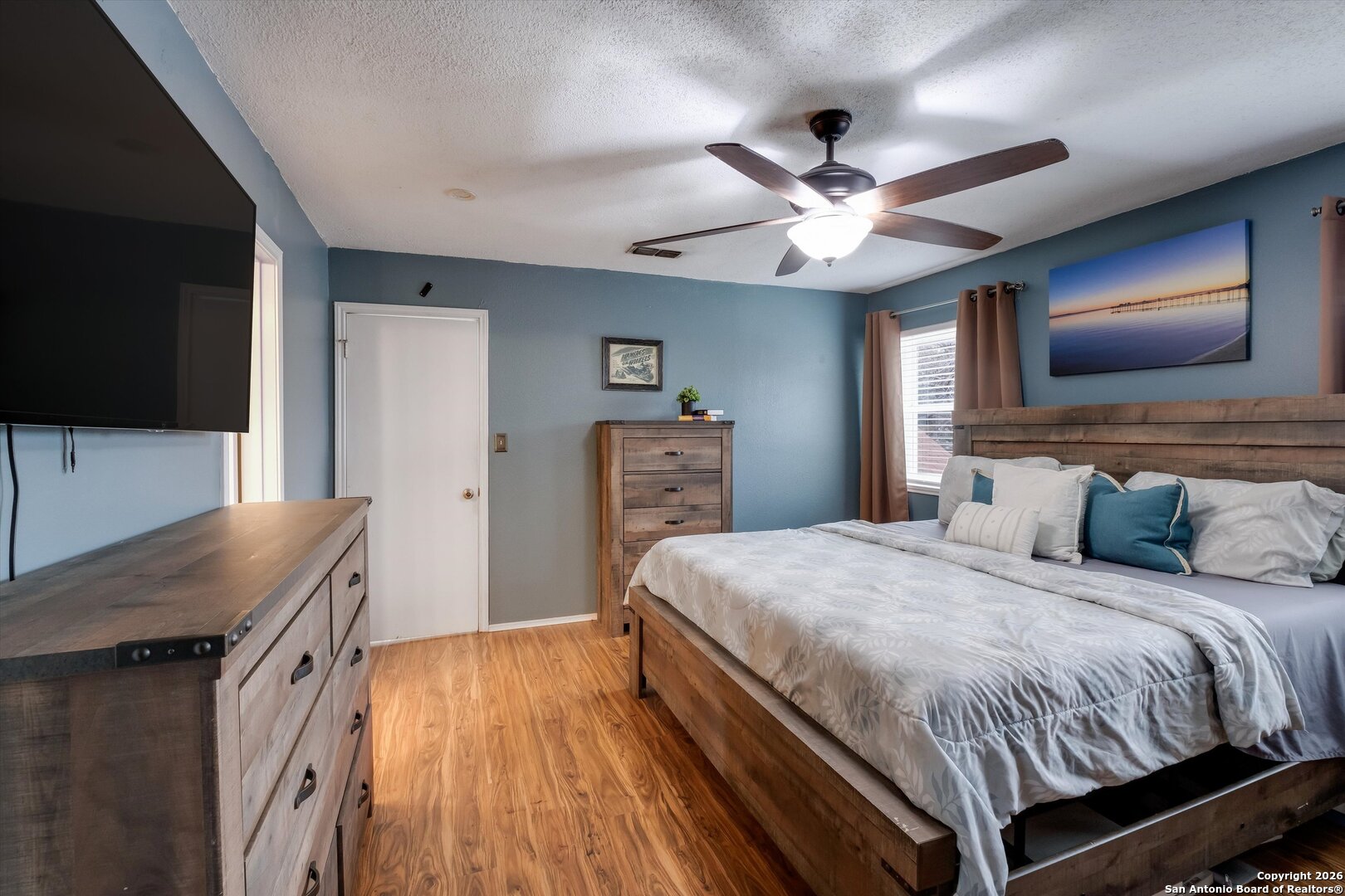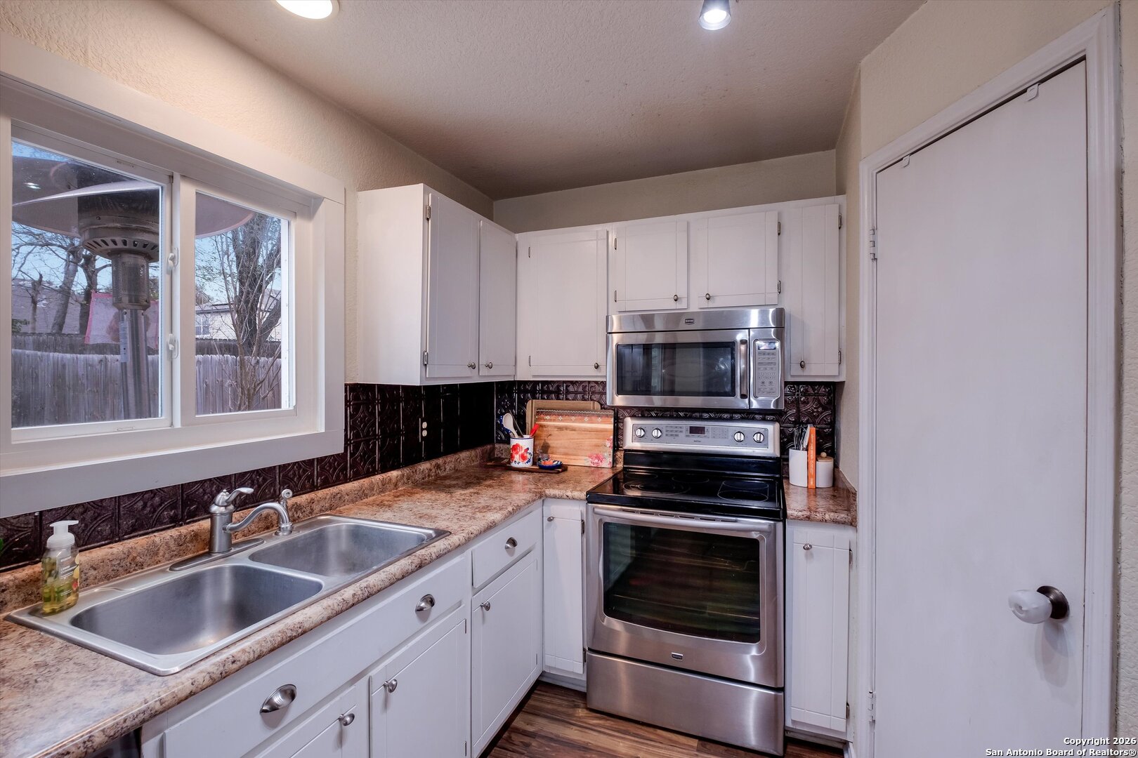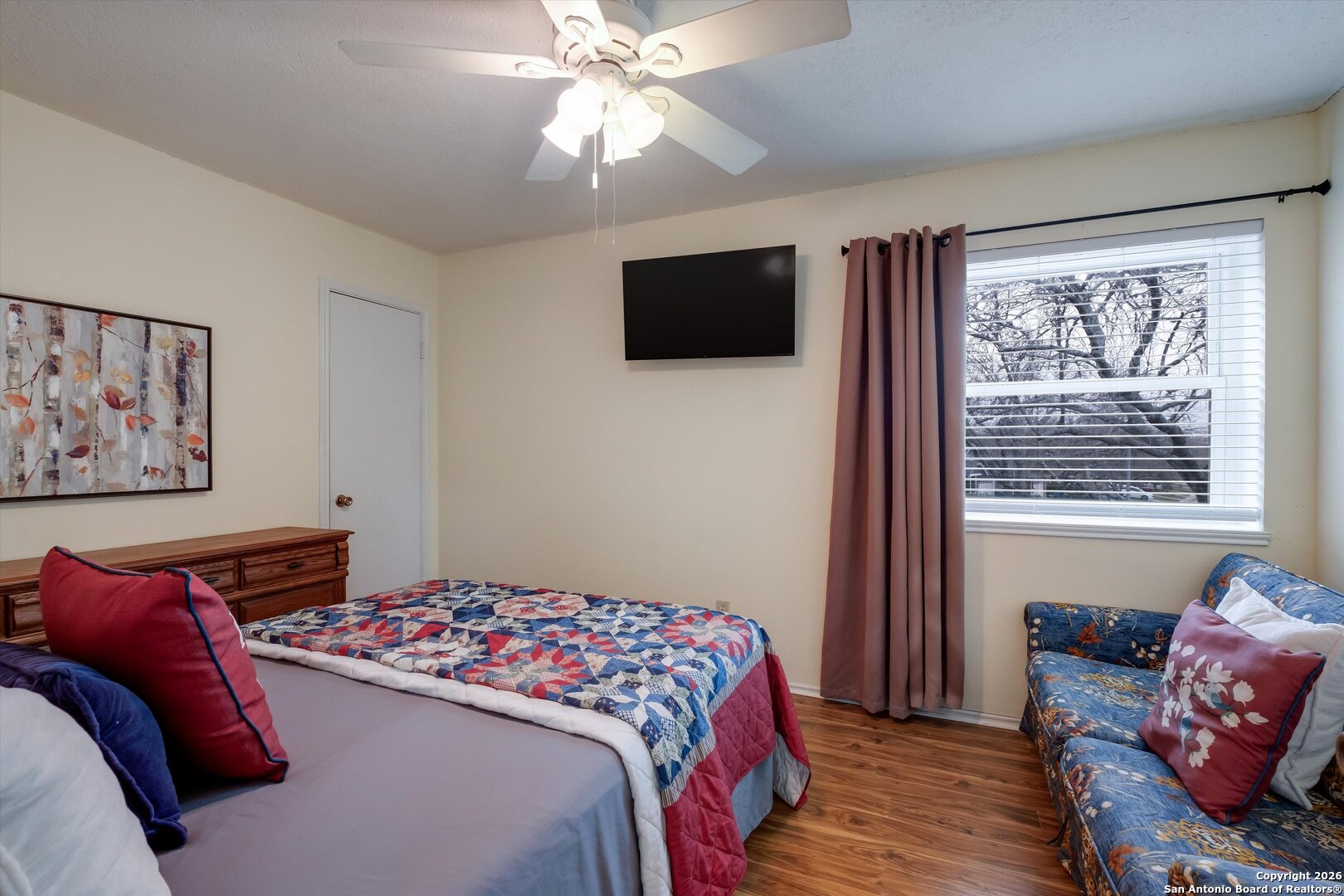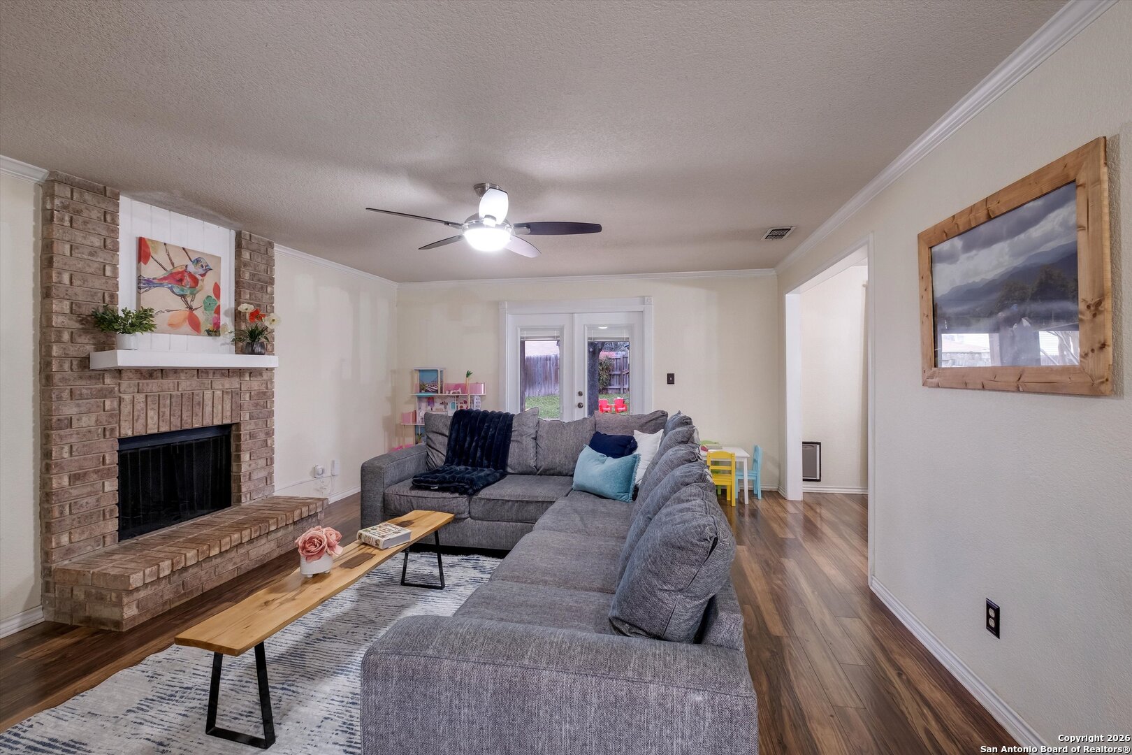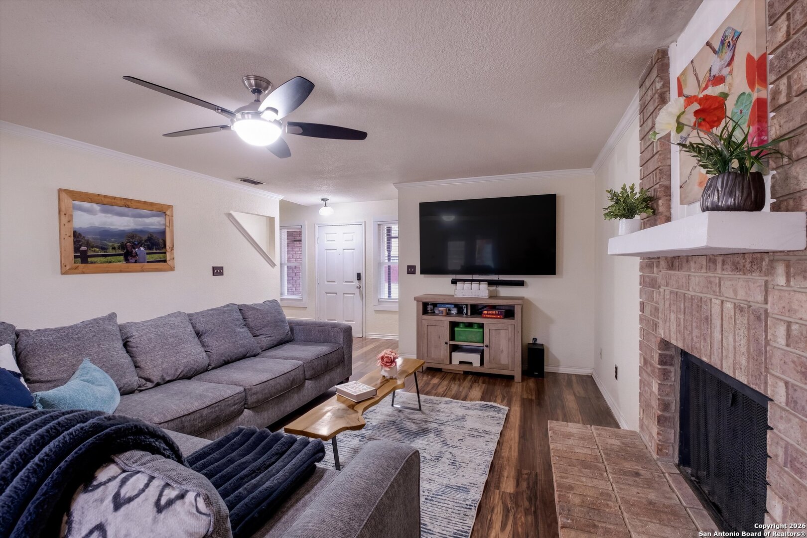 Welcome to this charming home in the Stoneridge community. From the moment you arrive, welcoming mature trees and sweet curb appeal leads into a bright interior featuring LVP flooring, soaring ceilings, and a classic brick, wood-burning fireplace anchoring the main living area. The layout flows naturally into the dining space and kitchen. French doors extend the living space outdoors to an impressive covered deck with additional open deck areas-ideal for entertaining, weekend gatherings, or quiet evenings outside. Upstairs, the primary suite provides a relaxing retreat with generous space, a walk-in closet, and a private bath with dual vanity and tub/shower combination, while two secondary bedrooms and a full bath offer flexibility for guests, home office space, or hobbies. Residents enjoy neighborhood amenities including a pool, tennis courts, and park/playground, along with easy access to McAllister Park, major expressways, and nearby attractions. Located in the North East ISD and close to Wetmore Elementary, Driscoll Middle School, and MacArthur High School, this home delivers space, function, and location in one appealing package. This is where your next chapter begins!