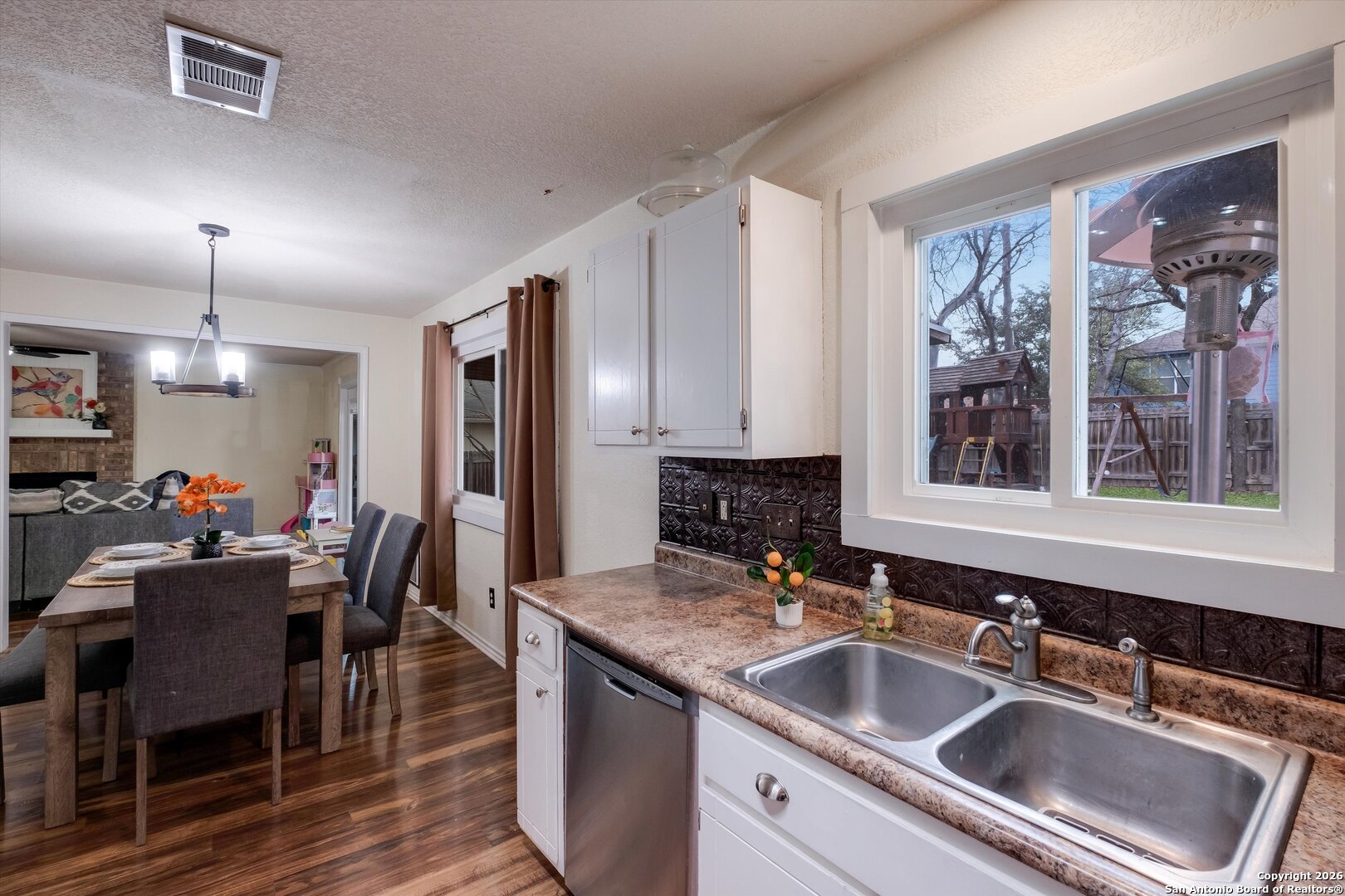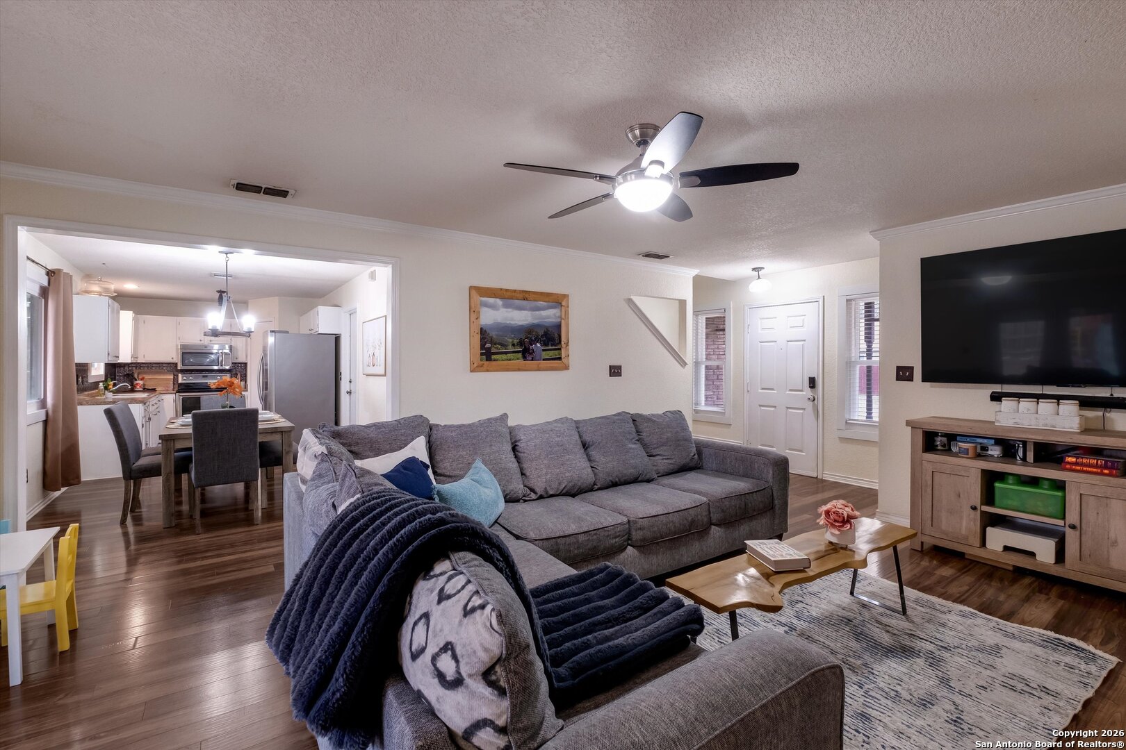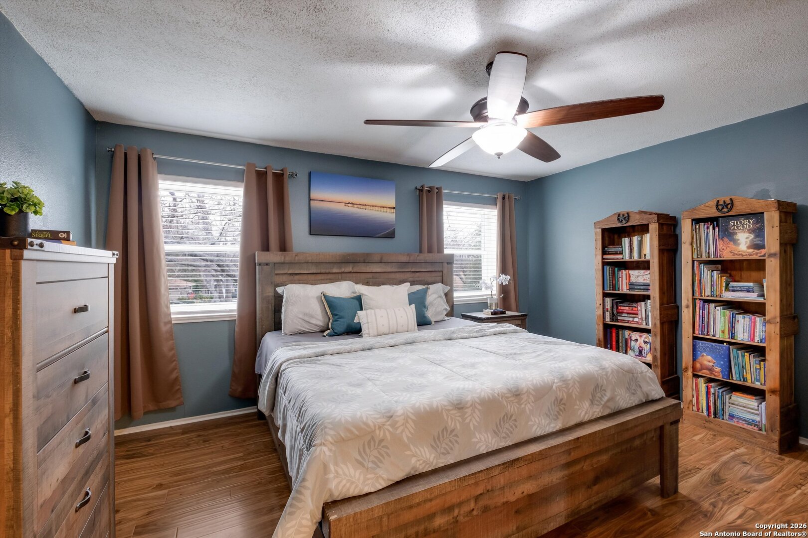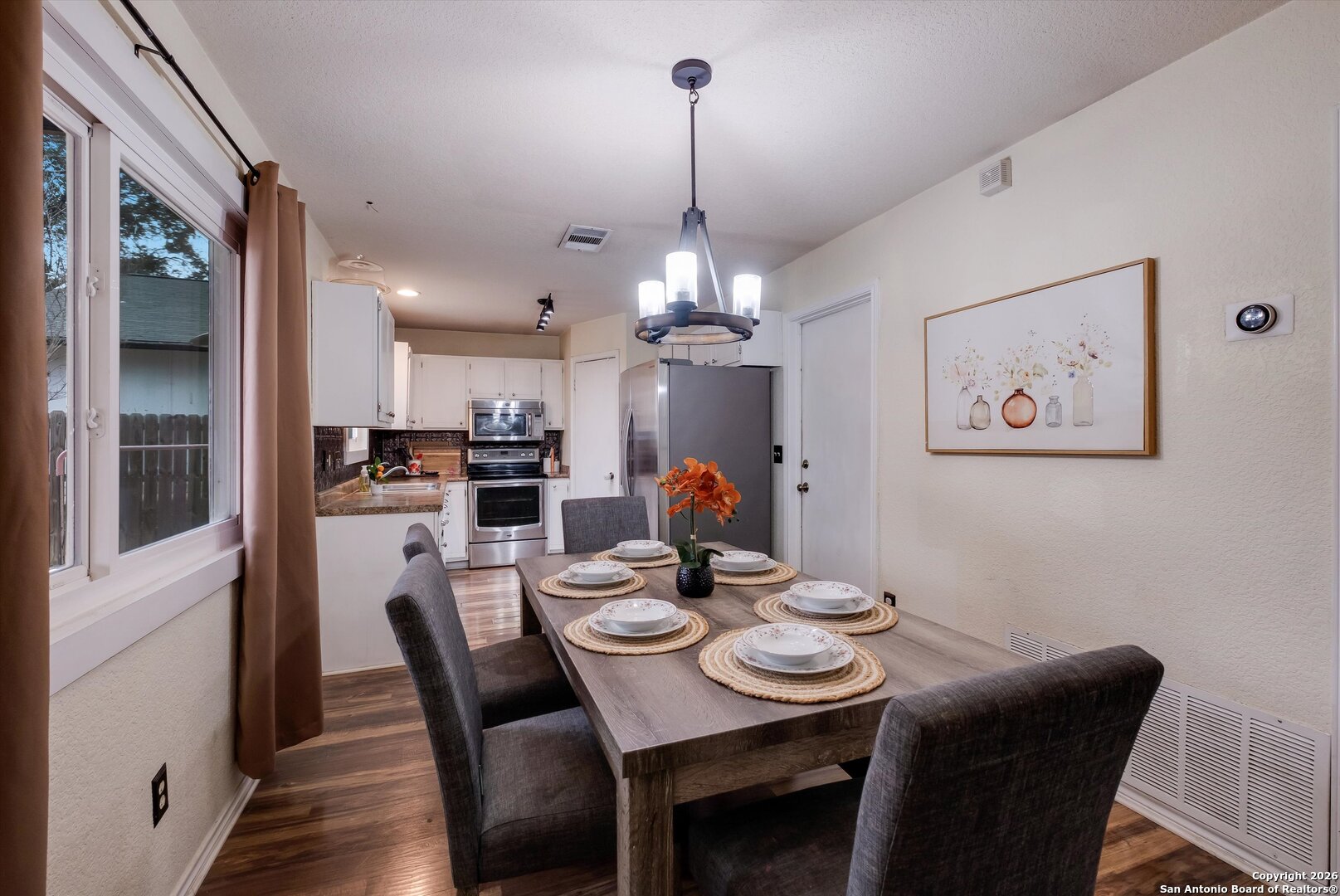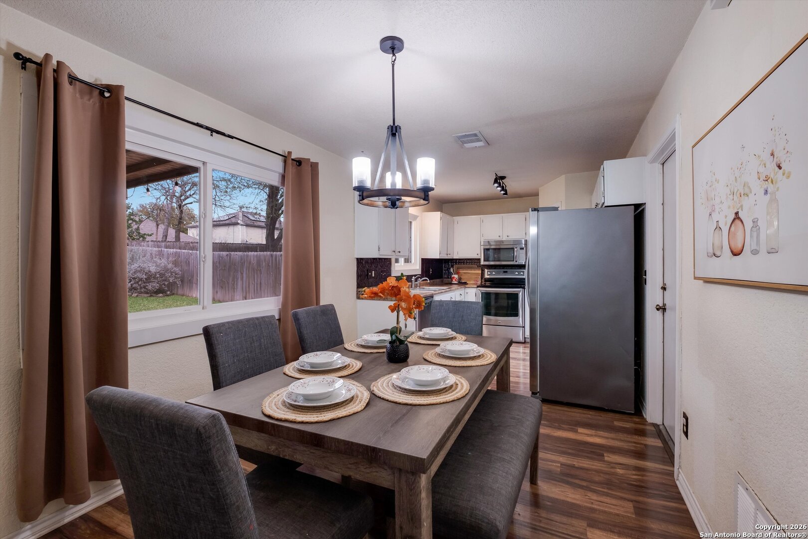 Welcome to this charming home in the Stoneridge community. From the moment you arrive, welcoming mature trees and sweet curb appeal leads into a bright interior featuring LVP flooring, soaring ceilings, and a classic brick, wood-burning fireplace anchoring the main living area. The layout flows naturally into the dining space and kitchen. French doors extend the living space outdoors to an impressive covered deck with additional open deck areas-ideal for entertaining, weekend gatherings, or quiet evenings outside. Upstairs, the primary suite provides a relaxing retreat with generous space, a walk-in closet, and a private bath with dual vanity and tub/shower combination, while two secondary bedrooms and a full bath offer flexibility for guests, home office space, or hobbies. Residents enjoy neighborhood amenities including a pool, tennis courts, and park/playground, along with easy access to McAllister Park, major expressways, and nearby attractions. Located in the North East ISD and close to Wetmore Elementary, Driscoll Middle School, and MacArthur High School, this home delivers space, function, and location in one appealing package. This is where your next chapter begins!