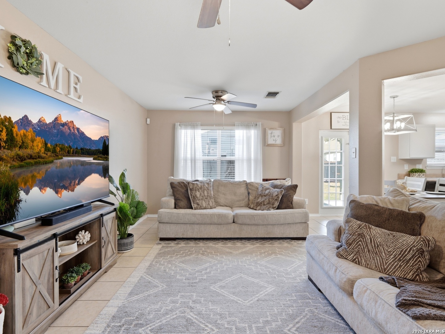 Welcome Home to 3409 Whisper Haven, a charming home located in Whisper Meadow. Enjoy the large shade trees in the front yard and the covered porch at the entry of the home. The home is inviting with a neutral color palette inside. The floor plan is perfect for entertaining with the living room and kitchen combination. The kitchen has plenty of cabinets and a kitchen island that is great for serving your favorite dishes. The laundry room is extra large and combined with the pantry giving you ample storage for your groceries and the extra space needed for your laundry machines. The half bath is just off of the kitchen and is great for guests. Upstairs you will find three spacious bedrooms. The primary bedroom has 2 closets and and a vanity with his and hers sinks. The secondary bedrooms are spacious with walk in closets. Backyard allows for plenty of room for playing games and for Fido. New AC 2025, Water Heater 2023, New Stove! Roof repairs were completed in 2021. Enjoy the community park, playground, sportscourt, and the vicinity to IH35. Schertz/Cibolo ISD, minutes to Randolph AFB. ASSUMABLE LOAN AVAILABLE!