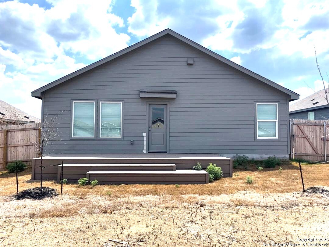 Move-in ready and never lived in! This beautiful 4-bed, 2-bath, 1,668 sq. ft. home in Jourdanton offers the feel of a brand-new build with thoughtful upgrades already in place. Enjoy a bright, open one-story layout with gas cooking and a spacious living area. Owner upgrades include an alarm system, custom blinds, ceiling fans in the living room, primary suite, and a secondary bedroom, plus a garage door opener for convenience. Step outside to a large backyard deck and privacy fencing, perfect for entertaining or relaxing. A transferable builder warranty provides added peace of mind. A rare opportunity to own a like-new home with extras already done-just bring your furniture and start living!