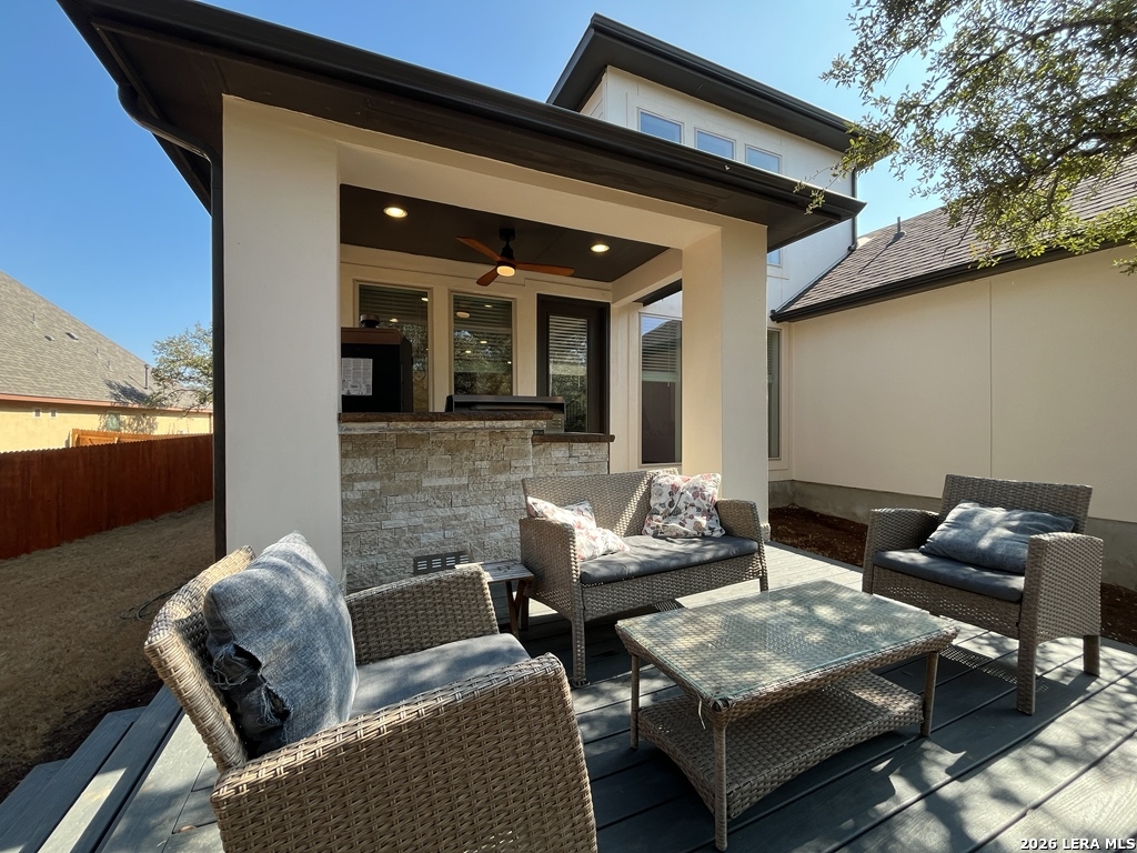 **OWNER OCCUPIED** **AVAILABLE ON APRIL 14, 2026** **NO CATS OR AGGRESSIVE DOG BREEDS** Welcome to this beautifully designed 4-bedroom, 3-bath home offering space, comfort and thoughtful details throughout. Tucked away on a quiet cul-de-sac, this property combines peaceful surroundings with convenient access to shopping and community amenities. Step inside to an open floor plan filled with natural light from stunning floor-to-ceiling windows and soaring high ceilings. A blend of carpet and ceramic tile flooring adds warmth and durability, while two spacious living areas and three dining areas provide flexibility for relaxing or entertaining. A dedicated office/studio and mud room offer additional functionality for today's lifestyle. The kitchen is well-appointed for both everyday living and hosting, featuring a built-in wall oven, gas cooktop, microwave, dishwasher, refrigerator, solid countertops, a large island, pantry, and inviting eat-in area. The primary suite serves as a private retreat with an ensuite bath that includes a garden tub, walk-in shower, double vanity, and generous walk-in closet. Three additional bedrooms and two full baths provide comfortable accommodations for guests or creative space. Additional highlights include a water softener, tankless water heater, HVAC system with programmable thermostat, washer/dryer hookups in the laundry room, and a 2-car garage with door opener. Outdoors, enjoy sweeping country views from the covered patio or deck. The backyard is designed for both relaxation and entertaining, complete with a built-in barbecue pit/grill in the outdoor kitchen, mature trees, sprinkler system, gutters, privacy fence, and wrought iron fencing. Residents also enjoy access to community amenities including a pool, kiddie pool, barbecue area, pavilion, and picnic area. This home offers a rare blend of comfort, style, and outdoor enjoyment - ready for you to move in and make it your own. "*Our award winning Resident Benefits Package (RBP) required program includes Liability Insurance, Pest Control, Monthly Air Filter Delivery, Move-in Concierge (utilities/cable/internet), Credit Building, Resident Rewards, Identity Fraud Protection and more for only $65/mo. *If you provide your own insurance policy, the RBP cost will be reduced. Optional Premium Upgrades Available as well, More details in application. *PET APPS $30 with credit card/debit payment per profile or $25 by ACH per profile. All information in this marketing material is deemed reliable but is not guaranteed. Prospective tenants are advised to independently verify all information, including property features, availability, and lease terms, to their satisfaction. *some marketing photos may be virtually staged images*"