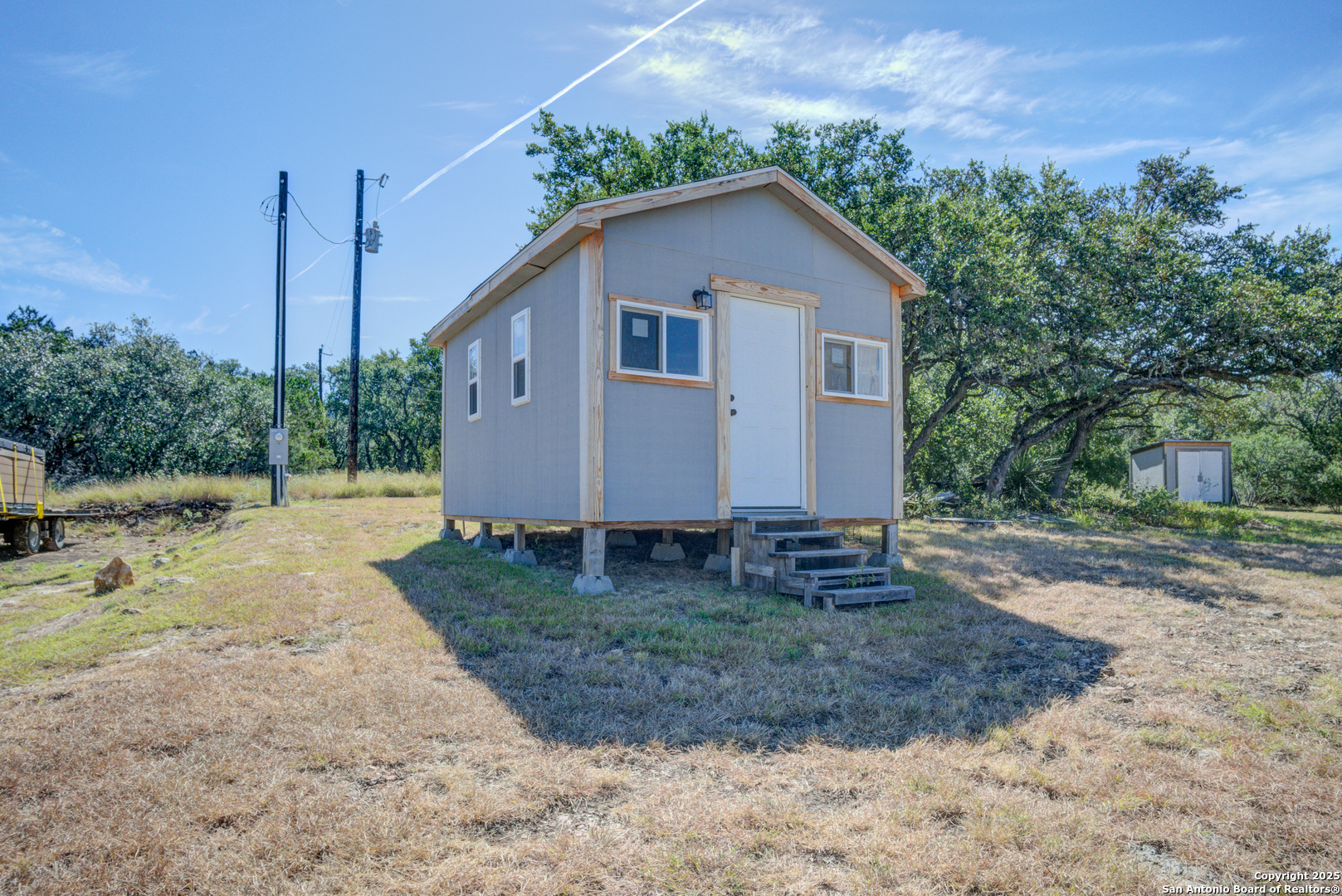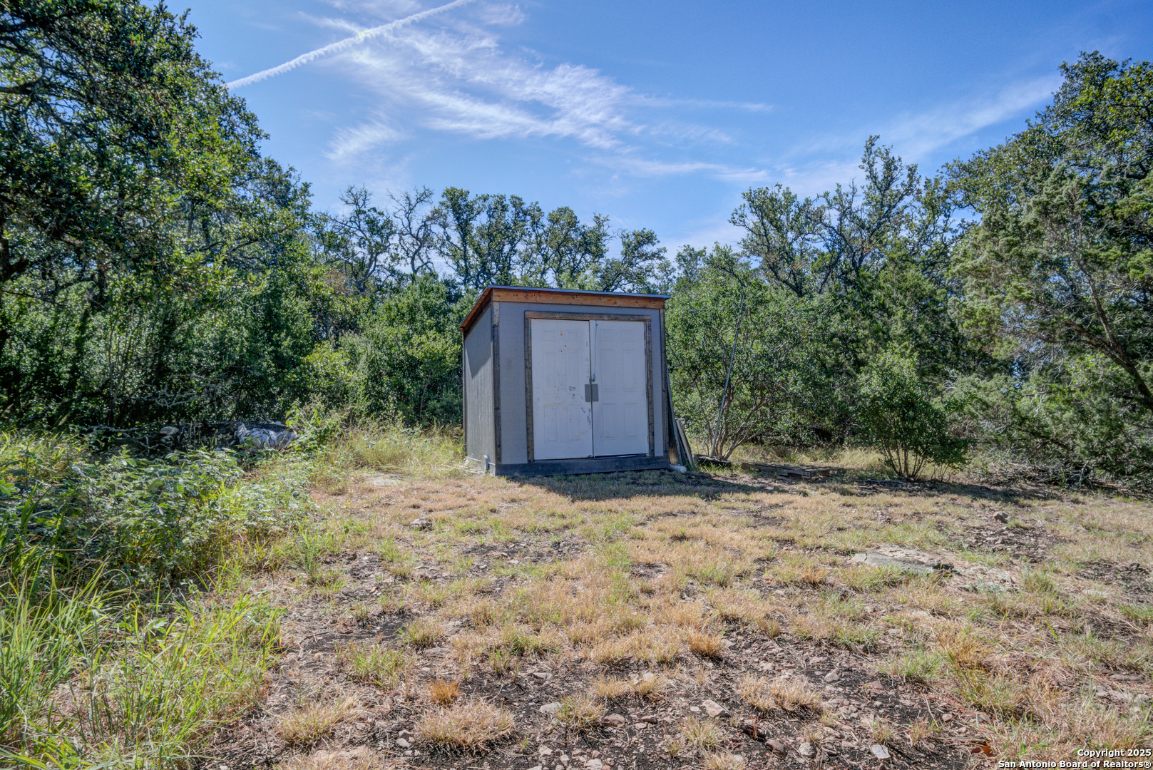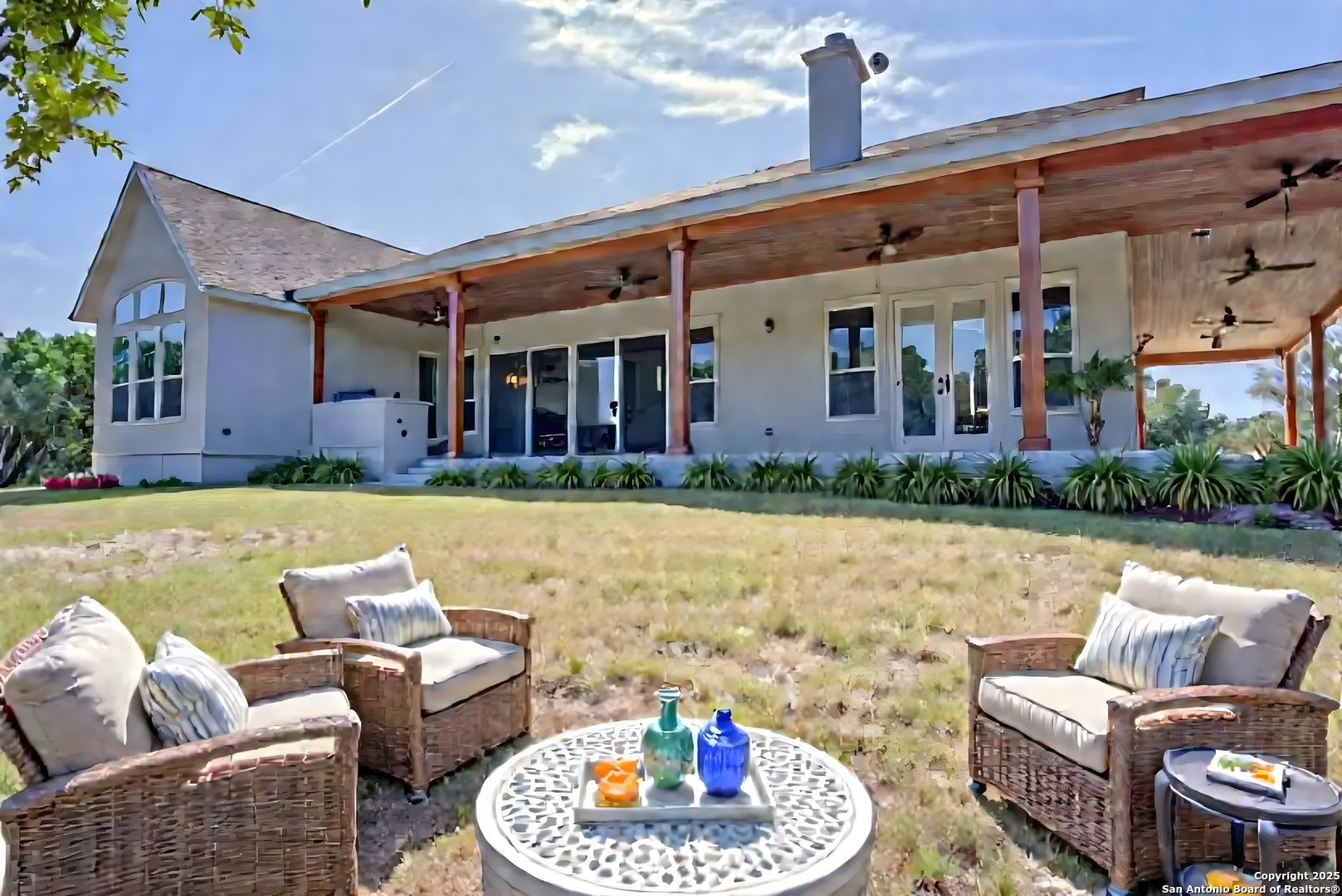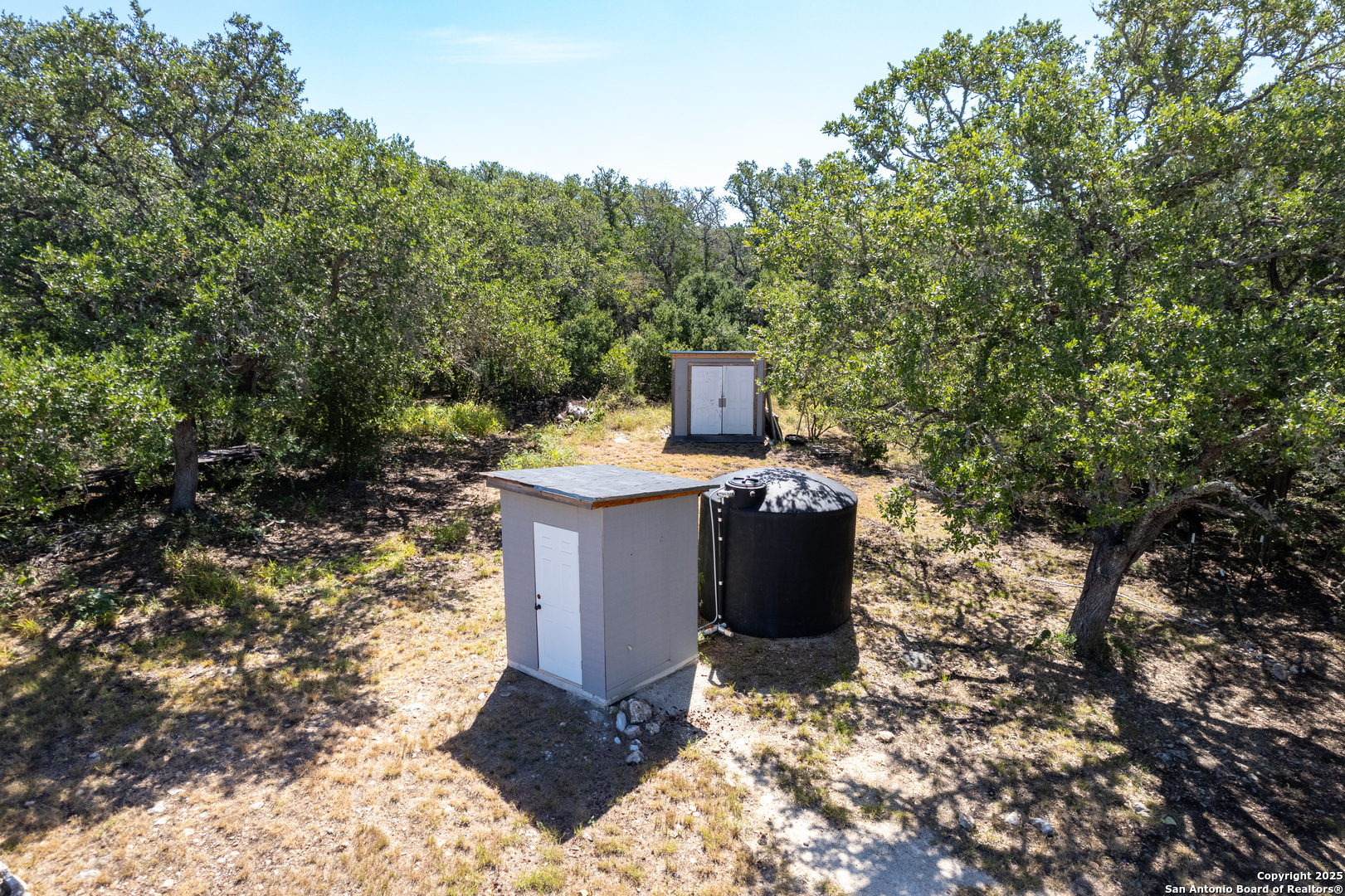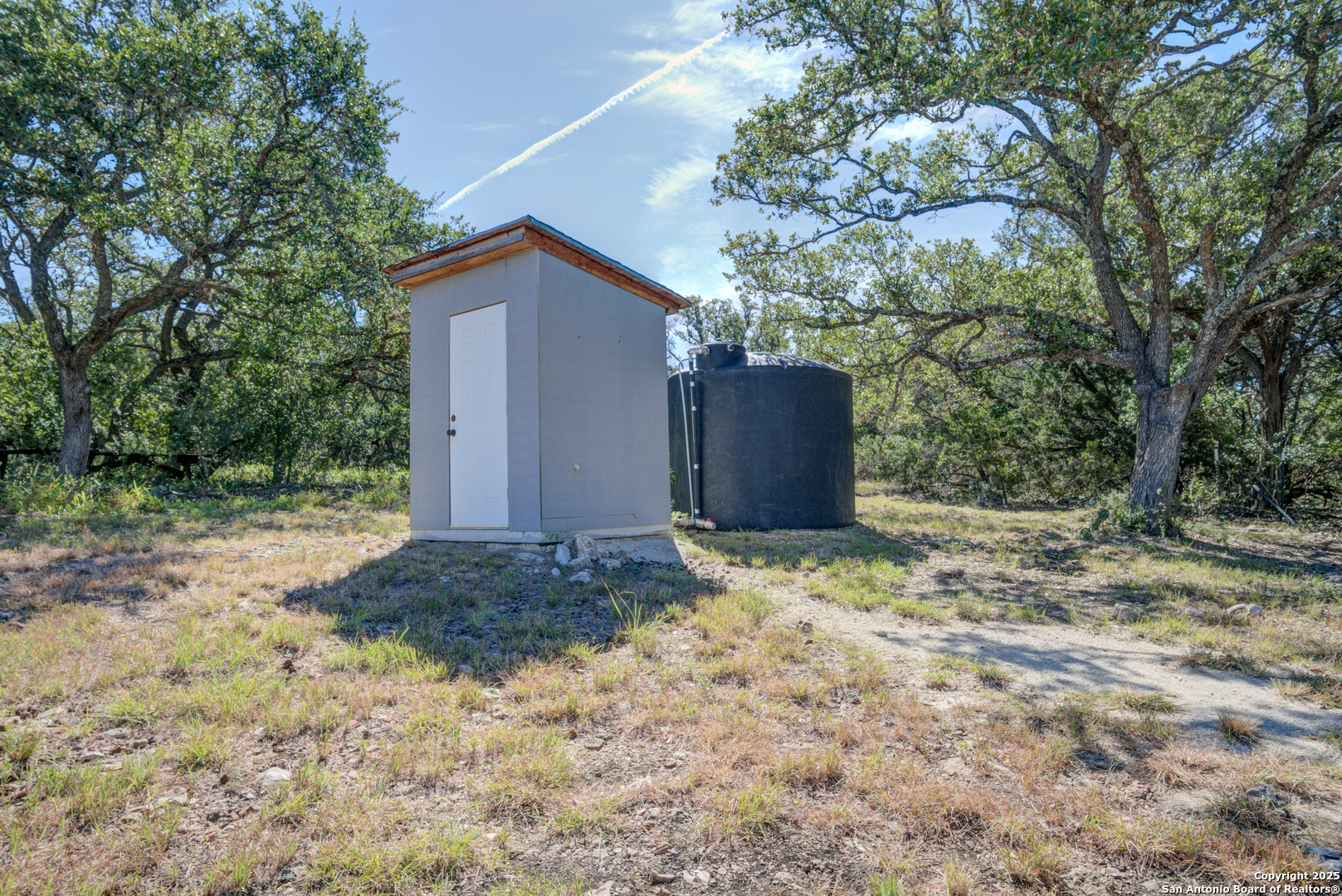 **2.875 Assumable mortgage available**Escape to your private 27-acre Texas paradise, where vast skies, serene luxury, and breathtaking views create an unrivaled sanctuary. Nestled on a scenic ridge, this custom-built 2021 home blends elegance, comfort, and seclusion, all just minutes from town.Step onto the expansive covered porch wrapping around the back, perfect for savoring morning coffee, vibrant sunsets, or the tranquil Hill Country landscape. Inside, the heart of the home is a warm, spacious Great Room with surround sound and a cozy wood/gas fireplace, ideal for gatherings or quiet evenings. The Great Room features oversized sliding glass doors that seamlessly connect indoor and outdoor living. The gourmet kitchen showcases custom cabinetry with hidden spice racks, stainless steel appliances, a gas stove, a coffee bar with filtered water, and a walk-in pantry with a deep freezer recess for effortless functionality.The private primary bedroom offers a peaceful retreat with direct porch access and a spa-inspired bathroom featuring a double vanity, garden tub, bidet, and dedicated water heater for ultimate comfort. Two additional bedrooms, located on the opposite side of the home, share a Jack-and-Jill bathroom and each open to the porch via elegant French doors, ensuring privacy and abundant natural light. A convenient powder room downstairs adds to the home's thoughtful design, totaling 3 bedrooms and 2.5 bathrooms on the main level. Upstairs, a spacious flex room with a full bath serves as a versatile space for entertainment, hobbies, or guest accommodations.The mudroom, off the three-car garage, provides a practical drop zone for coats, boots, and gear. Outside, enjoy a fully equipped outdoor kitchen with sink, grill, and fridge; irrigated garden beds; fruit trees (apple, pear, peach, plum); and ample space to explore. Chickens, wild turkeys, deer, and white-tailed hawks add to the daily charm of this idyllic retreat.Modern upgrades enhance the lifestyle: 2 RV hookups (30-amp), deep water well, aerobic septic system with quarterly maintenance, 2 tankless water heaters, spray foam insulation, whole-house water softener and filtration, south Texas Internet with Wi-Fi extender, cell phone booster, Dish Network, two storage sheds (12x16 with guest house potential, 8x8), deer blinds (convey), and 10-foot interior doors for an open, airy feel.More than a home, this is a lifestyle crafted with heart and intention. Experience the peaceful rhythm of the Hill Country living in your own slice of paradise.