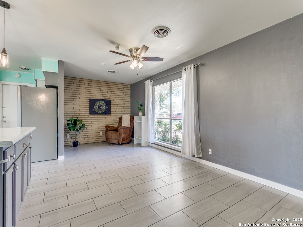 Welcome to this beautifully updated home located on the city's desirable southeast side, nestled in a quiet neighborhood with long-term residents and no rear neighbors-offering both comfort and privacy. Step inside to discover a spacious open-concept layout with sleek tile flooring throughout, creating a seamless flow from room to room. The heart of the home is the modern kitchen, featuring a large island perfect for meal prep, casual dining, or entertaining guests. Enjoy year-round comfort with a recently installed HVAC system, and take the party outdoors to the covered patio-ideal for relaxing with friends and family. Whether you're hosting a barbecue or enjoying a quiet evening, this outdoor space is a true retreat. Don't miss your chance to own this upgraded haven in a well-established neighborhood. Schedule your showing today!