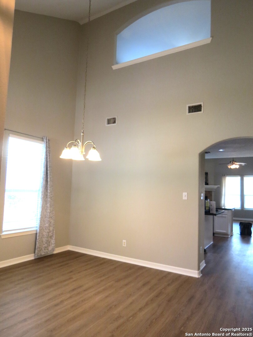 Spacious home offering 4 bedrooms, 2 1/2 baths, 2 living areas, 2 dining areas. Updated and beautiful. Island kitchen with stainless appliances. New faux wood flooring in both living areas, both dining areas and kitchen. New carpet in the bedrooms. Fresh paint inside and out. 2 inch blinds and window treatments are included. High ceilings. Inviting fireplace. Primary bath offers a soaking tub, separate shower, and double vanity. Covered porch. Shed. Large backyard.