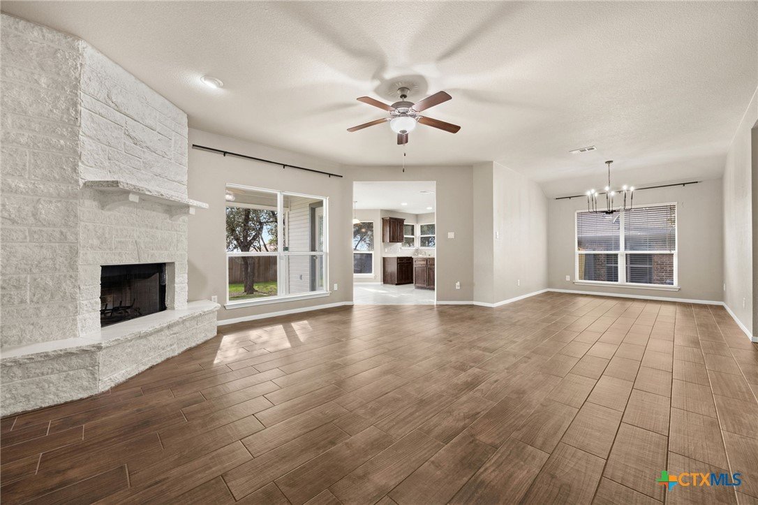 This beautiful four-bedroom, two-bath single-story brick and stone home sits on a tree-adorned lot in the highly desired Skyline Flats neighborhood of Copperas Cove. Known for its picturesque surroundings and friendly, welcoming community, Skyline Flats offers easy access to local parks, schools, shopping, and is just a short drive to Fort Hood — making it a fantastic location for both convenience and comfort. Inside, the home has a great flow with wood-look flooring throughout all main living areas, plenty of natural light, and a warm, inviting feel from the moment you walk in. The kitchen features gorgeous knotty alder wood cabinetry, granite countertops, upgraded finishes, and ample workspace, opening nicely to the living area where a cozy corner wood-burning fireplace creates the perfect gathering spot. With two dining areas, four well-sized bedrooms, and two full bathrooms also finished with granite countertops, the layout offers flexibility for everyday living, entertaining, or working from home. The backyard is framed by mature trees, offering a peaceful outdoor space to relax and unwind. This home truly checks all the boxes — space, style, location, and value — all priced at $279,900. It’s one of those homes that just feels good the moment you step inside.