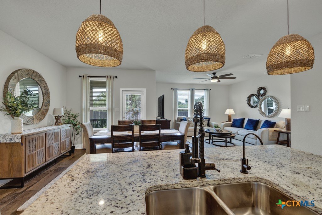 Have you been searching for the perfect home in a great location with easy access to San Antonio but outside of the hustle and bustle of the city?? Look no further!! This 4-bedroom 2 bath home in Copper Canyon has it all! Built in 2021, this one-story residence has had only one owner who has meticulously cared for and maintained the property. You will enjoy the ease of care and durability of the wood-looking tile floors, the timeless elegance of granite countertops, and the spaciousness of the high ceilings. The private, fenced in back yard is great for entertaining, pets, and children. Some upgrades include: the addition of 3 gorgeous basket lights over the large kitchen island, a new primary bathroom remodel in '24, additional storage in the laundry room, and a new roof less than 2 yrs ago! Neighborhood amenities include a fitness center, pool, playground and splash pad, pavilions, monthly activities, and a clubhouse for you and your family to enjoy! All this only 16 miles from San Antonio airport and 5.7 miles to shopping in Spring Branch. Close proximity to Canyon Lake and the Guadalupe River for tons of outdoor fun and adventure. Don't wait... Schedule your showing today!